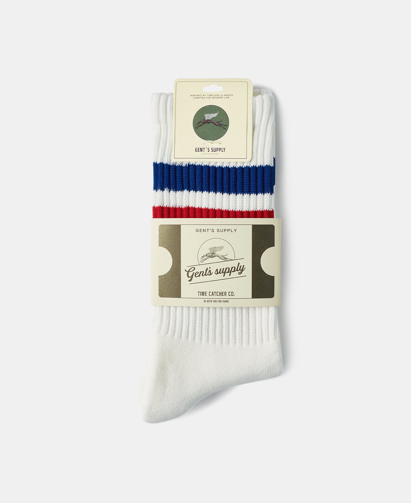Inspired by IVY style crew socks of the 1960s. Each pair features cushioned soles and banded striped cuffs. Thick and comfortable.