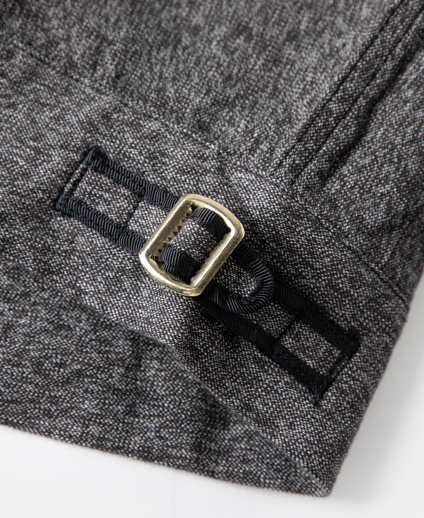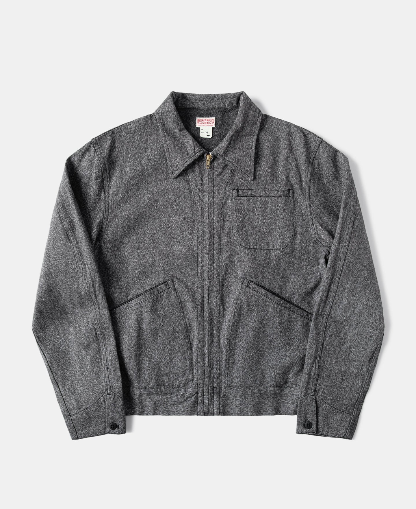 The Cossack Jacket is a classic workwear style, characterized by its waist-length cut, convenient waist patch pockets, and a chest cigarette pocket. Bronson reproduced a 1960s cossack jacket featuring a zipper placket, adjustable buckle tabs on both sides of the waist, crafted from selvedge ‘covert’ pepper-and-salt fabric, and finished with authentic runoff chain stitching.