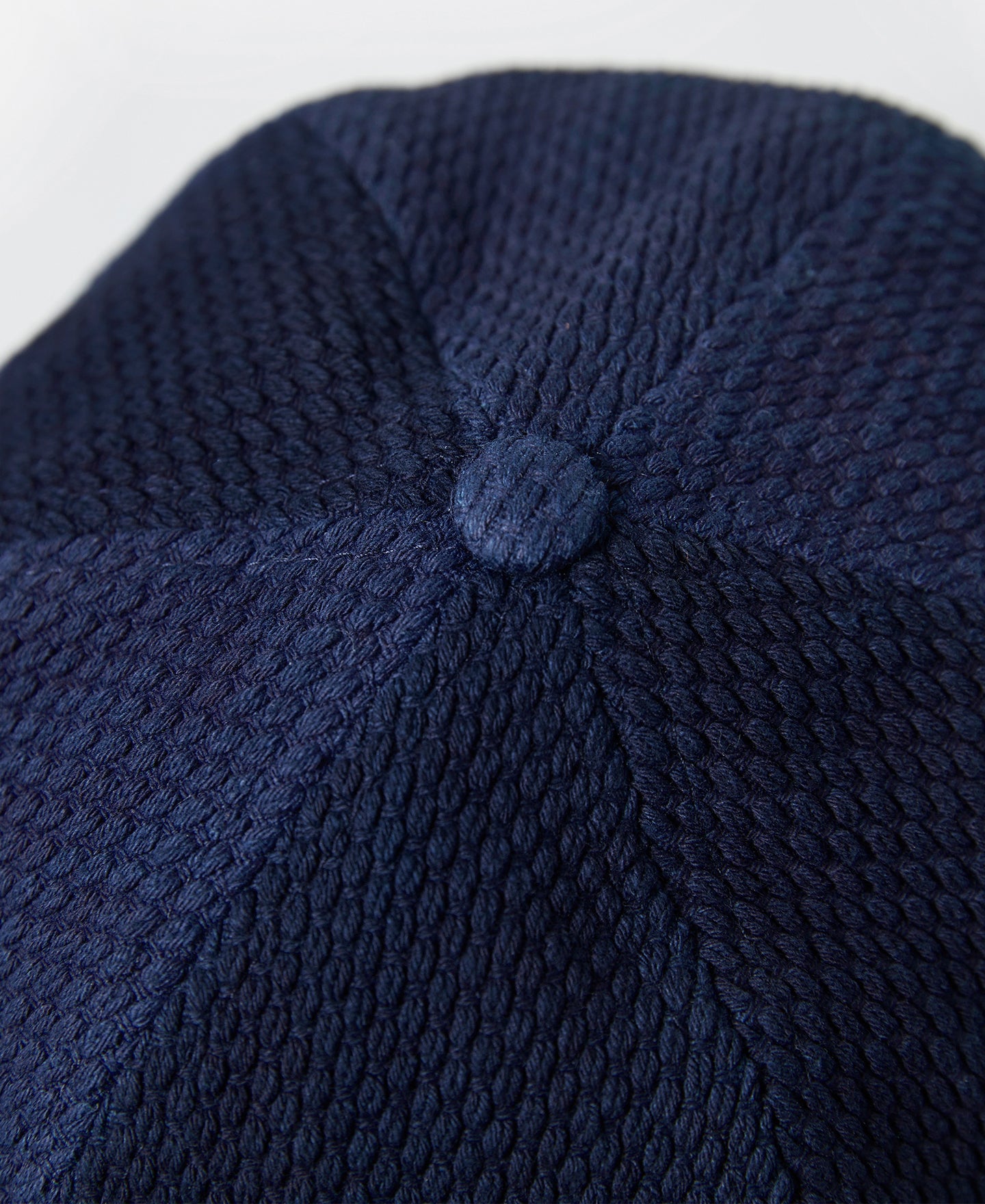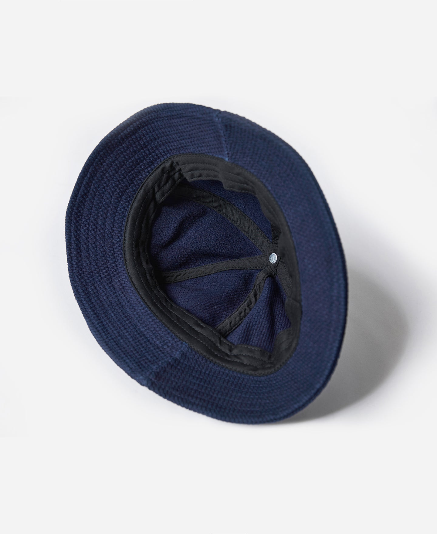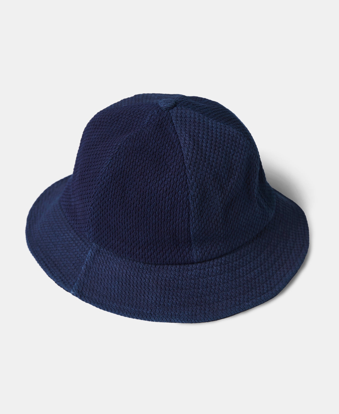 This bucket cap is made with 19 oz sashiko cotton fabric. The cap is hand-dyed using natural indigo and washed.