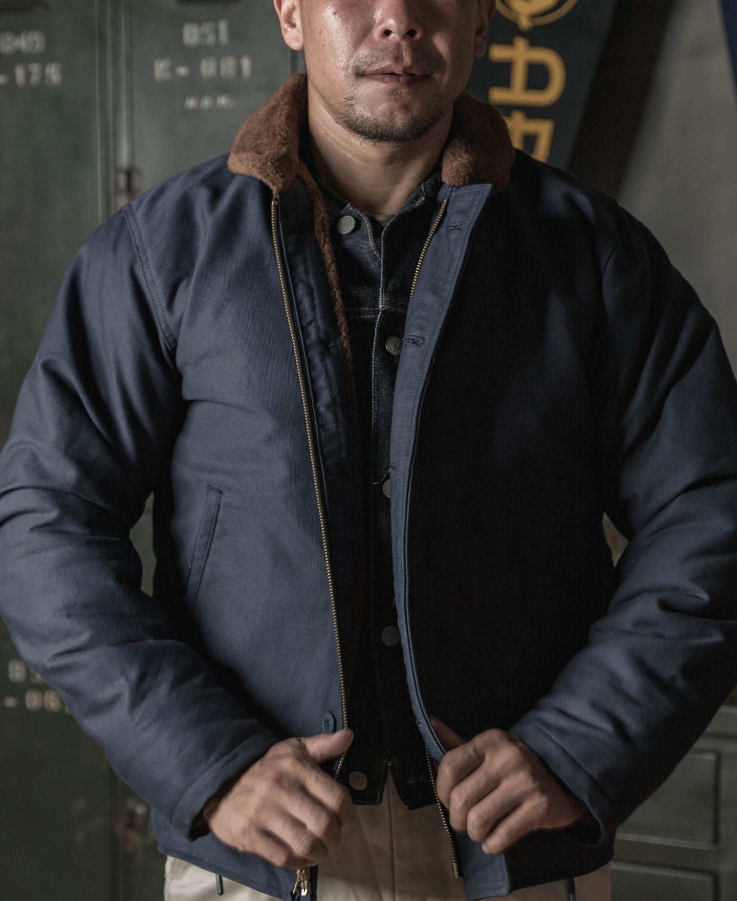The aircraft carrier deck crew wore N-1 deck jackets during World War II and the Korean War. The thick cotton shell and alpaca or wool lining gave the deck crew the needed warmth and protection from the elements during extreme cold weather conditions. The initial series was produced in Navy blue to symbolize the US Navy before it eventually changed to Khaki.