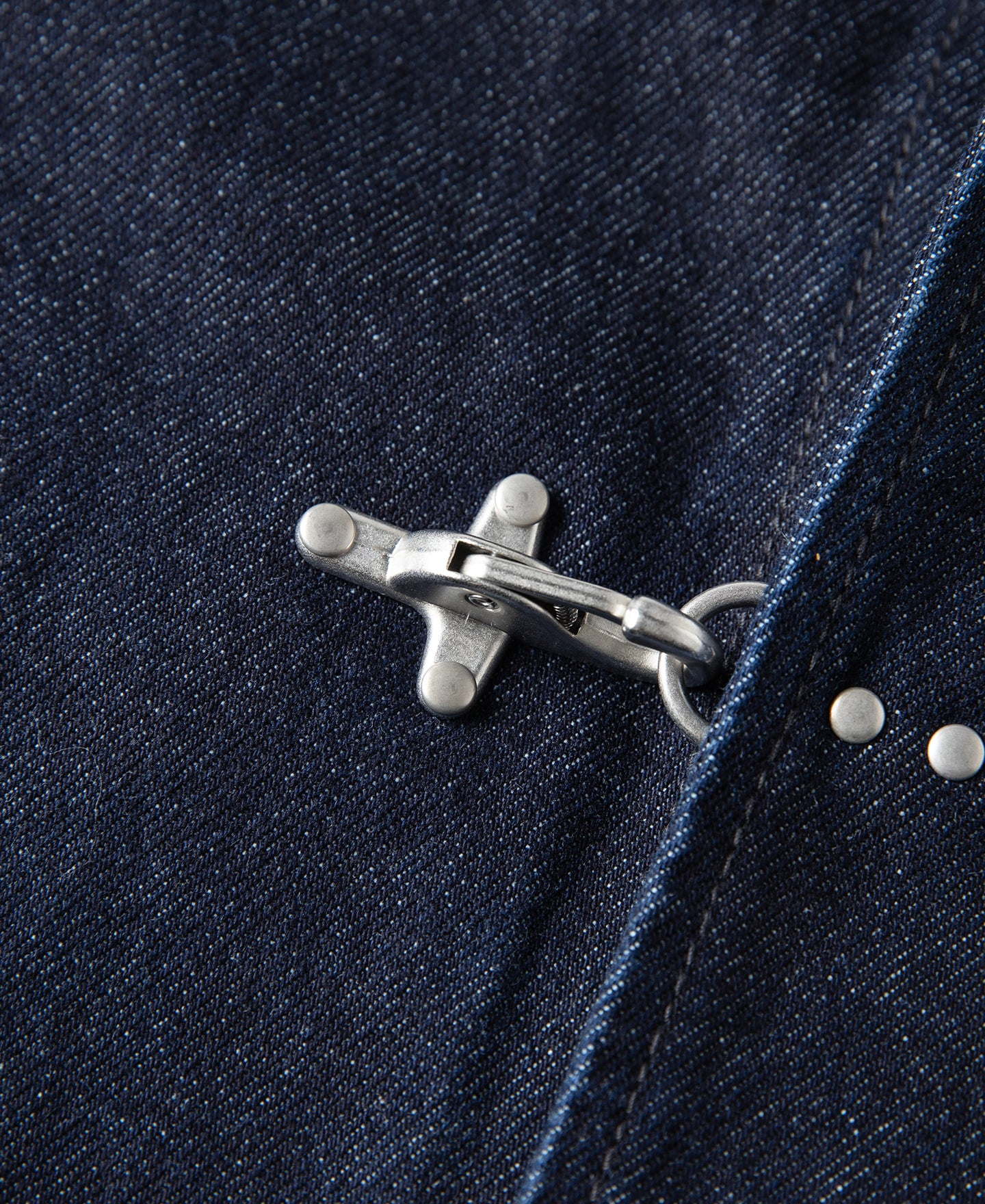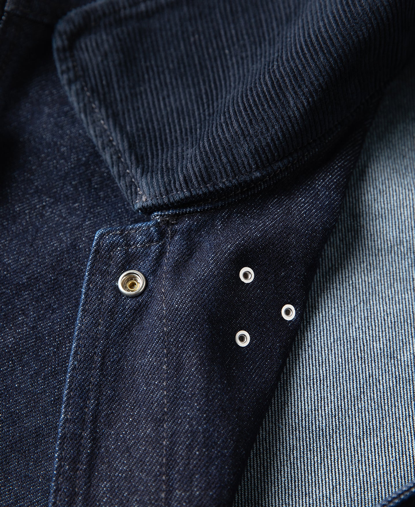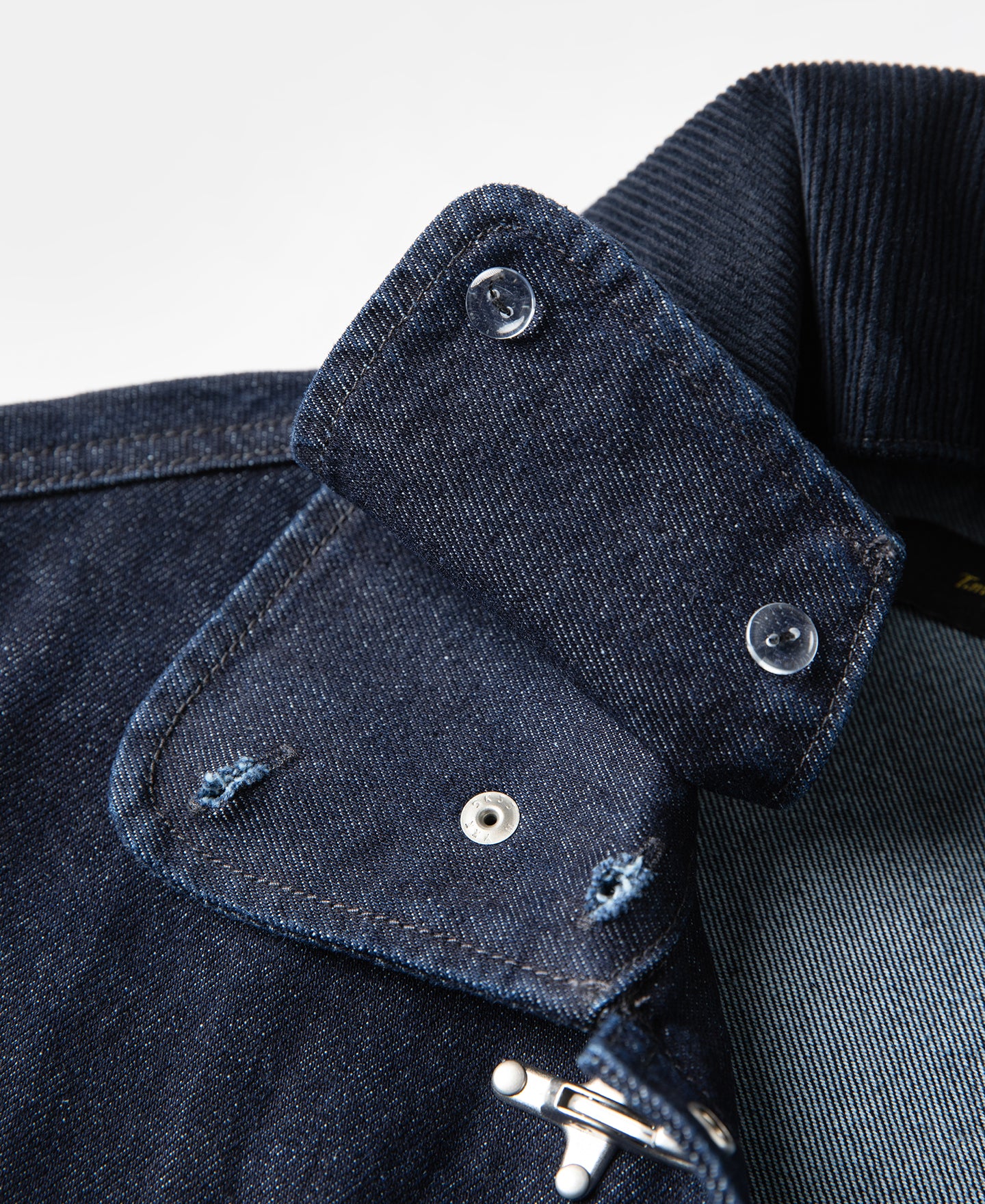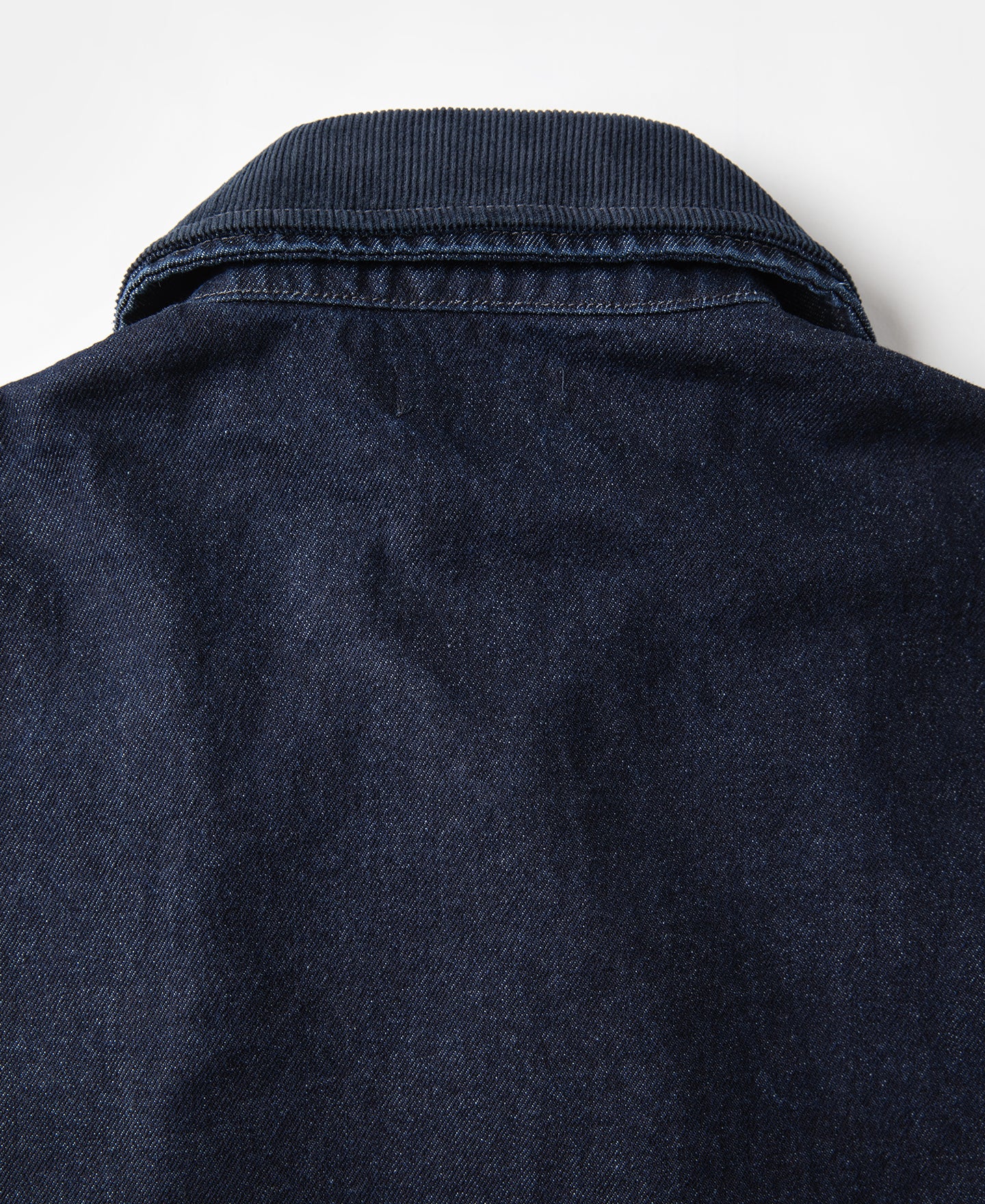 Inspired by the classic design of fireman jackets, this reimagined version is crafted from durable 14.2 oz denim fabric. The relaxed fit, oversized exterior pockets, and raglan sleeves provide ample movement and comfort. The tonal corduroy collar adds a refined touch, while the heavy-duty metal lobster clasps secure the storm flap for added functionality. Built with reinforced double-needle stitching and clean edge finishing for lasting durability. A versatile piece that effortlessly blends rugged style with everyday wearability, making it a go-to jacket for any occasion.