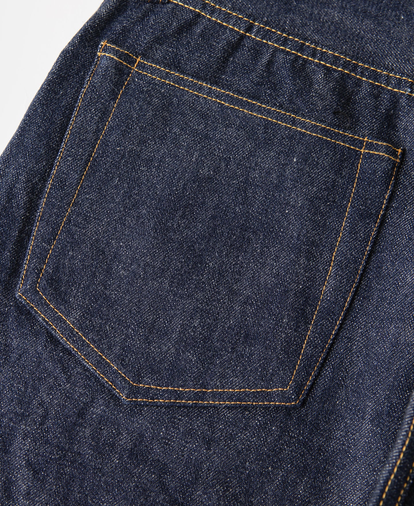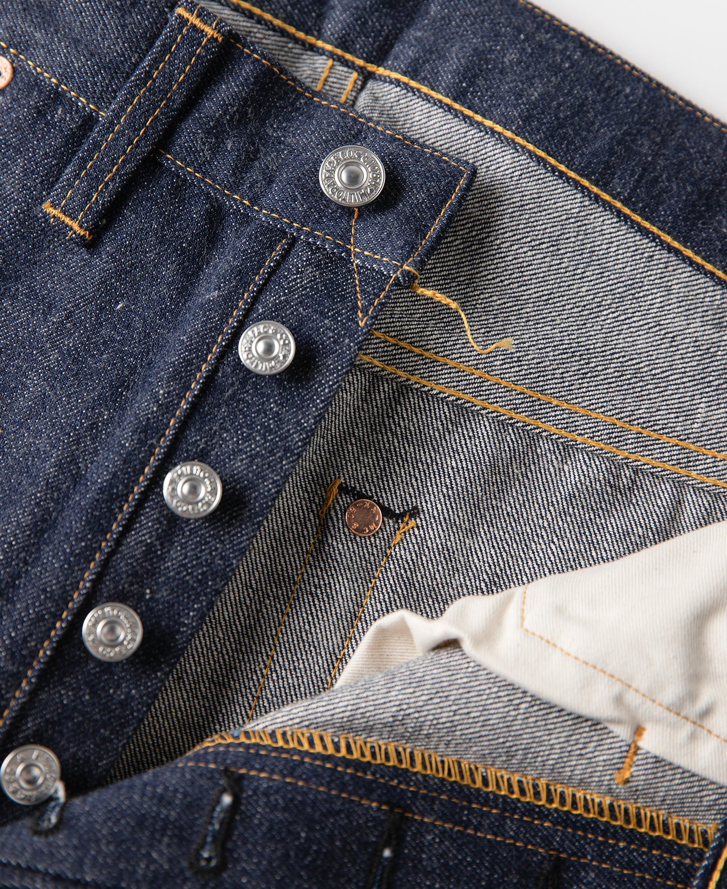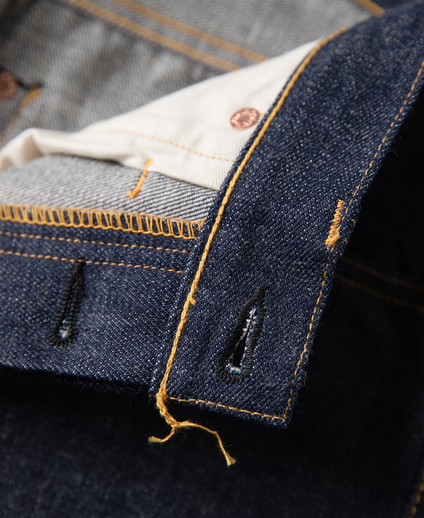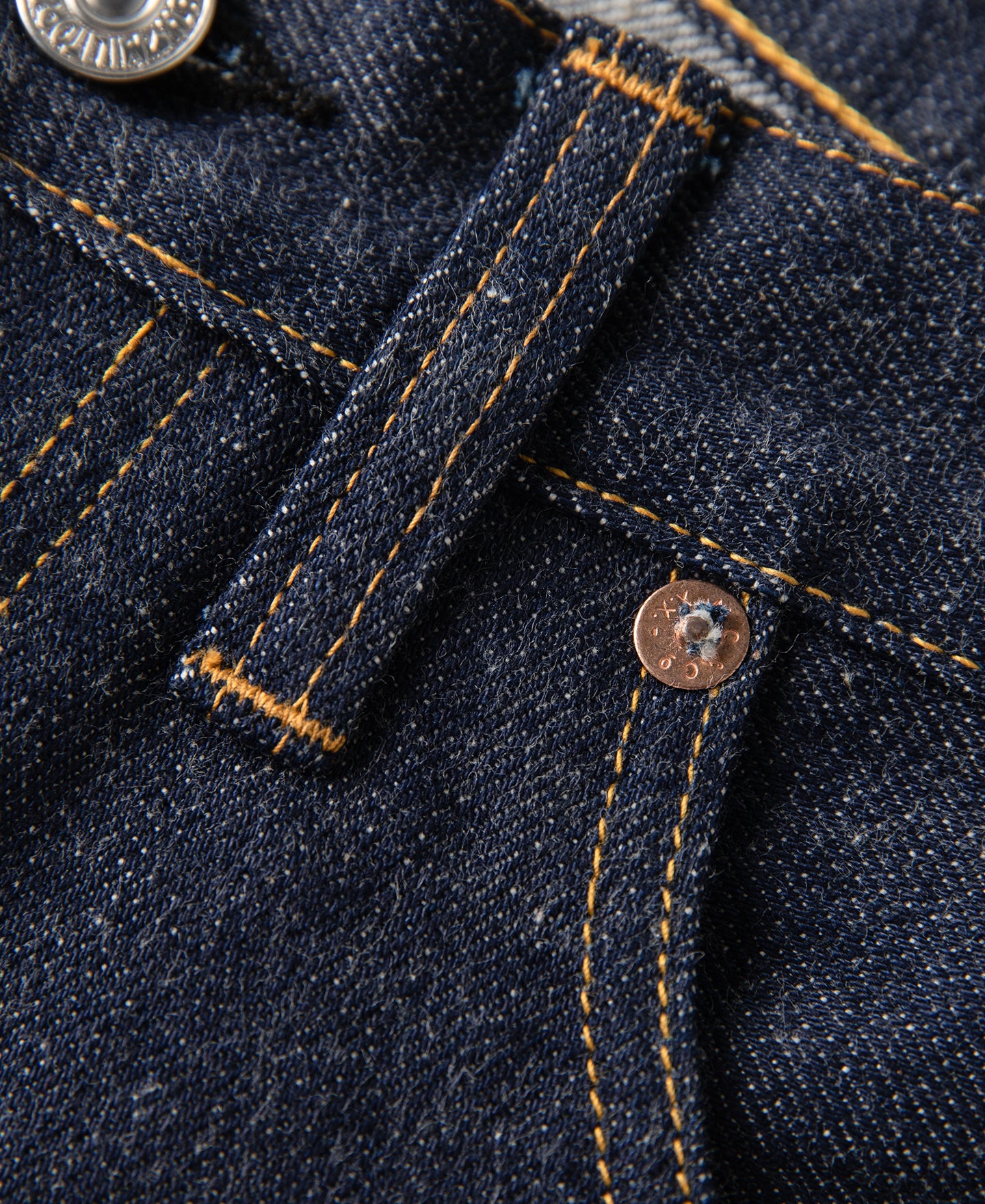 Crafted from 14.5oz unsanforized selvedge denim, this 1947-inspired regular straight fit captures the essence of the post-war era. Featuring copper button bases and copper-iron rivets, with notable shrinkage after wash.