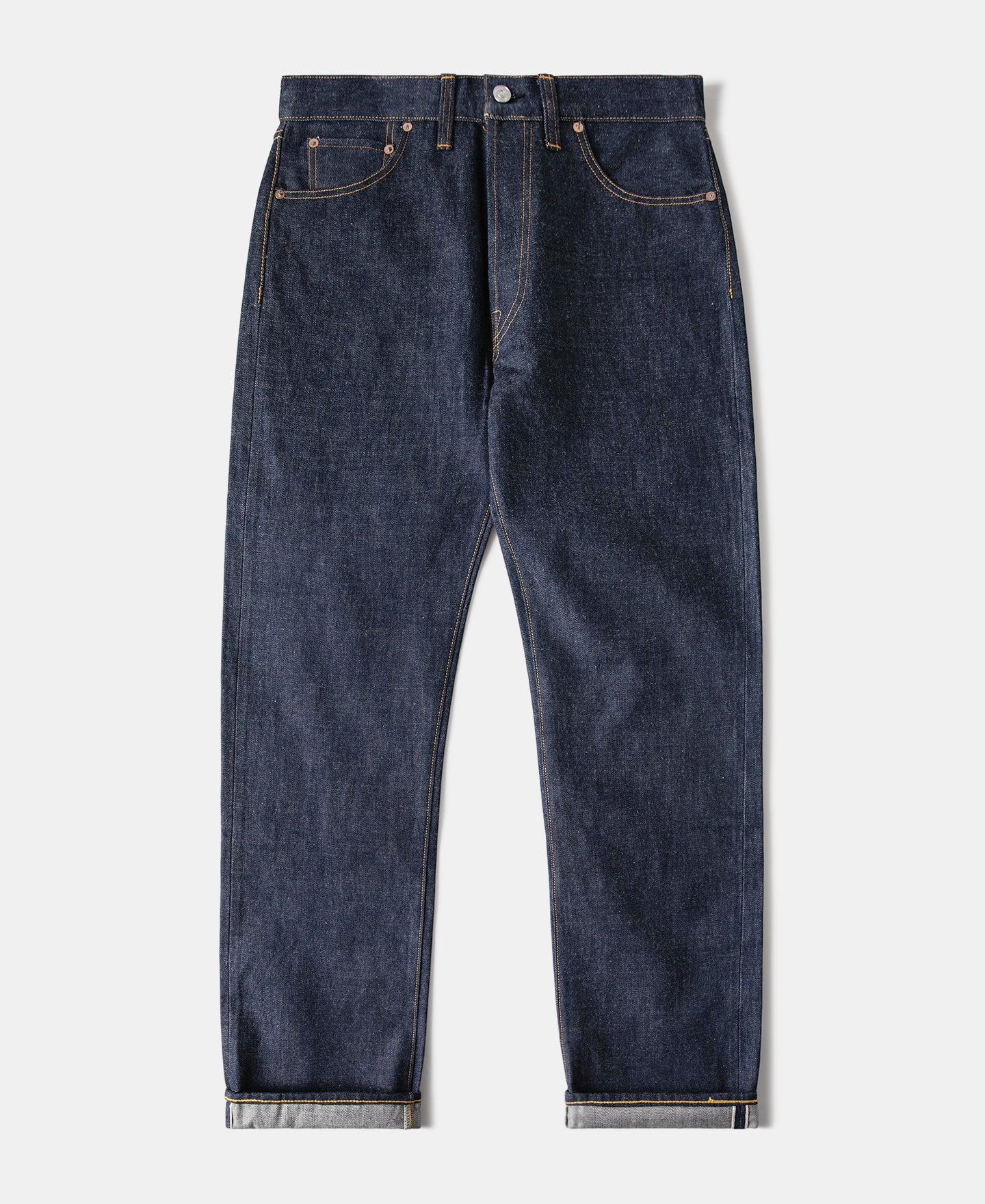 • Crafted from 14.5oz unsanforized selvedge denim, this 1947-inspired regular straight fit captures the essence of the post-war era. Featuring copper button bases and copper-iron rivets, with notable shrinkage after wash.