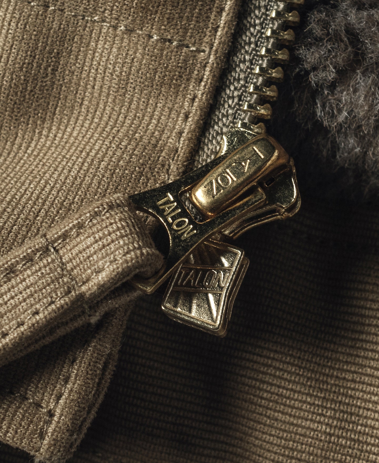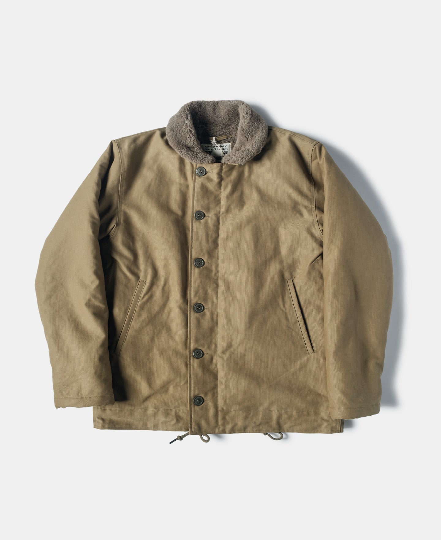 This jacket is designed with a reasonable assumption based on the original N-1 Deck Jacket and the historical background of the development of naval clothing and equipment at that time and we attempt to reproduce the experimental version of the N-1 Deck Jacket. This jacket is modeled after the early experimental version of the deck jacket, with no USN imprint on the chest. The inner cuffs feature plush fleece, and the underarm area has a hollowed-out adhesive fabric design with a sewn-in gun belt on the fabric. Inside the jacket, on the left side, there is a pocket closed with a Talon zipper.