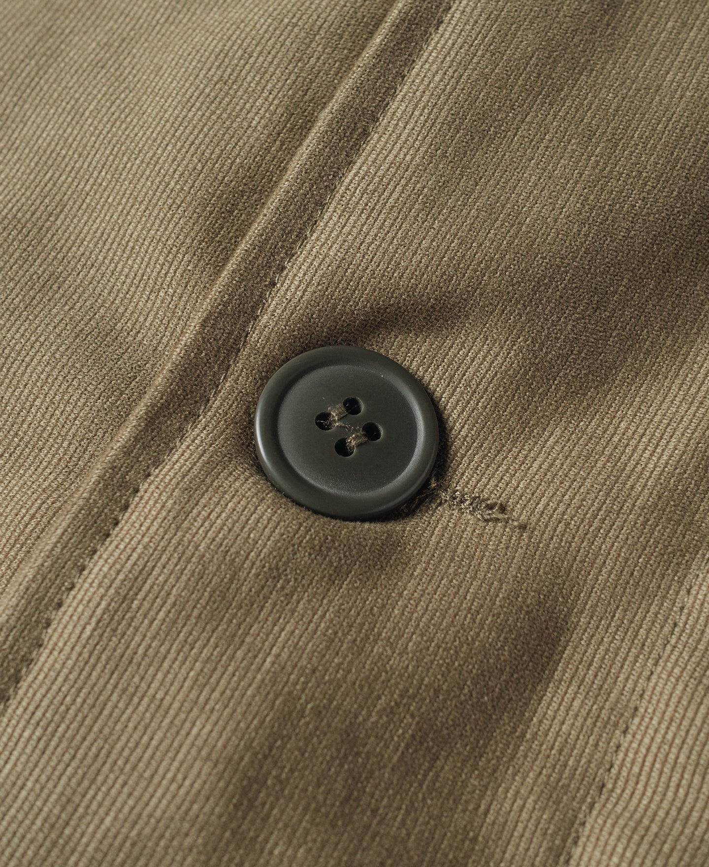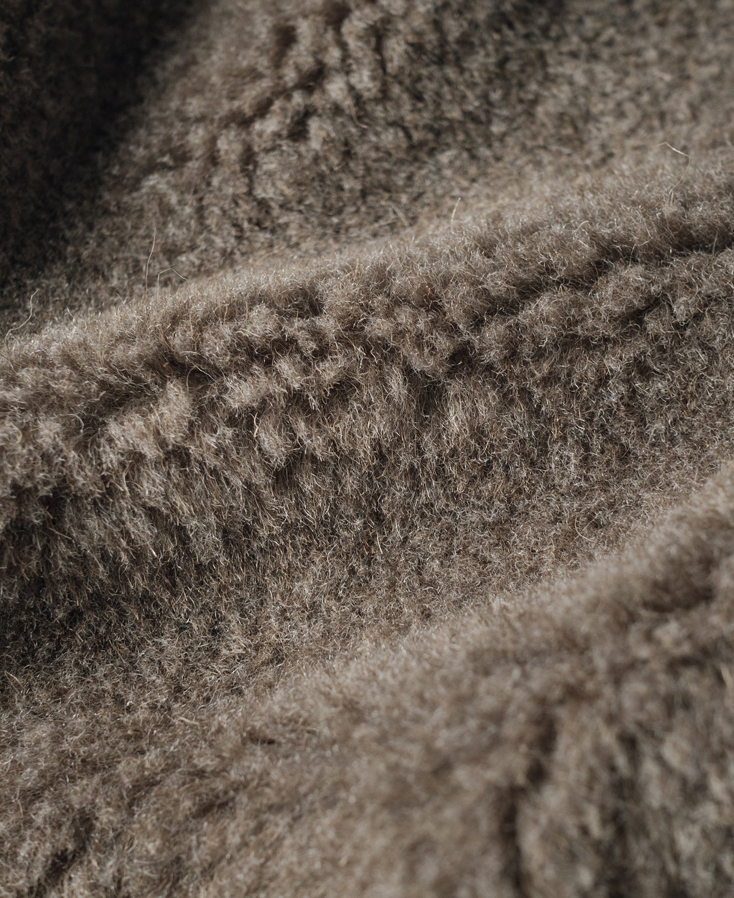 Constructed from heavyweight textured jungle cloth, this jacket offers excellent wind resistance and water repellency. The interior is lined with thick plush wool for outstanding insulation, providing a soft and warm feel without easily shedding. Compared to conventional styles, this jacket is more substantial and can easily handle cold weather when paired with a sweatshirt. The optimized cut ensures a comfortable fit with a well-balanced combination of inner and outer fabrics.