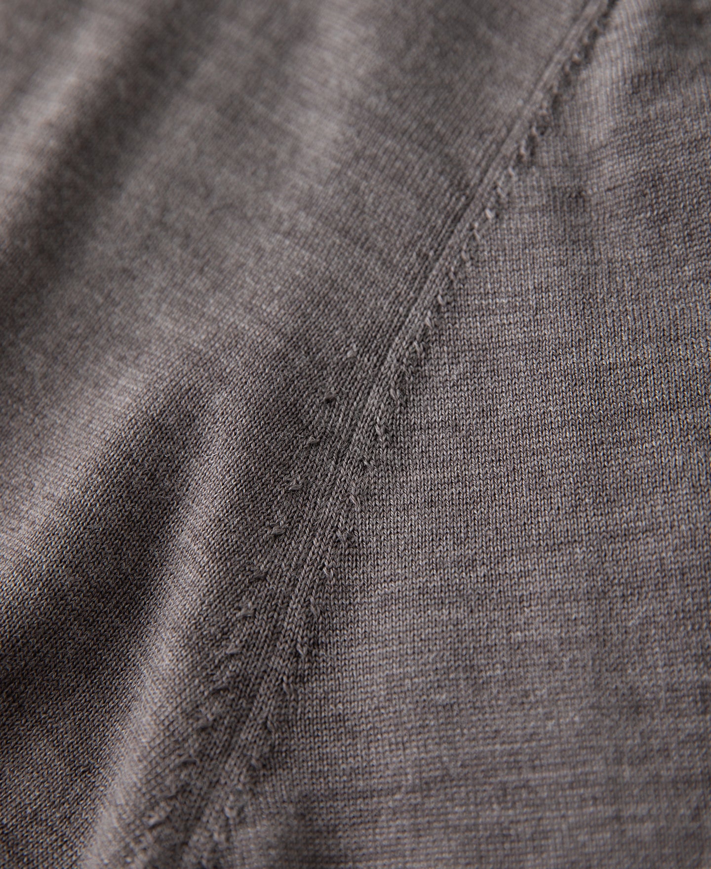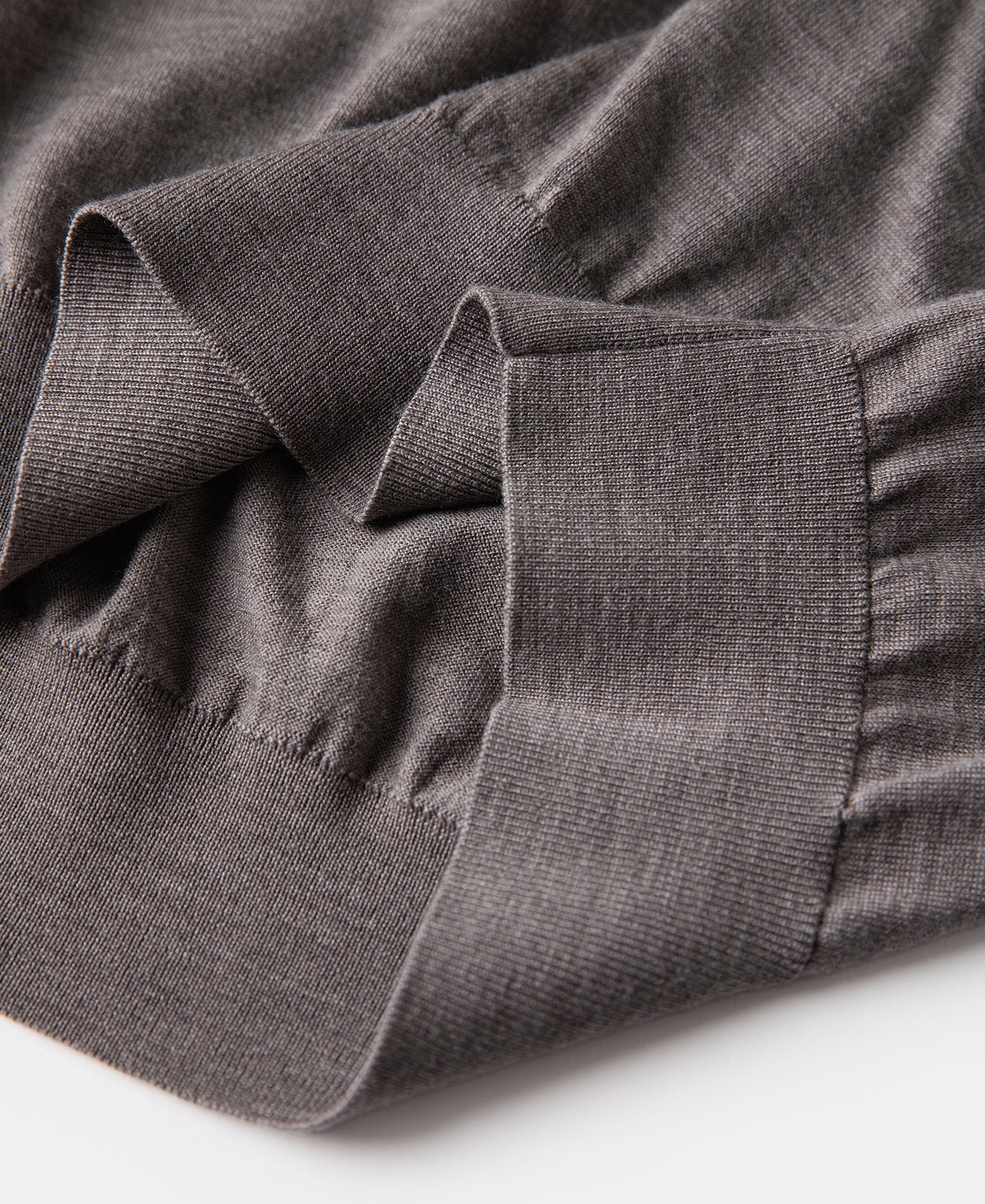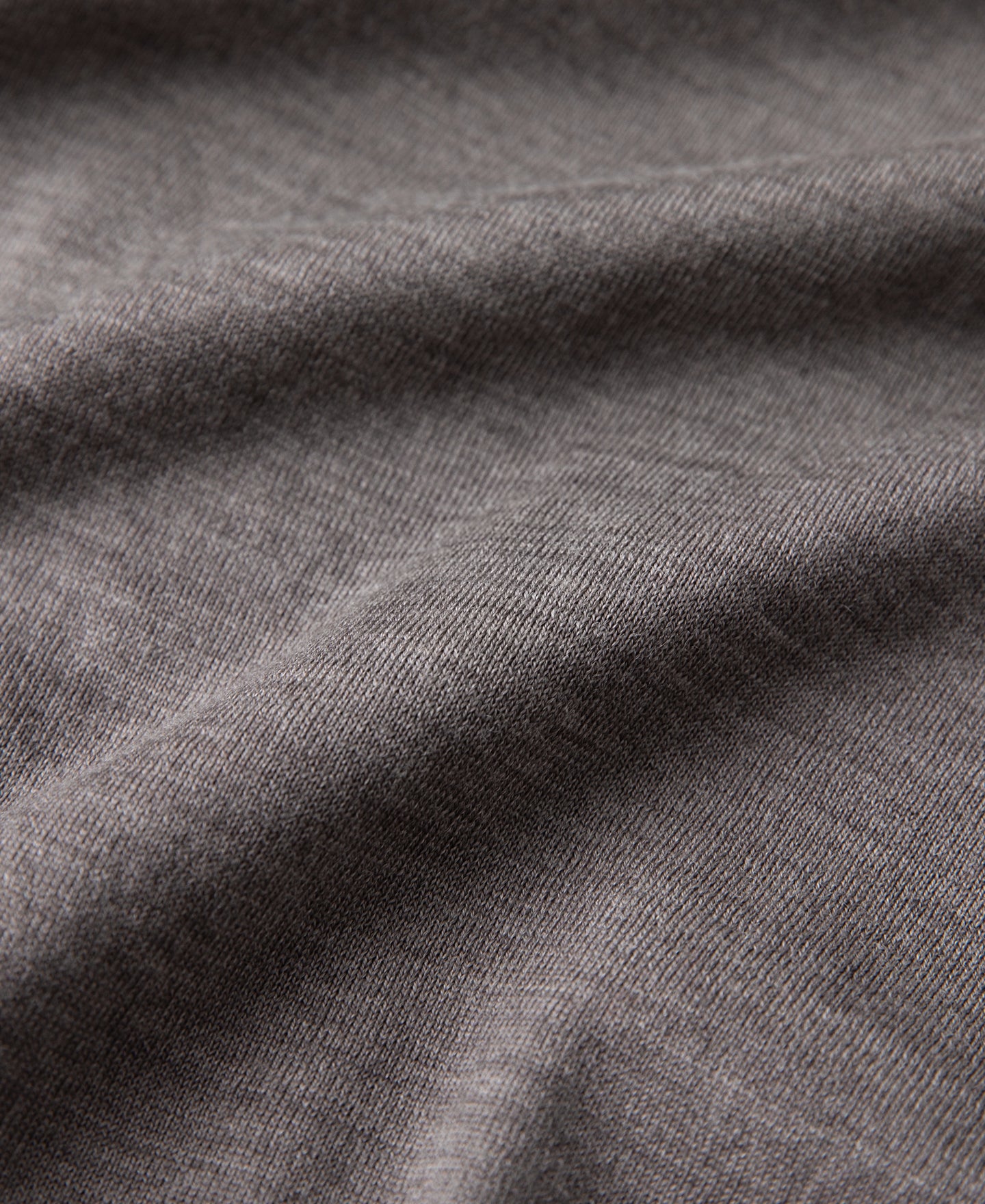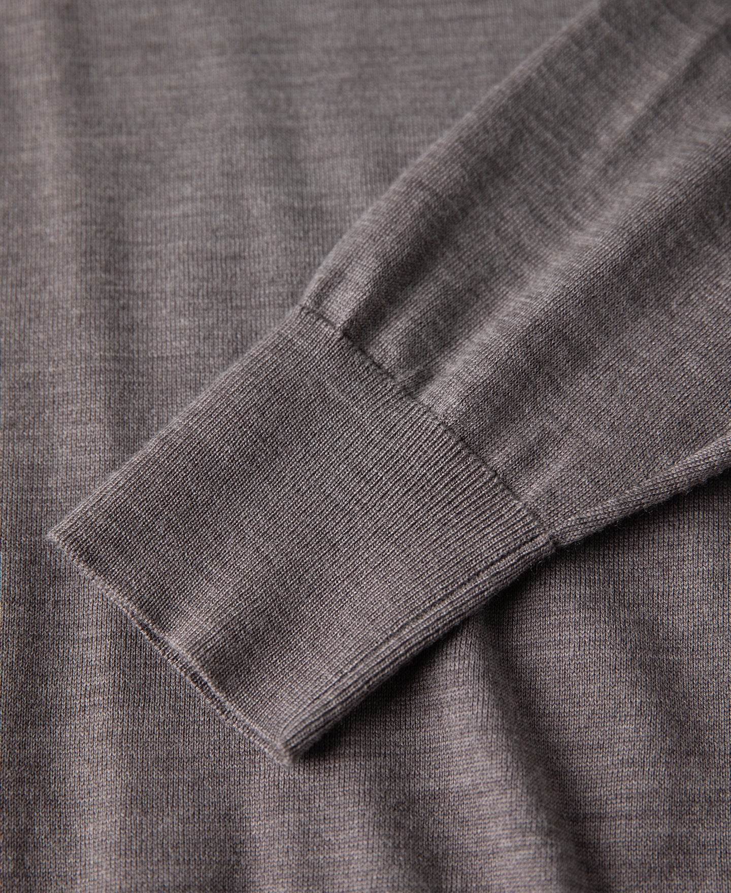 The fibers are processed to smooth the natural scales, so the touch is genuinely non-itch — even at the neck where most wool fails.