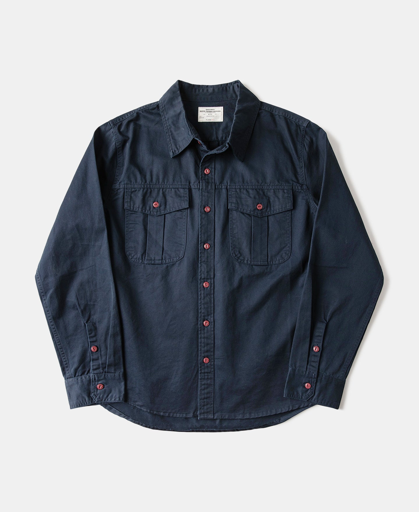 A faithful reproduction of the classic engineer work shirt. This piece carries the spirit of old-school utility garments, with a silhouette that echoes painter’s smocks.