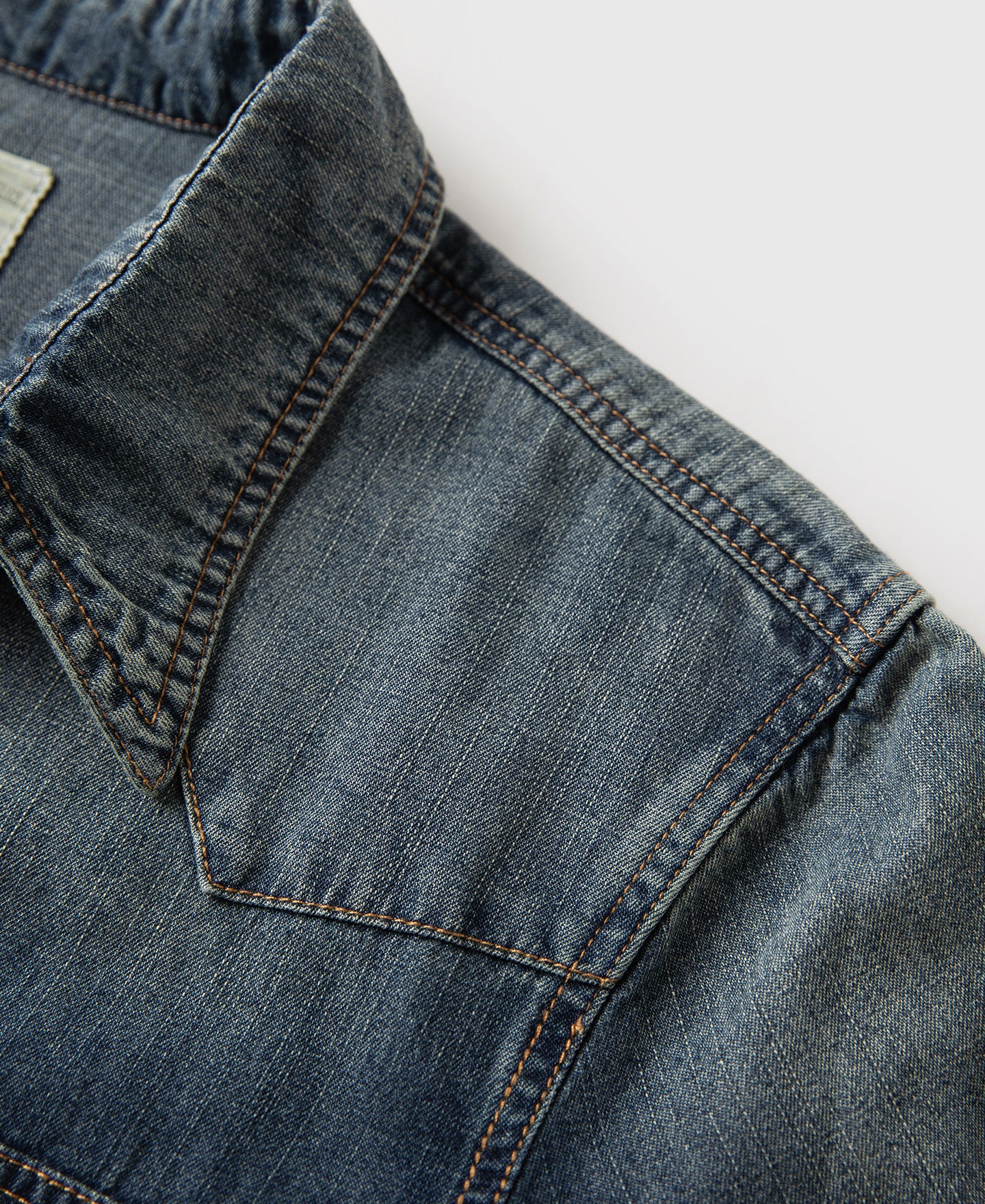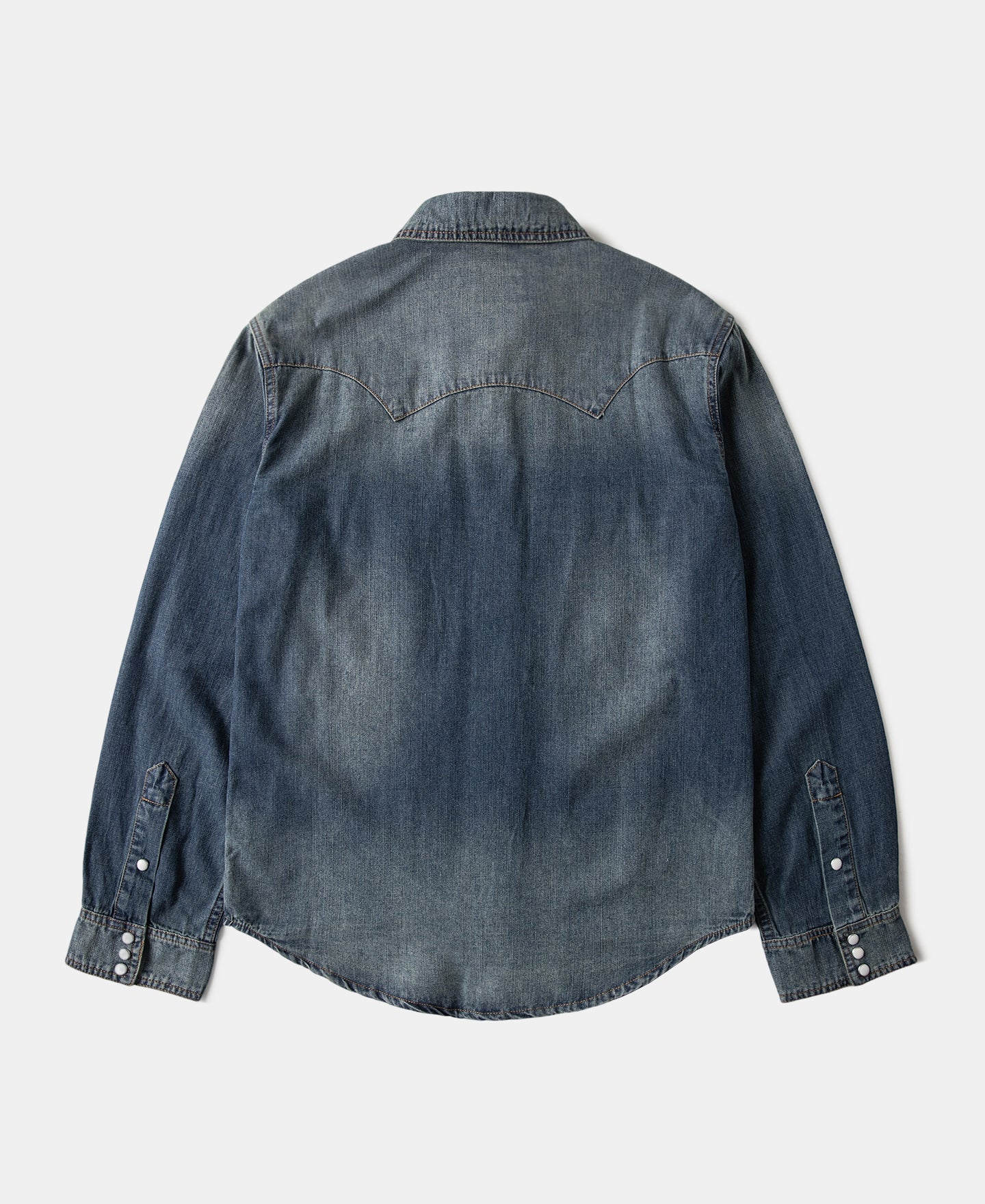 Slub Denim Snap Button Western Shirt - Washed Indigo
