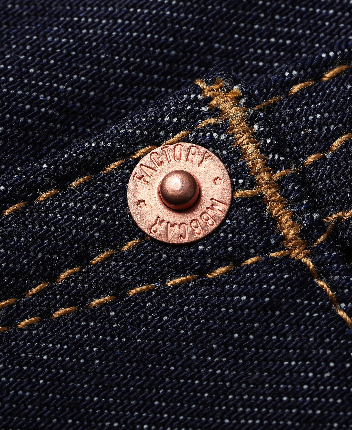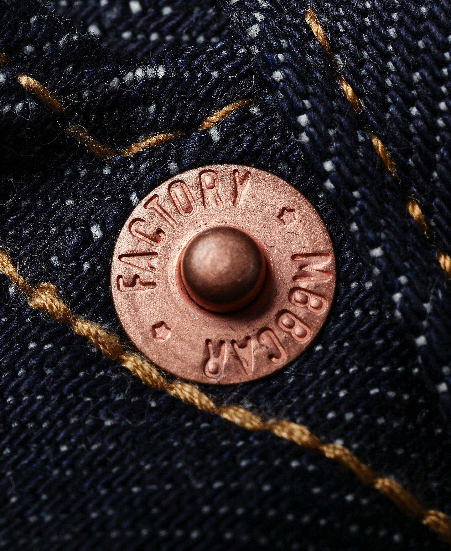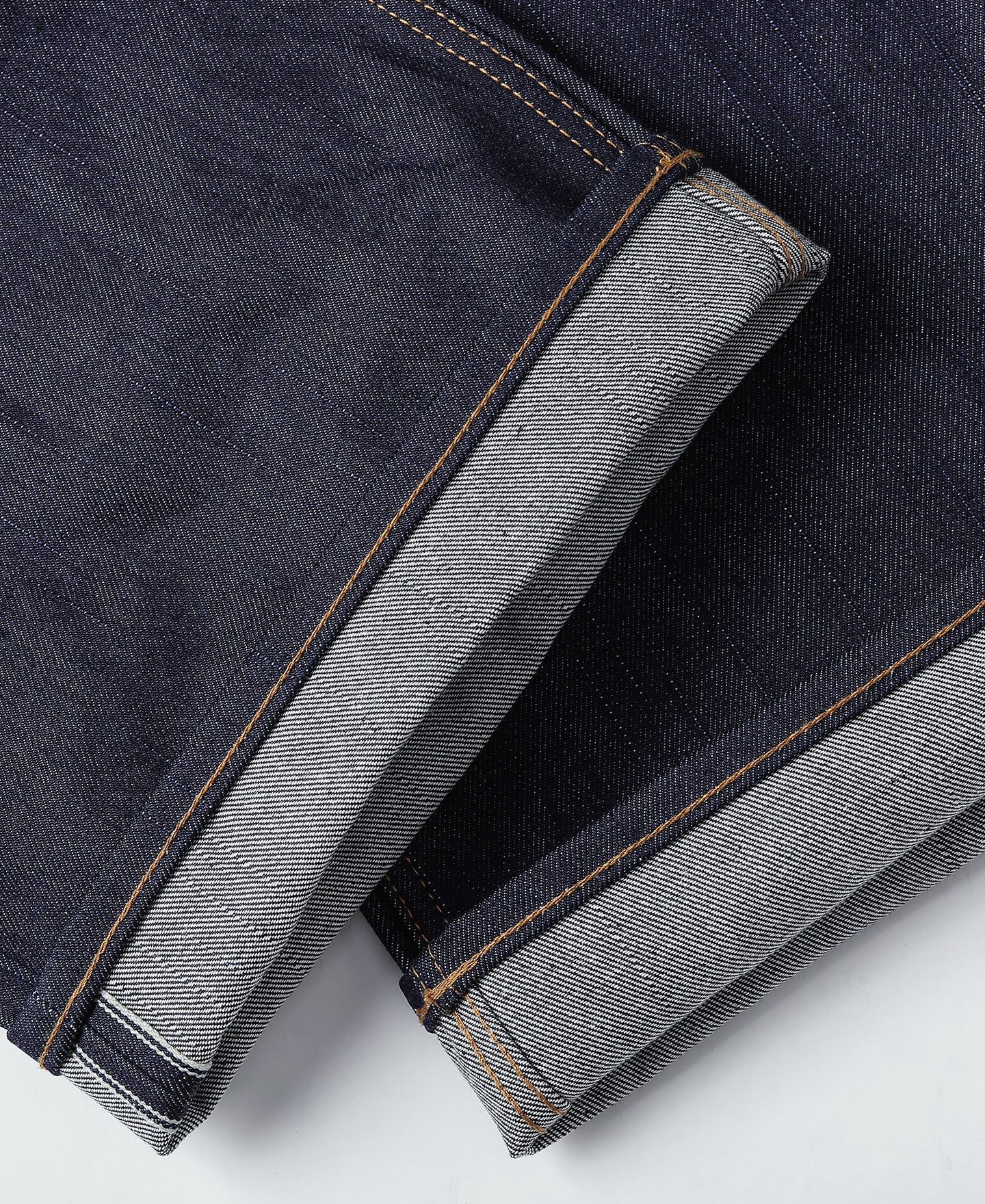 The rope-dyed, high-twist ring-spun yarns give the fabric a clean yet richly layered surface with exceptional durability and depth of color.