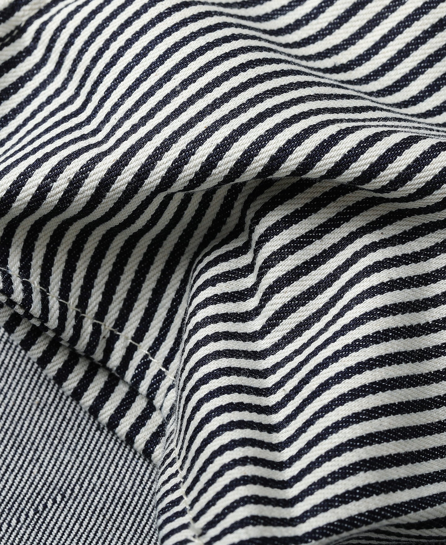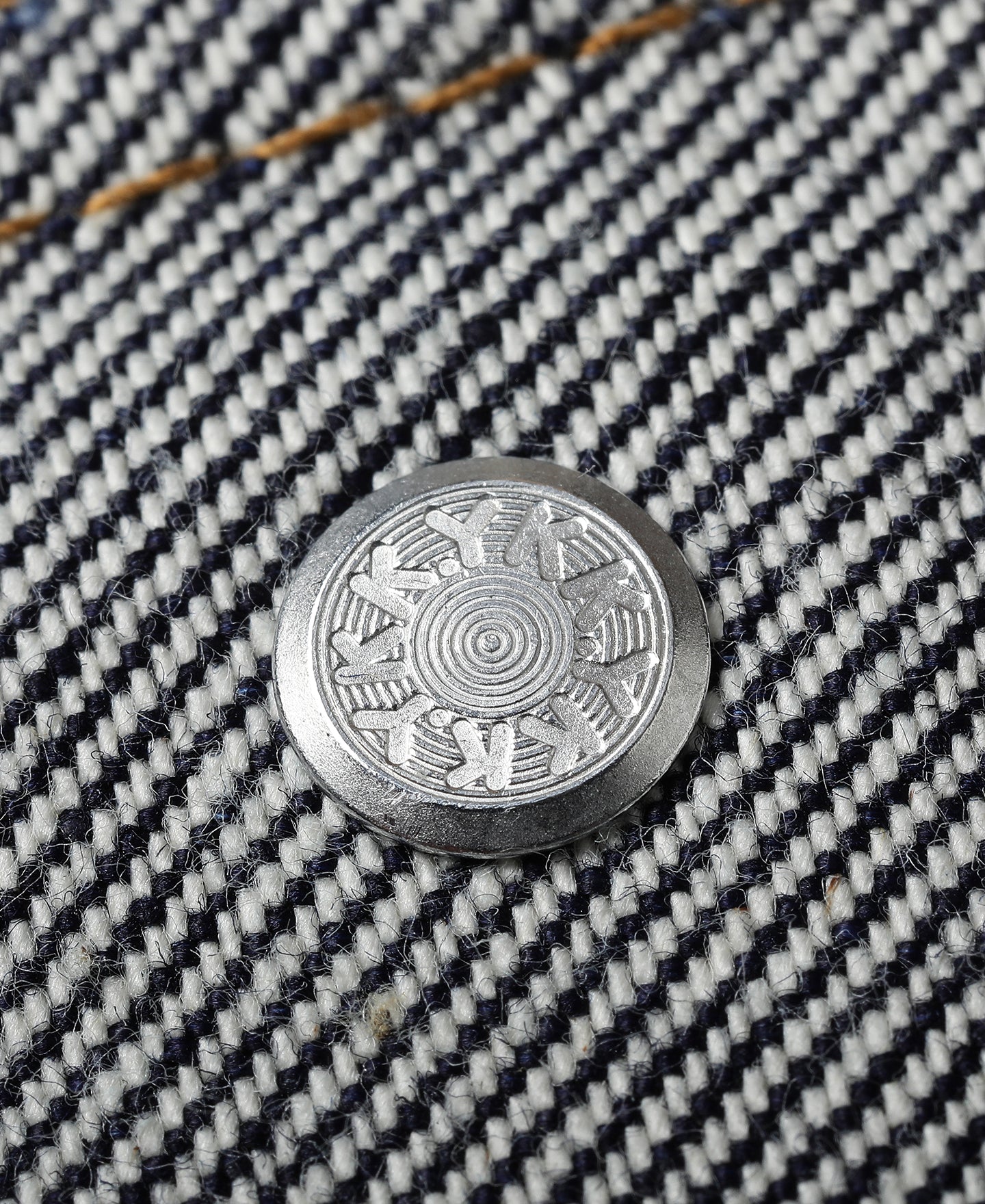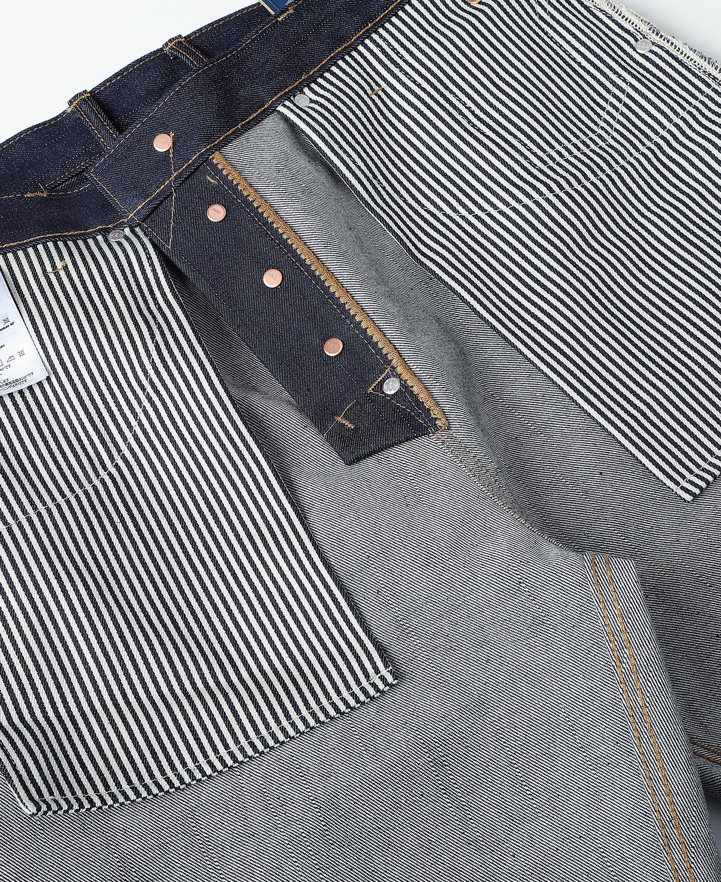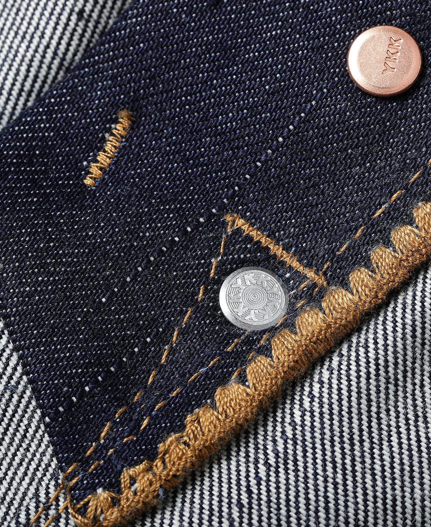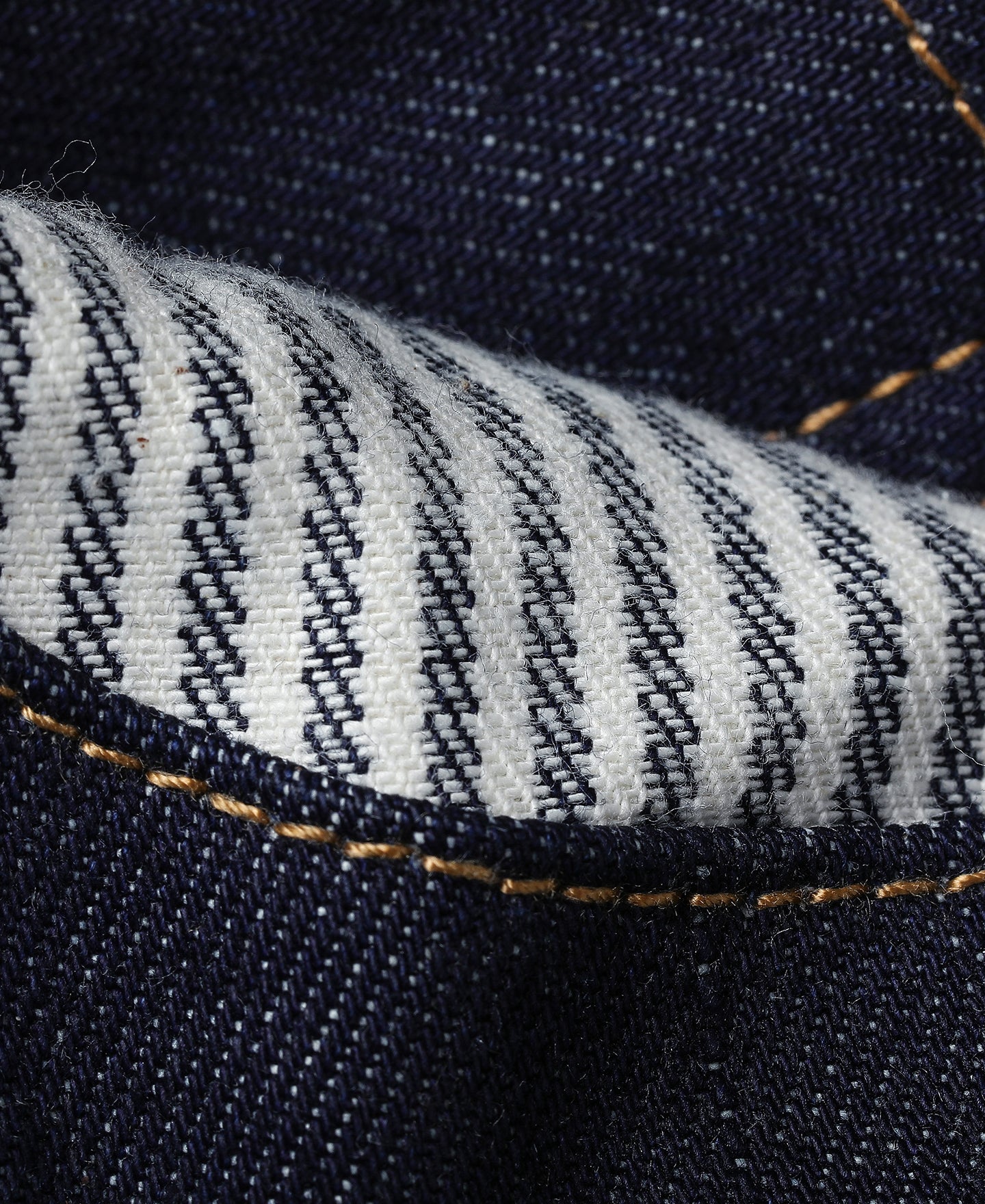 Crafted from 17.7oz kasuri-patterned denim woven on vintage looms, this piece highlights the traditional kasuri technique — a weaving method that creates subtle, irregular patterns for a unique textured look.
