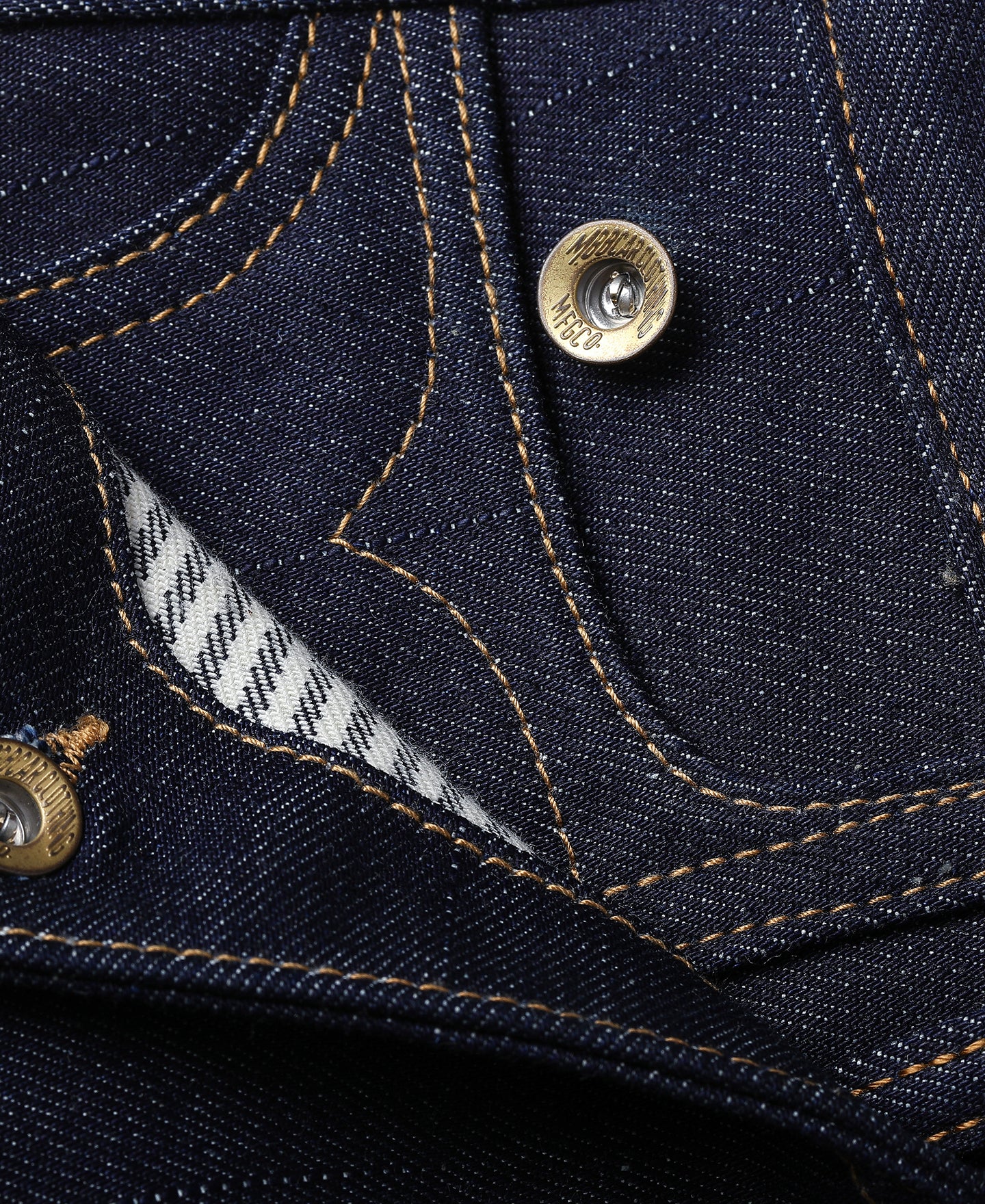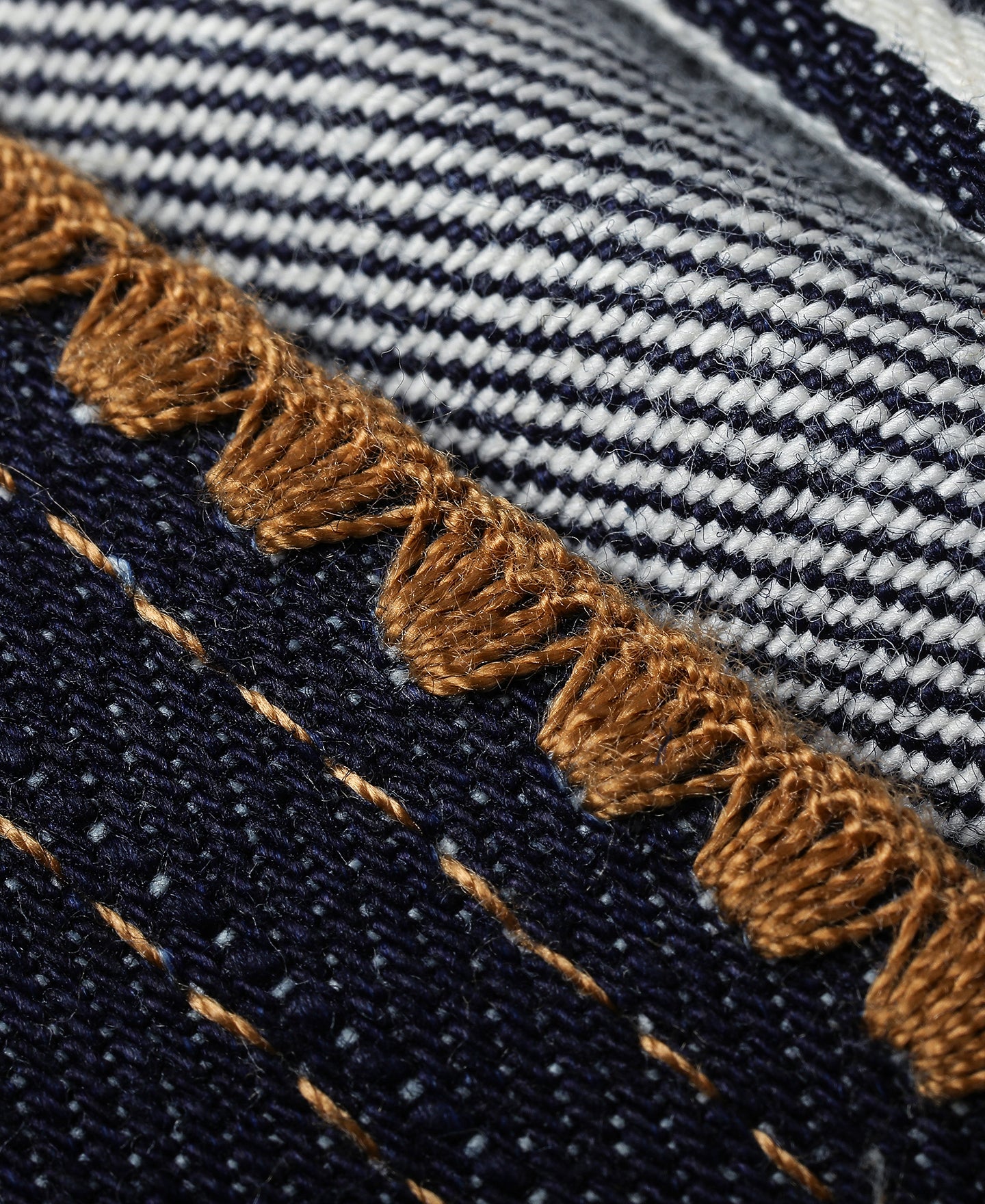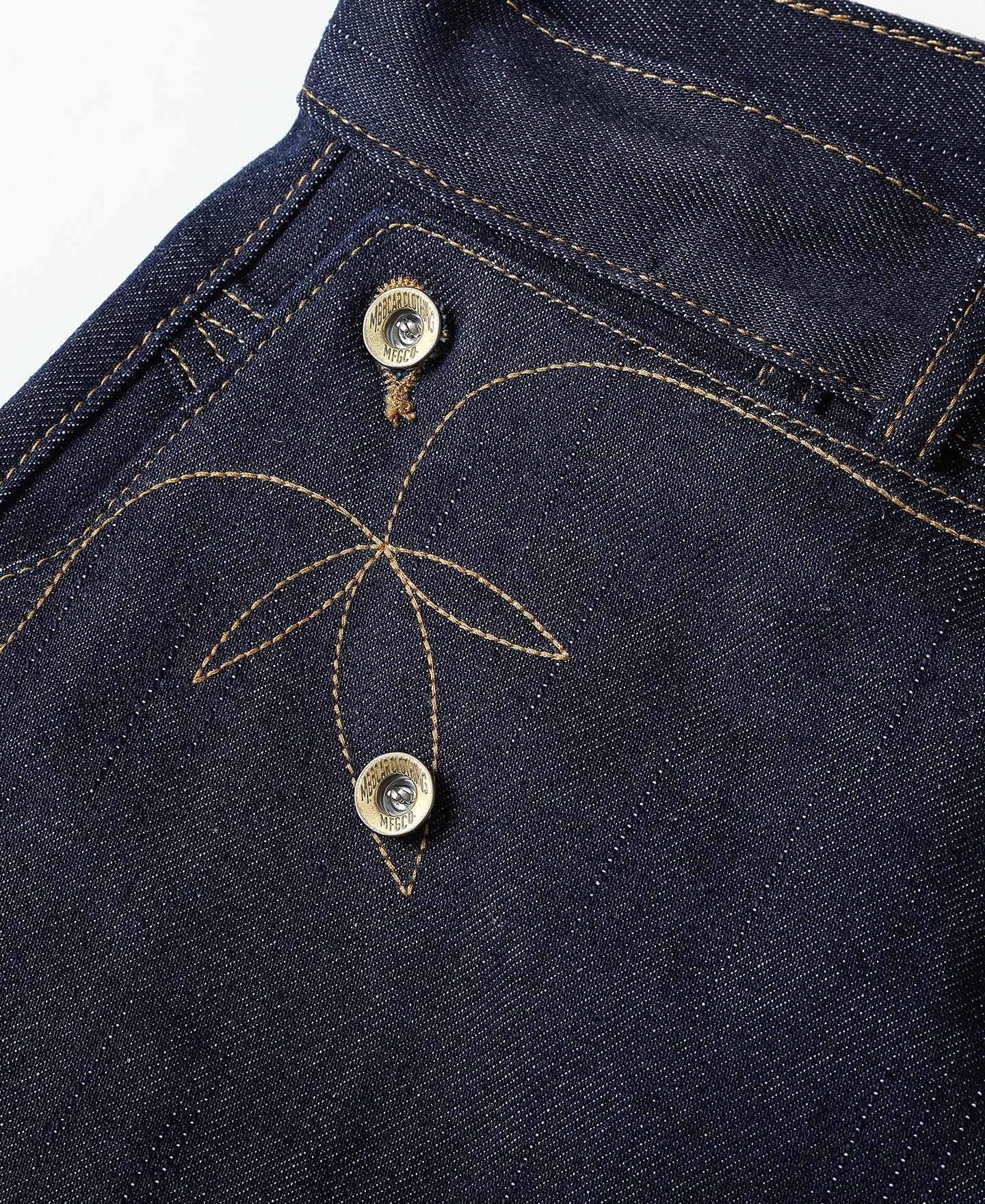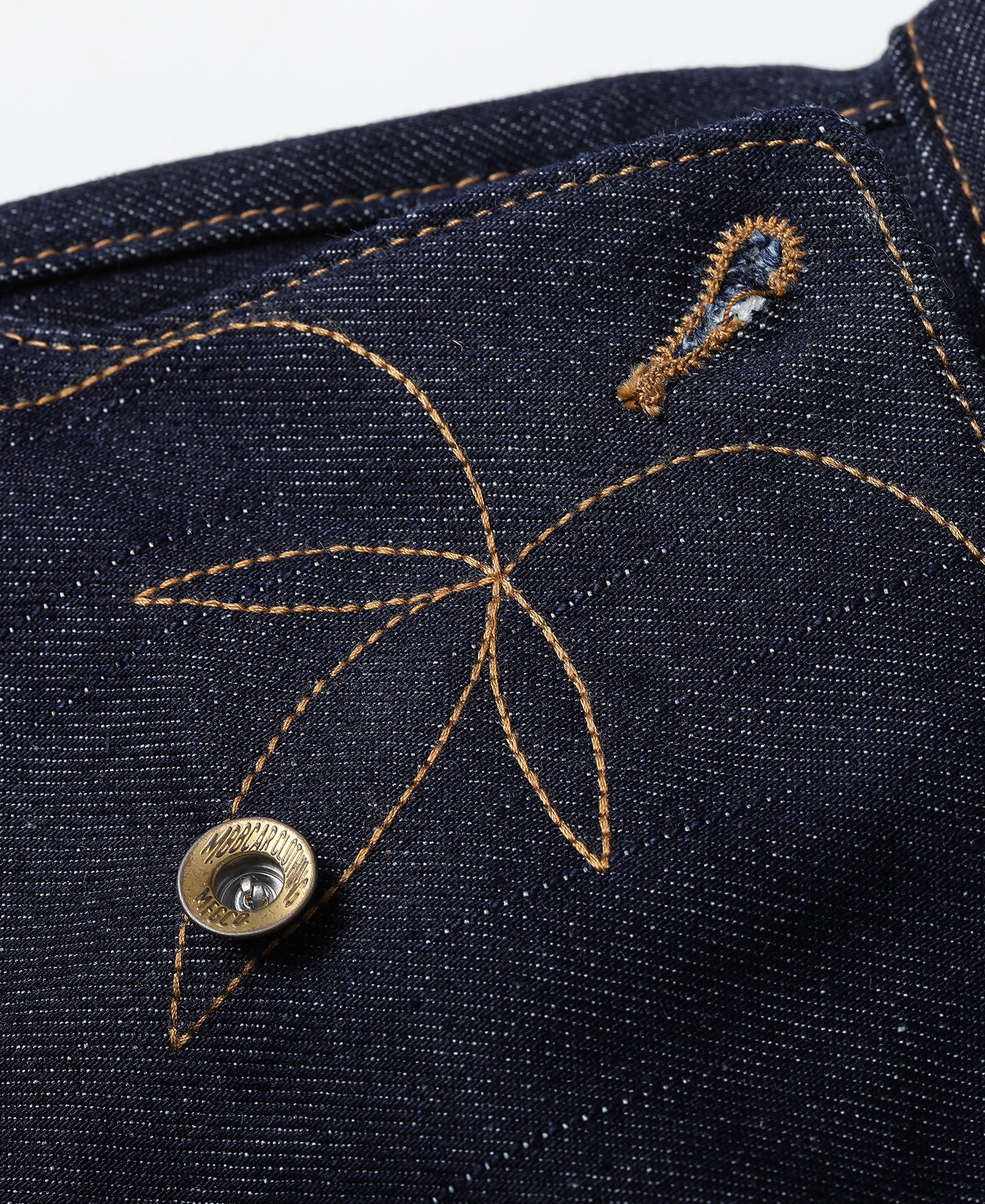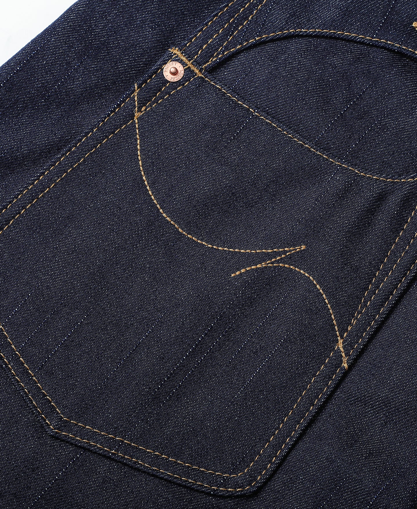 Crafted from 17.7oz kasuri-patterned denim woven on vintage looms, this piece highlights the traditional kasuri technique — a weaving method that creates subtle, irregular patterns for a unique textured look.
