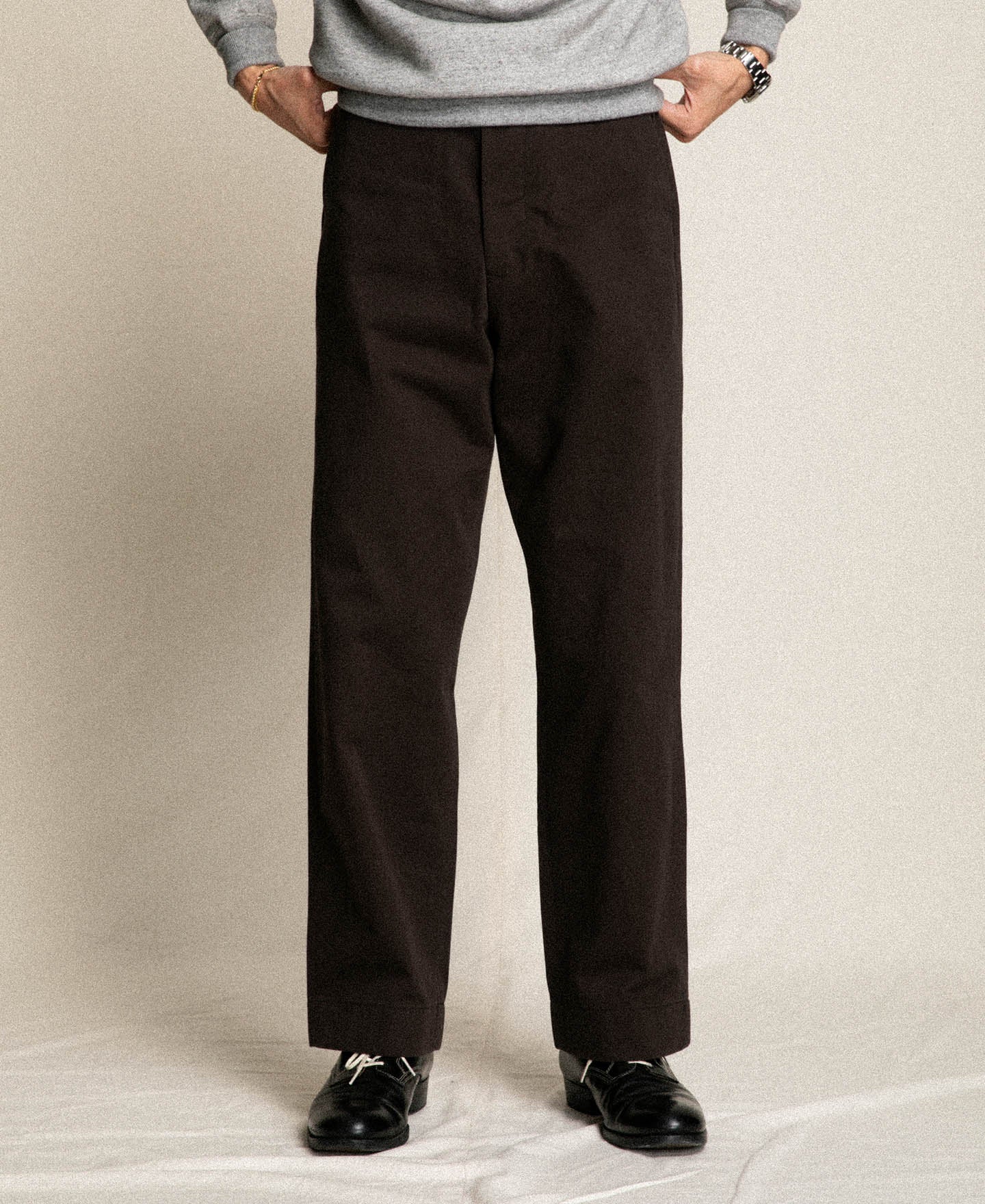 The drapey hemline resists rolling up for a consistently sharp appearance. With reinforced bar tacks at critical stress points and a classic button-fly front, these trousers blend heritage design with enduring durability.
