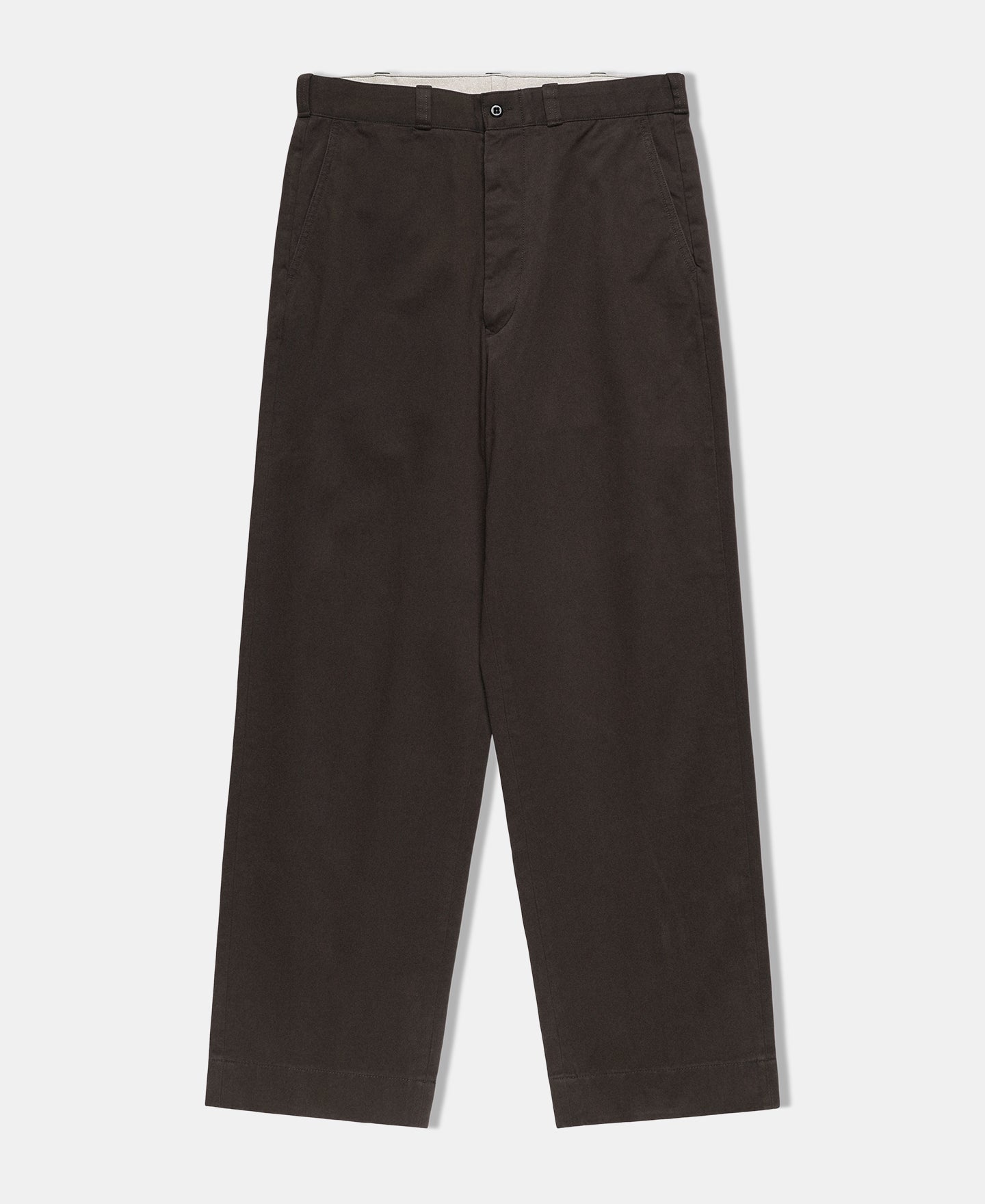 Crafted with a focus on authentic details and robust construction. Featuring a high-rise, wide-leg silhouette, these trousers deliver a clean, timeless profile that embodies vintage military styling.