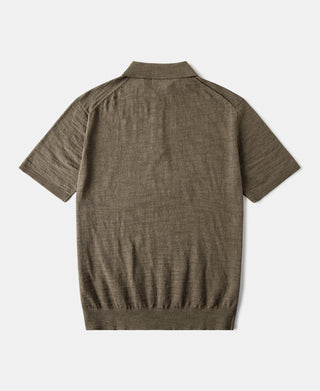 Retro Knitted Jacquard Polo Shirt - Vintage Olive