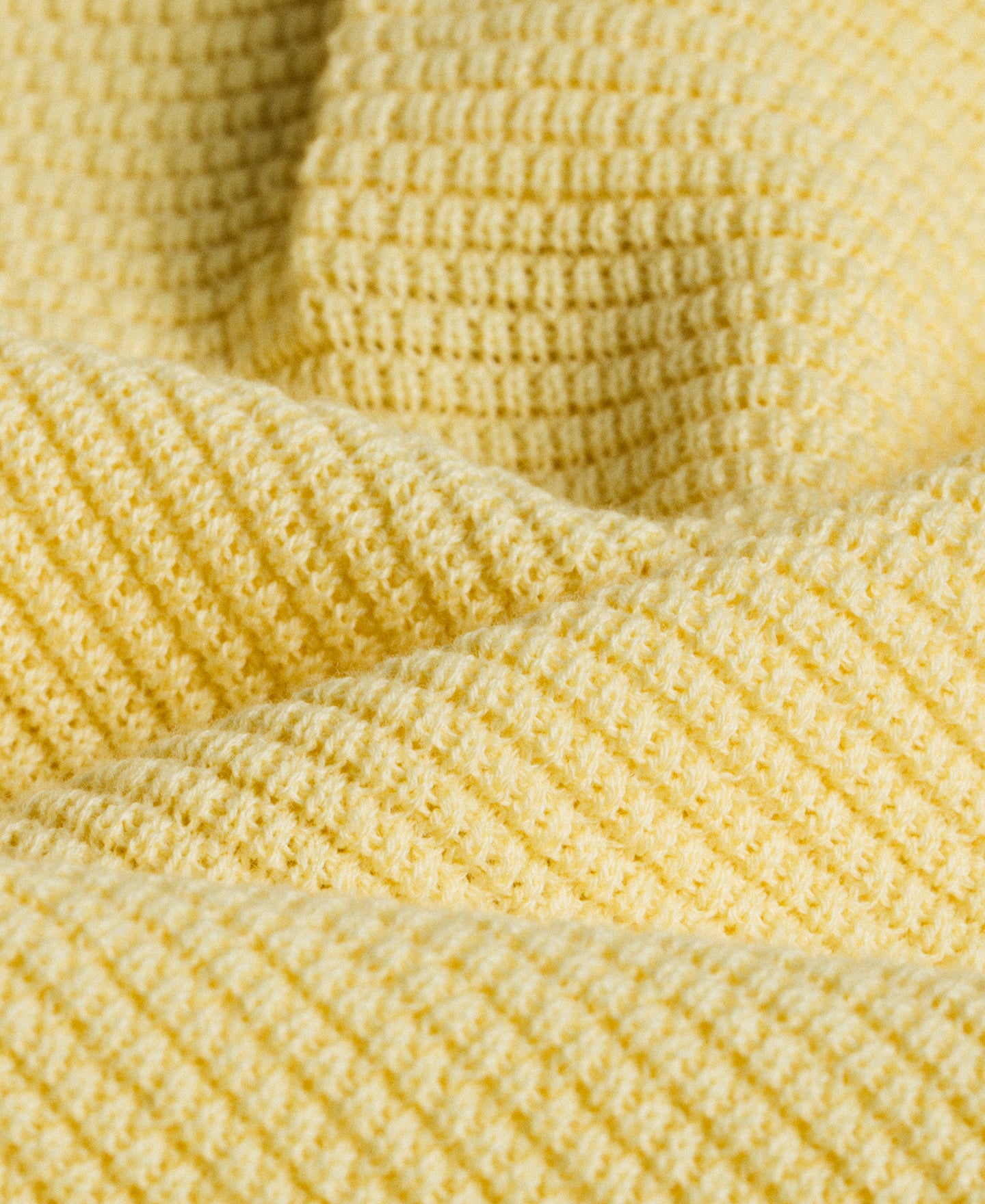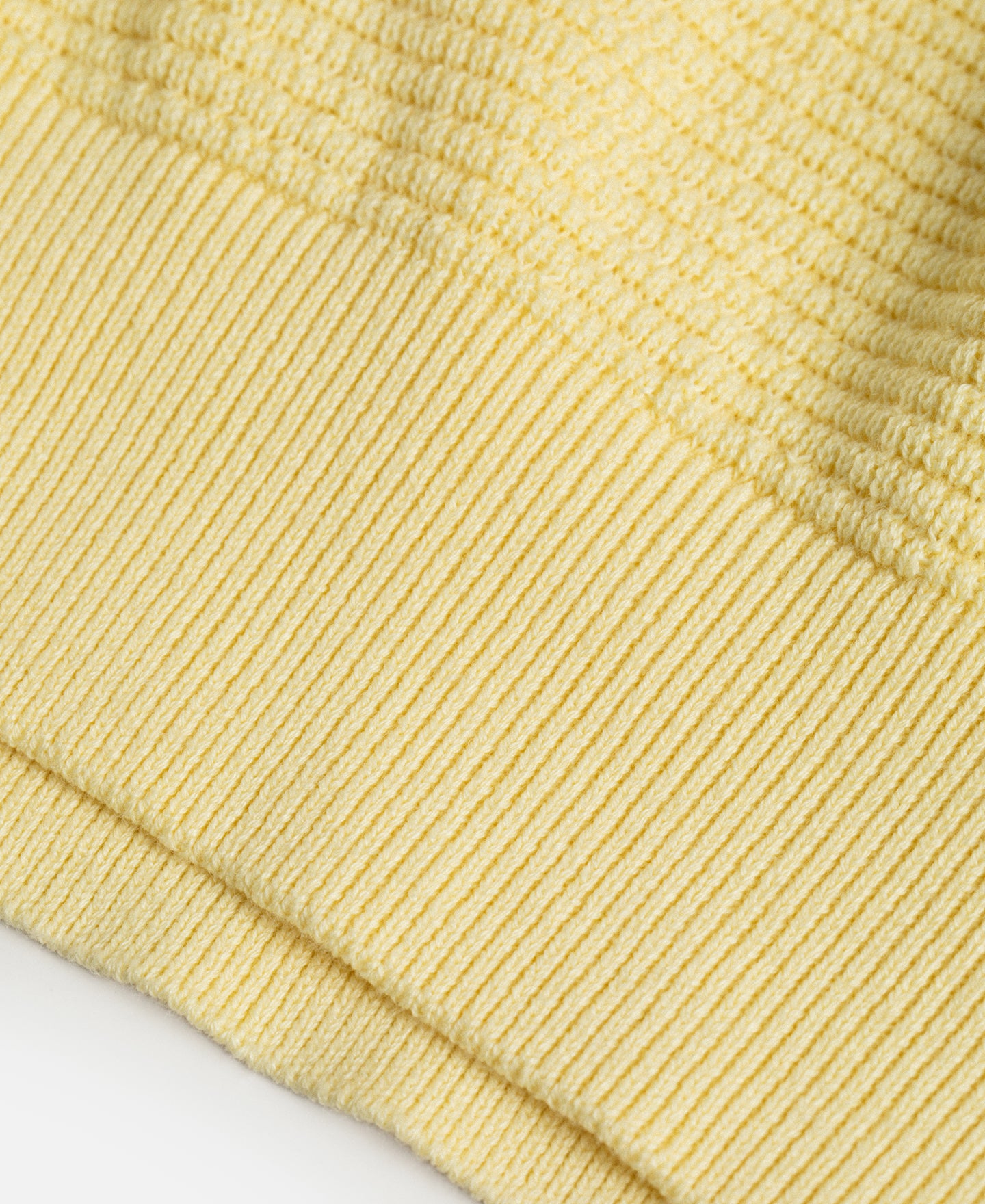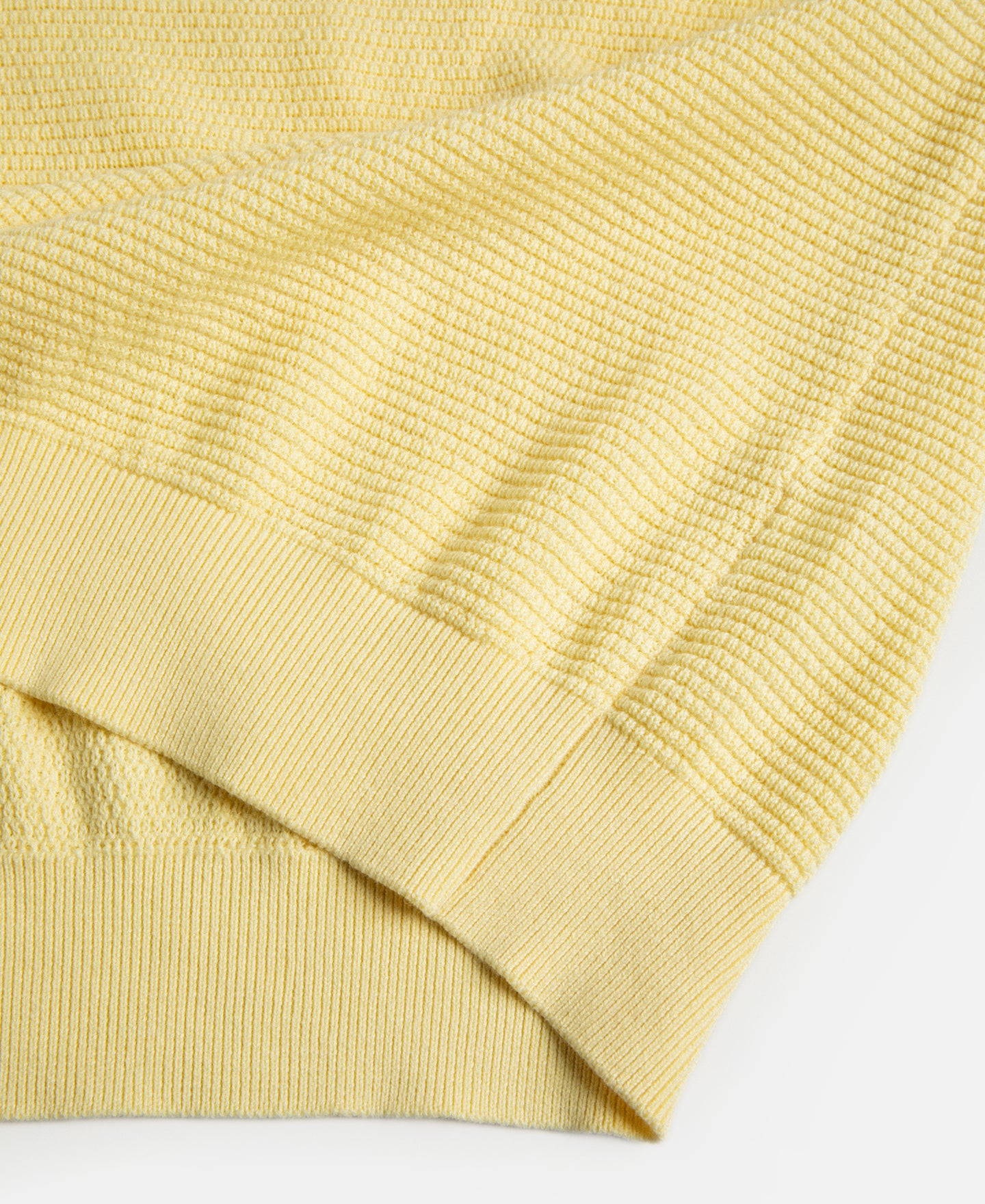 Crafted from 100% combed cotton with a jacquard knit construction, the fabric has a substantial yet soft handfeel, with the intricate jacquard pattern delivering subtle three-dimensional depth and rich texture.