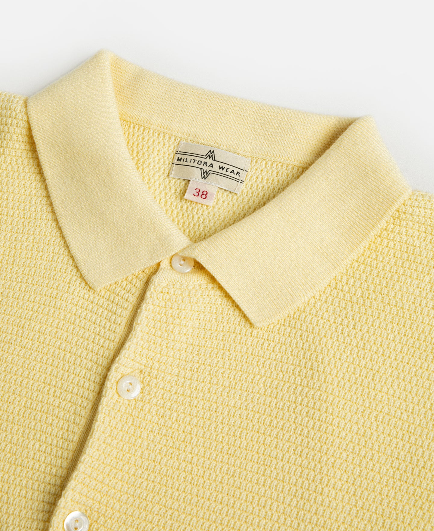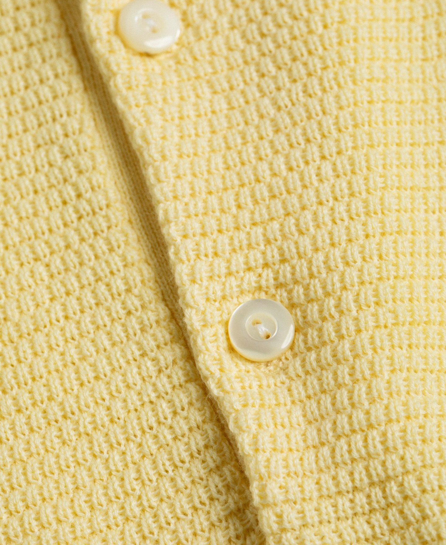 Finished with ribbed cuffs and hem, paired with Japanese-made mother-of-pearl buttons, it delivers refined vintage charm with a minimalist design.