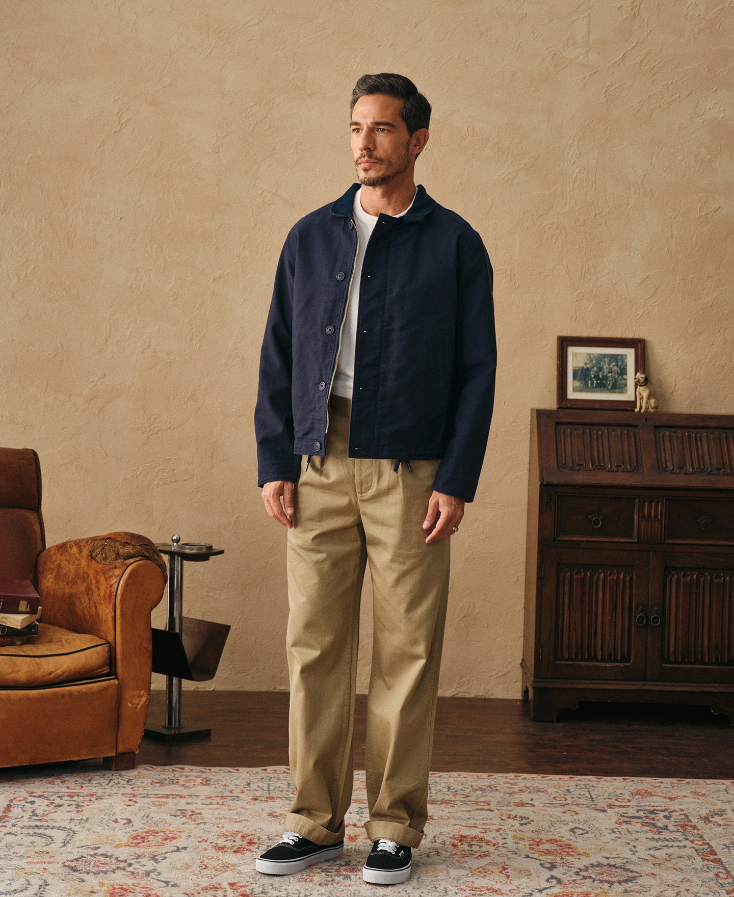 • A modern unlined reproduction of the U.S. Navy's iconic N-1 deck jacket, originally introduced in 1943. Crafted from custom 10 oz 100% cotton jungle cloth, it offers durable structure without bulk while preserving the heritage silhouette.