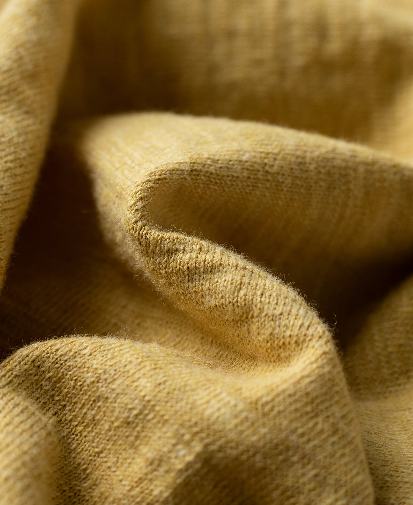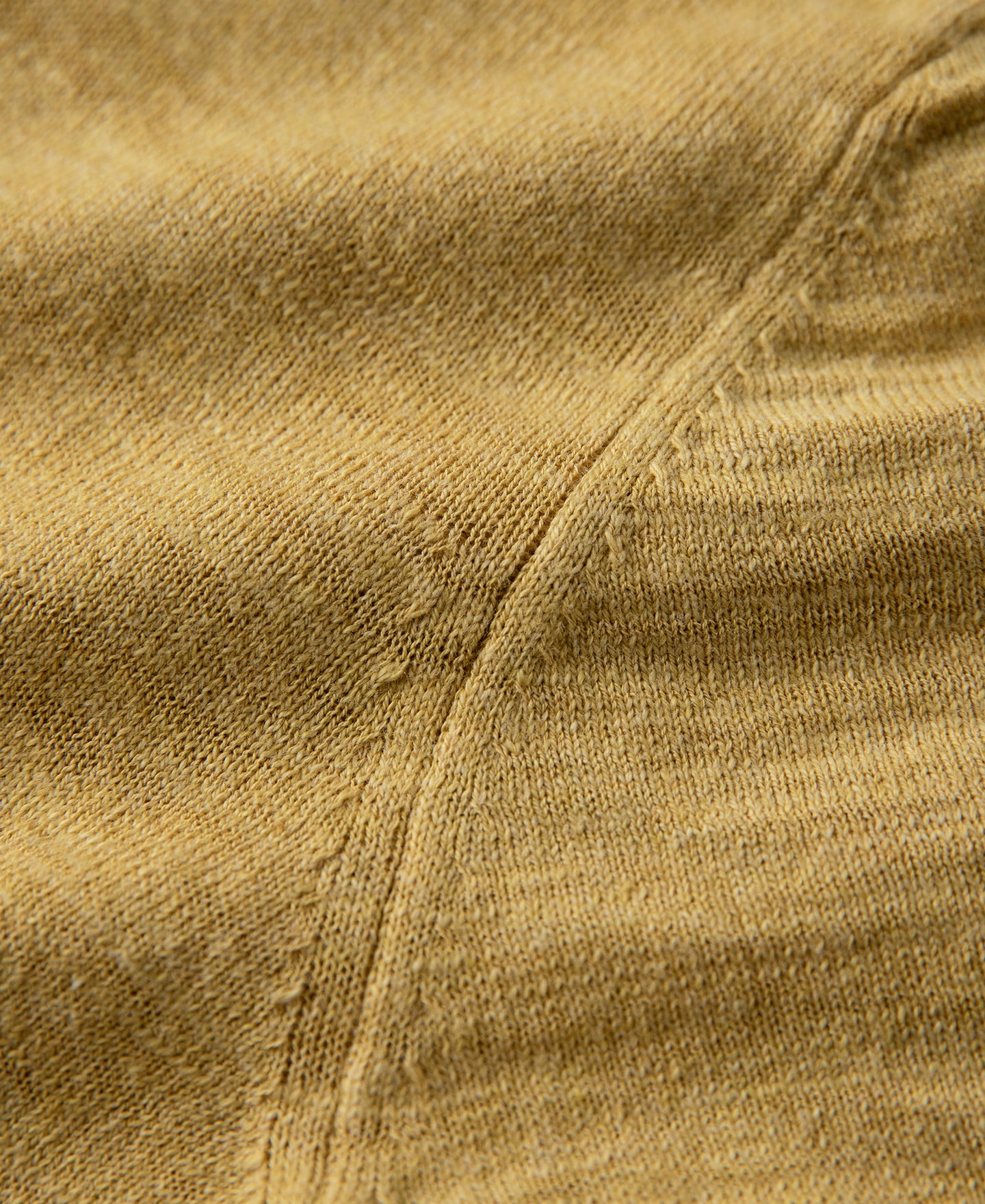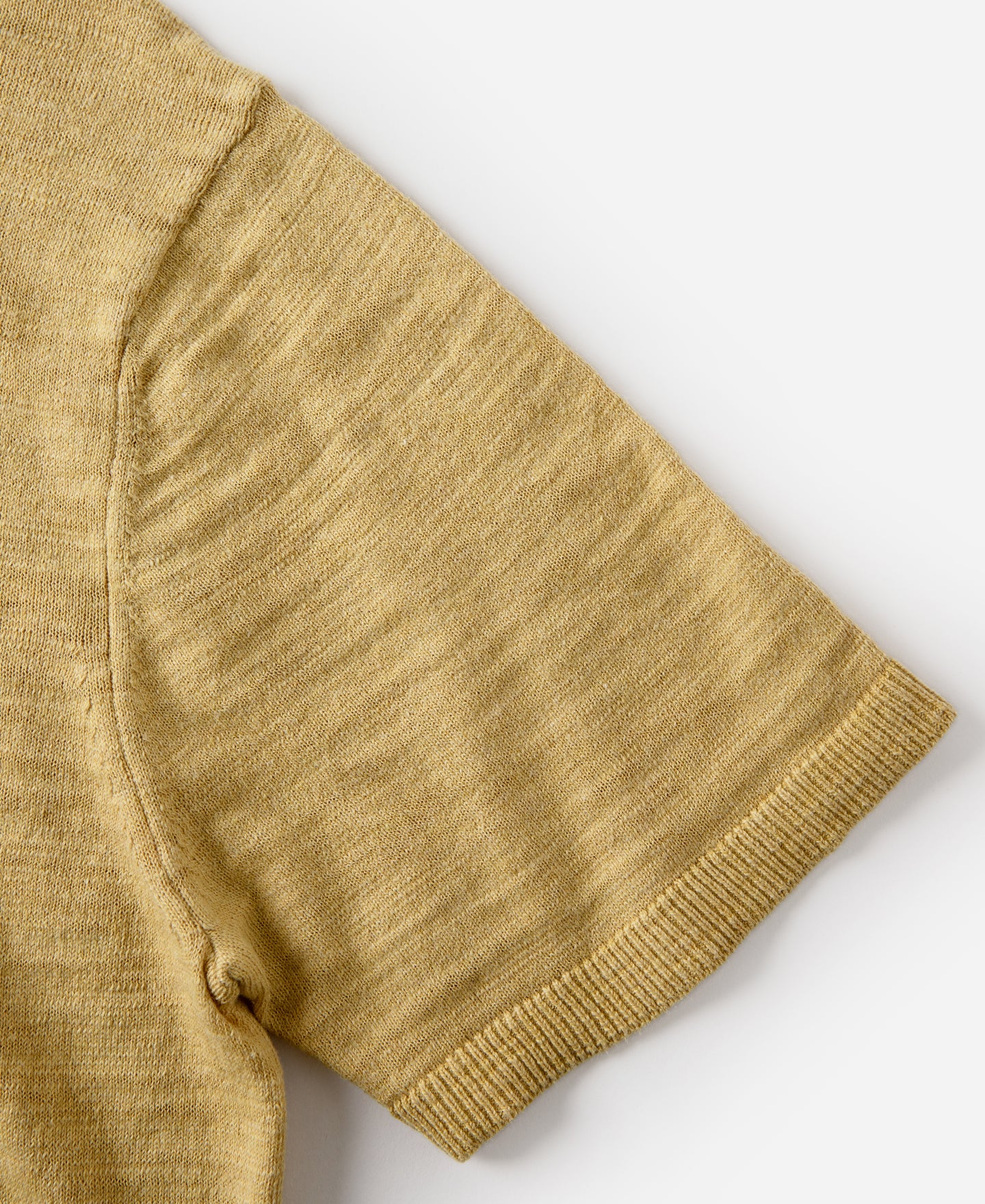 Classic fit knit polo crafted from yarn-dyed 12-gauge slub cotton jersey. The collar and stand are constructed with a four-way trimming technique, while the collar surface uses a four-flat finishing method for a more refined and comfortable appearance. The body is made using single-sided jersey knitting, with spandex added to the hem for enhanced elasticity. Finished with hand-linked seams for improved durability. Versatile and polished, this polo transitions effortlessly from casual vacation wear to light business settings.