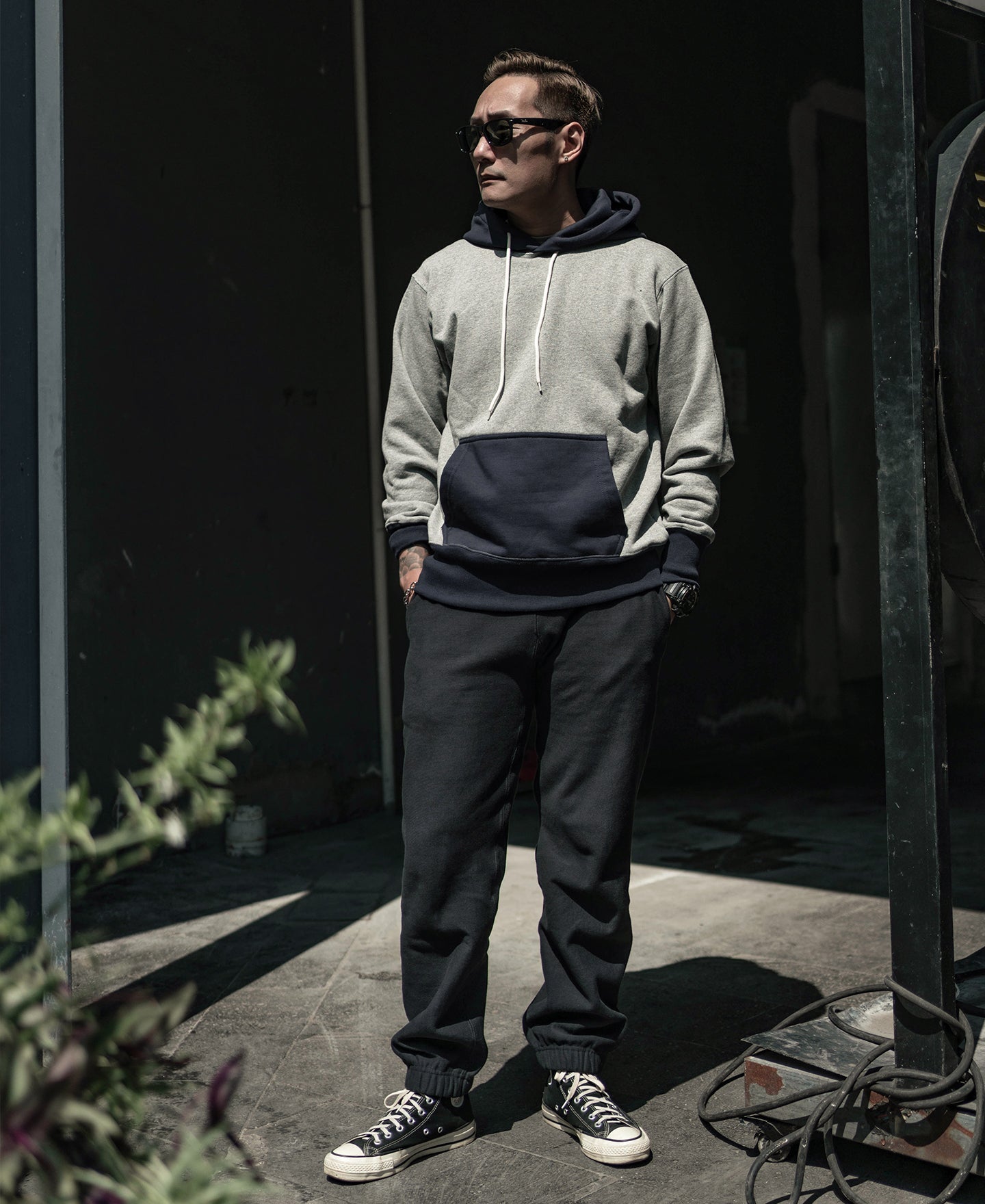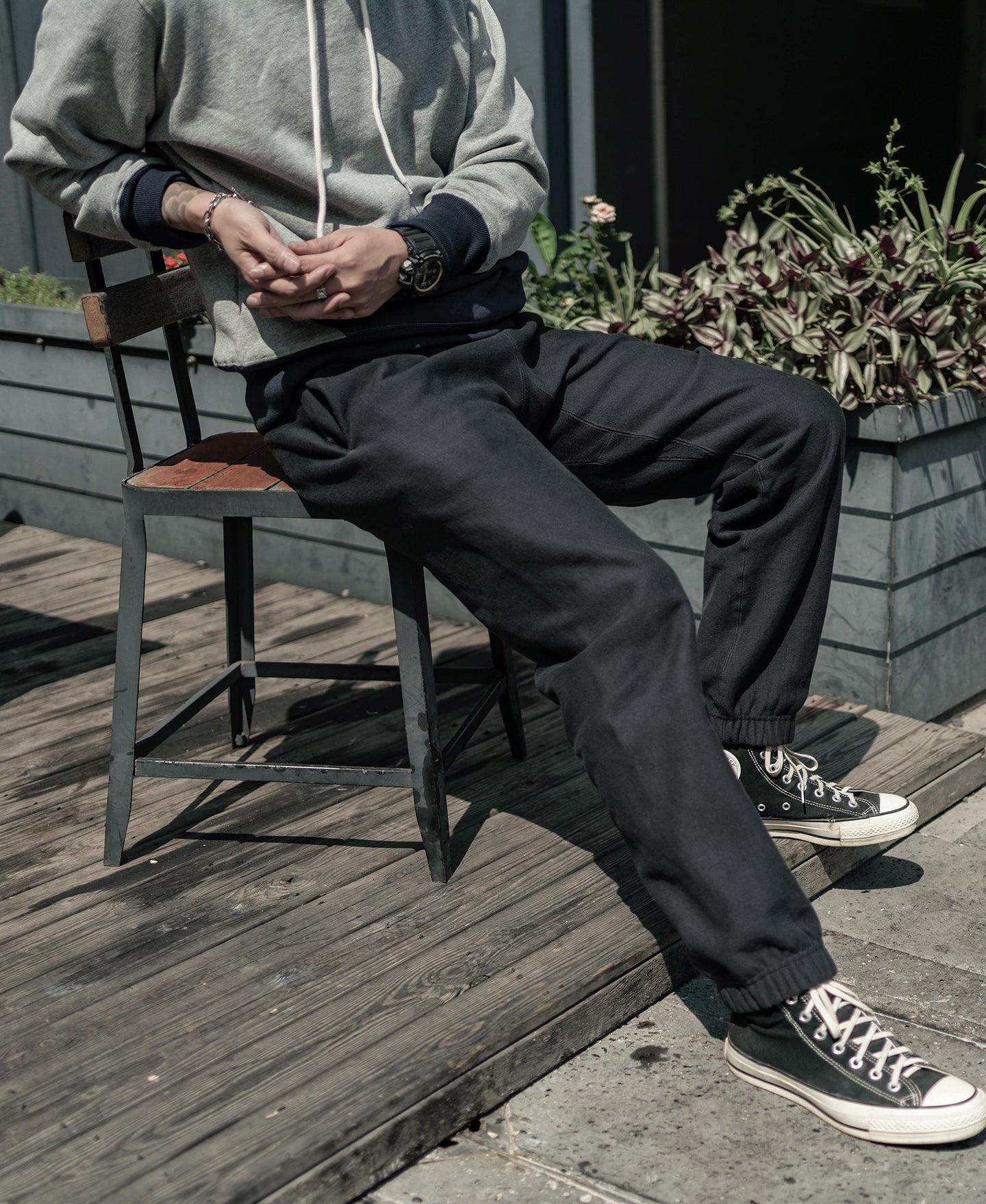 Based on 1950s vintage sweatpants, this pair features a reverse weave construction with a ribbed gusseted crotch for durability and ease of movement.