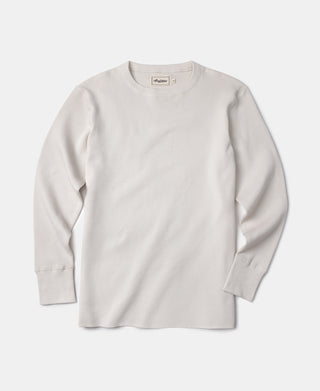 Honeycomb Waffle Knit Henley Long Sleeve T-Shirt - Oatmeal