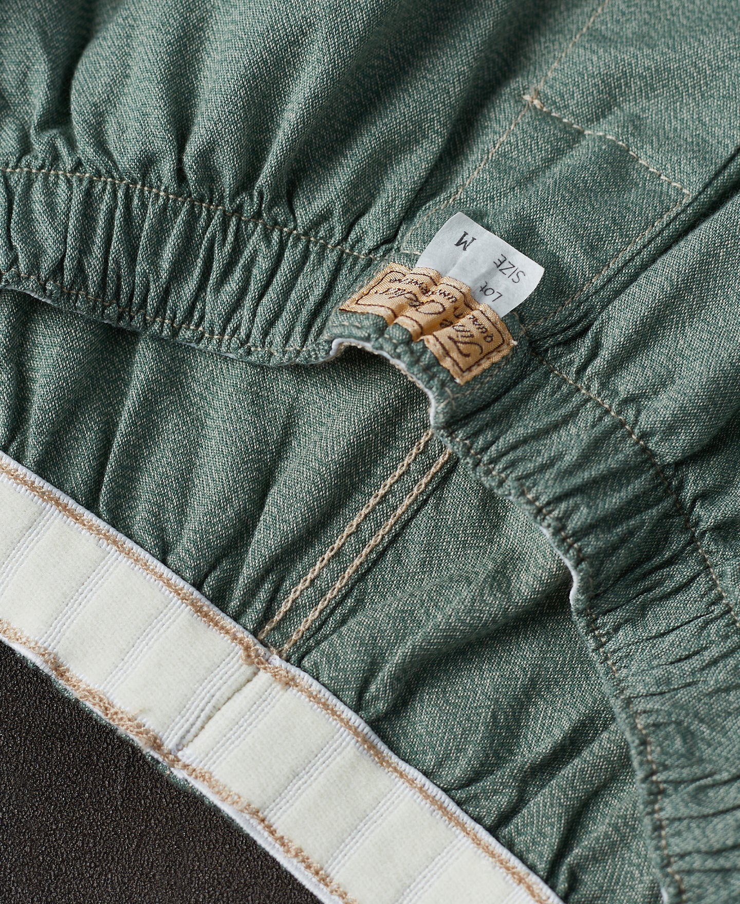Die Boxershorts im 1950er-Jahre-Stil bestehen aus einem „Salt & Pepper“-Baumwollstoff aus Japan, haben ein weiches, nicht dehnbares Tragegefühl, einen natürlichen Muschelknopf am vorderen Hosenschlitz und sind in vier Farben erhältlich.