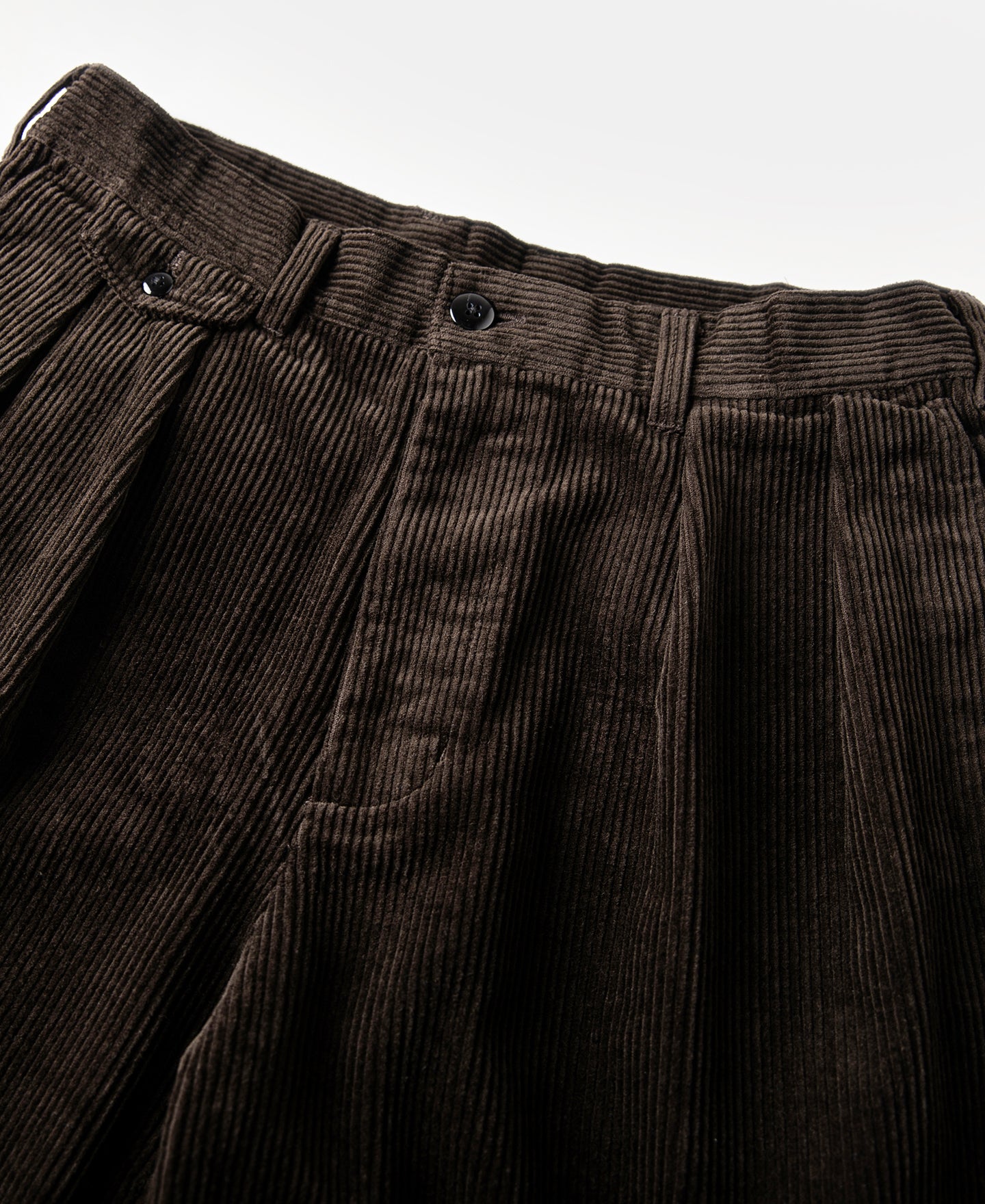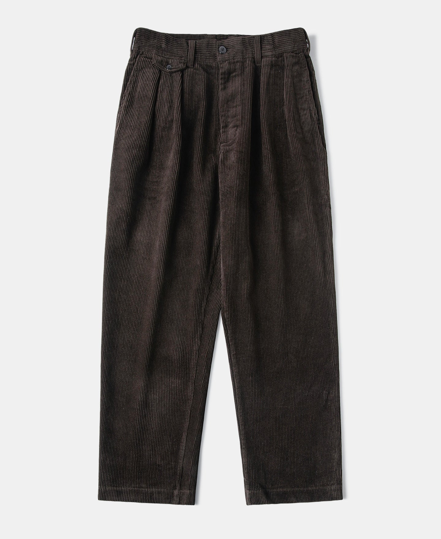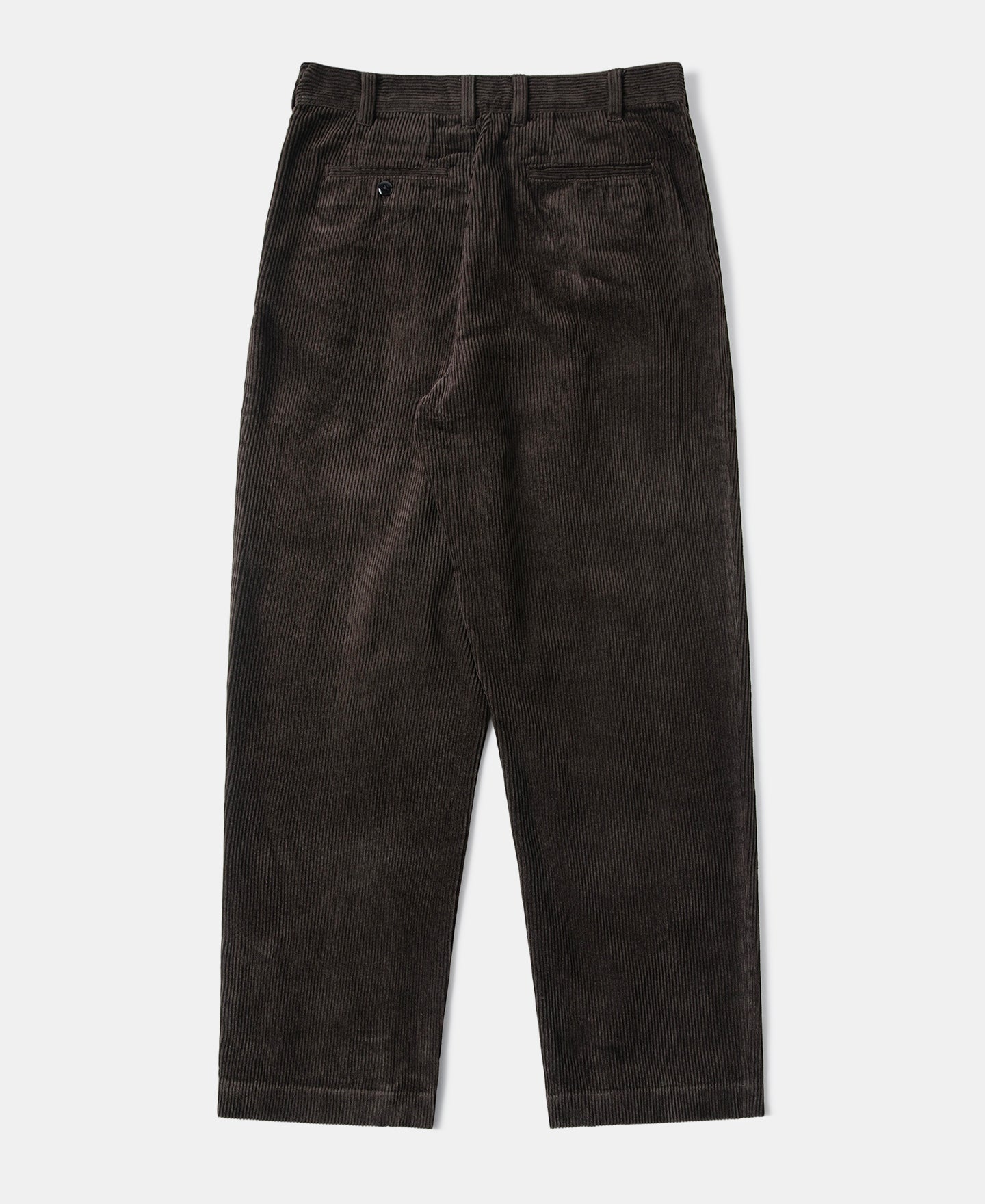 Inspired by 1960s European work trousers, this pair features a double-pleated design with a relaxed wide-leg and mid-high rise fit. Slightly refined for a more modern silhouette and everyday versatility, the trousers are crafted from heavyweight cotton corduroy. Garment-washed for a soft hand and naturally vintage appearance, they combine old-world charm with contemporary wearability.