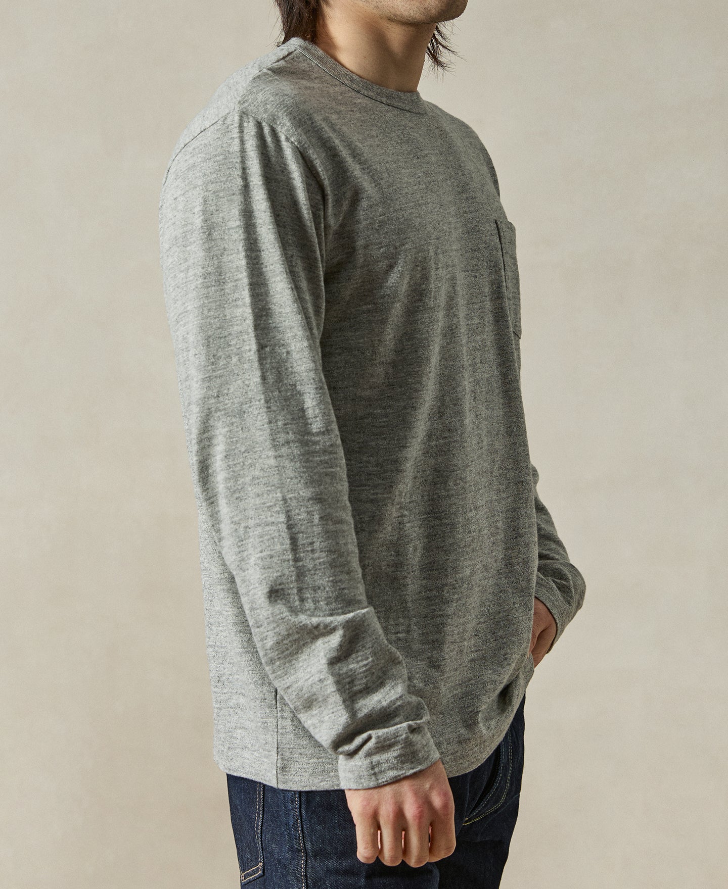 Crafted from 250 GSM slub cotton jersey with ring-spun yarn, this long sleeve pocket tee delivers a softer hand feel and breathable comfort. Designed for everyday wear, it features a single chest pocket, laid-back style, and reinforced durability with double-needle stitching at the hem and cuffs for a lasting shape.