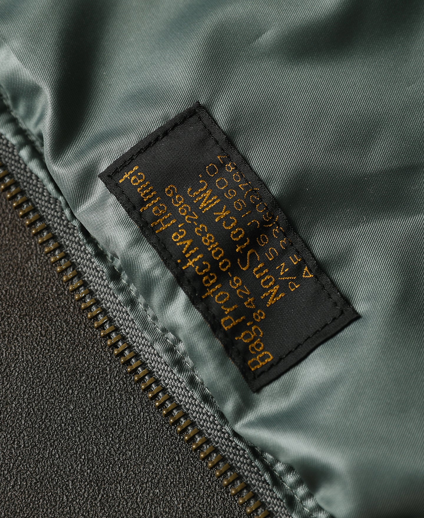 • This bag is inspired by helmet bags from the 1950s. It is crafted with highly waterproof nylon fabric on the shell, and polyester on the lining, internal stitching with quilted polyester sherpa fleece to provide cushioning.