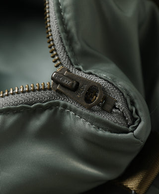 This bag is inspired by helmet bags from the 1950s. It is crafted with highly waterproof nylon fabric on the shell, and polyester on the lining, internal stitching with quilted polyester sherpa fleece to provide cushioning.