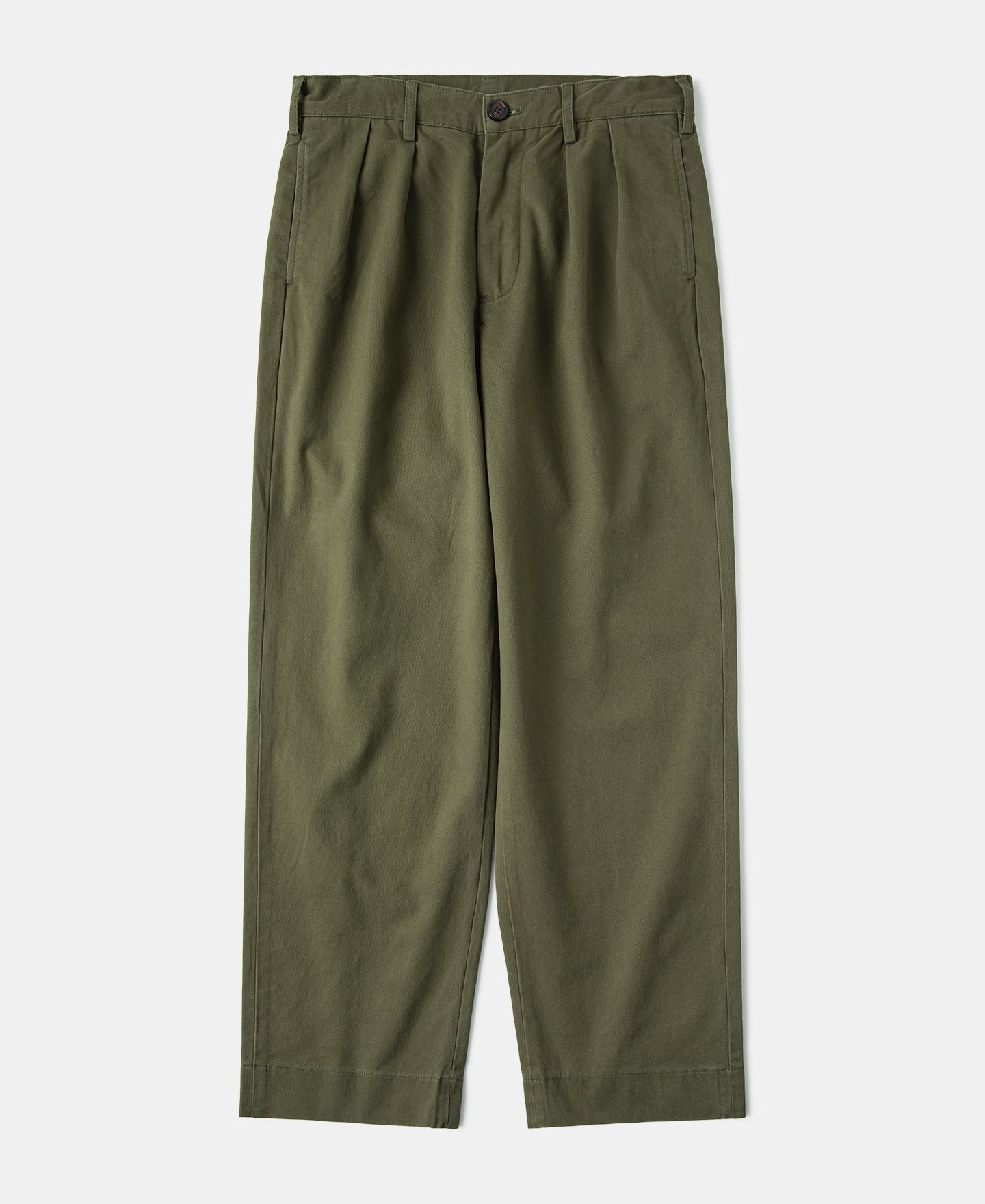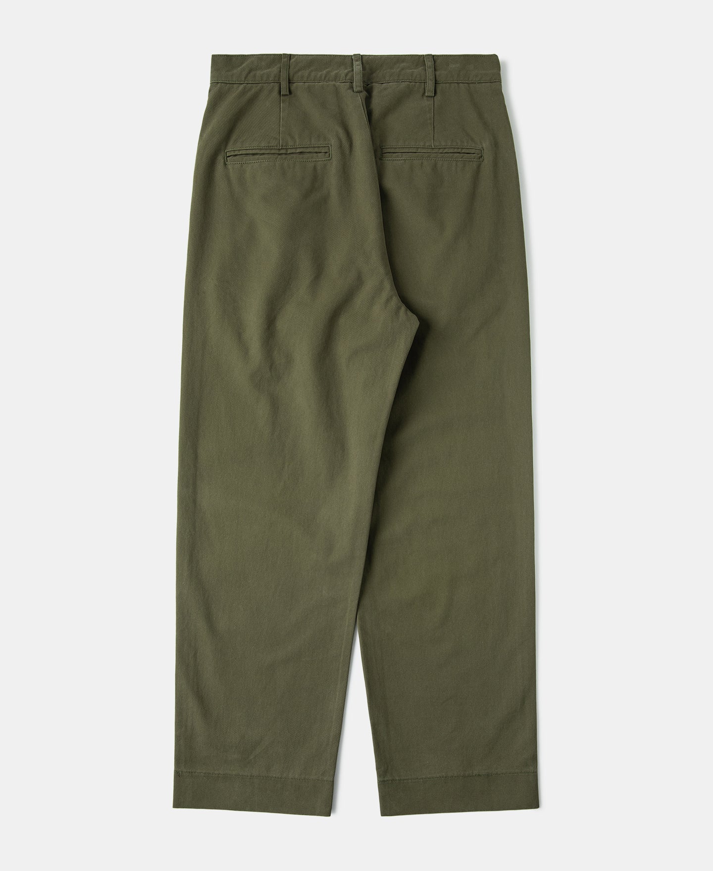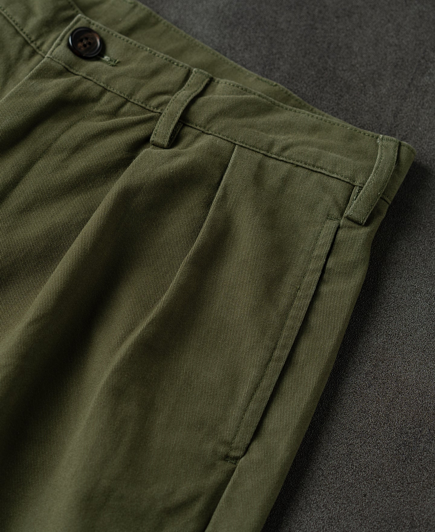 The 300 GSM cotton twill provides a substantial yet comfortable feel, while the double-pleat front adds structure and ease through the leg.