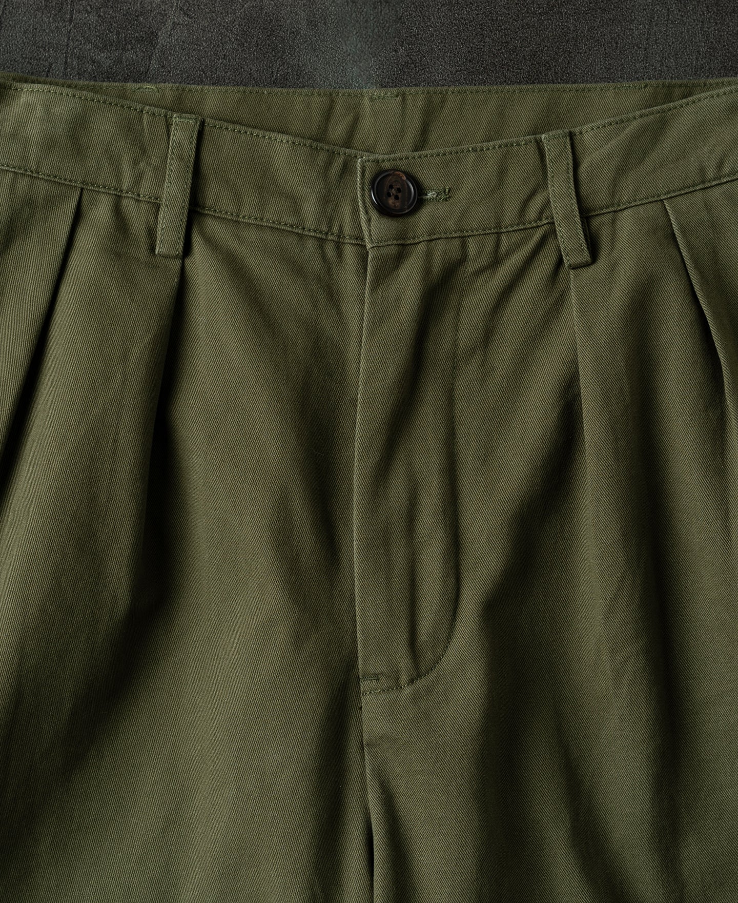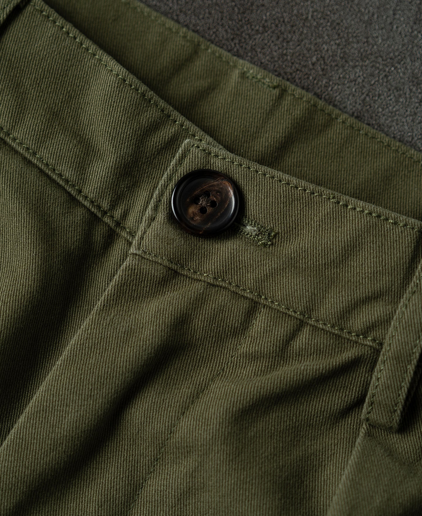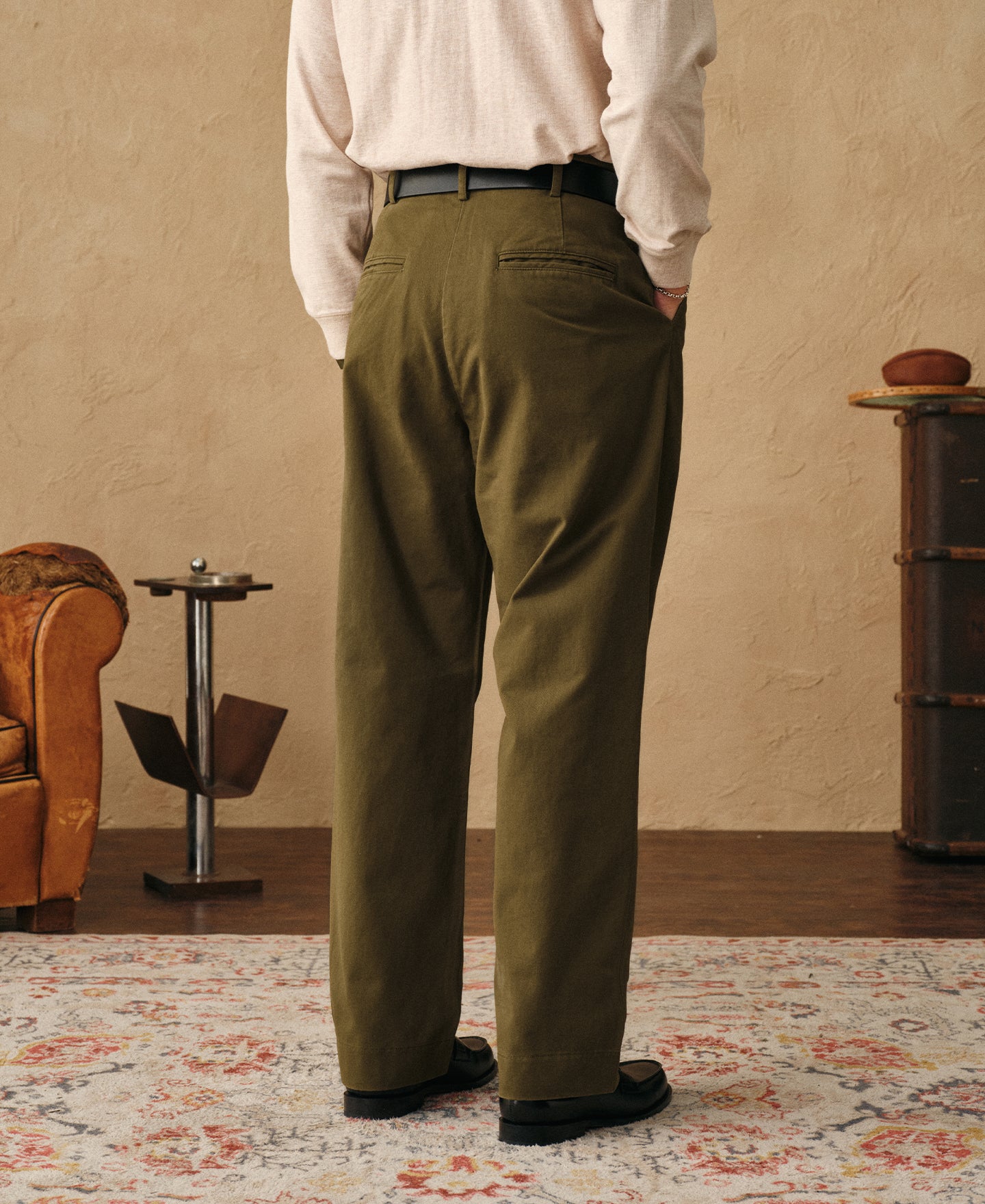 The 300 GSM cotton twill provides a substantial yet comfortable feel, while the double-pleat front adds structure and ease through the leg.