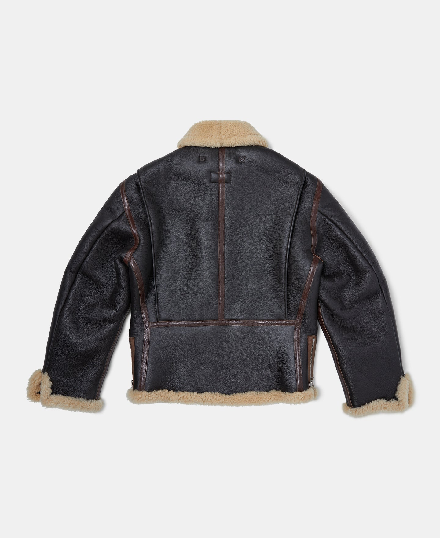 Produced in the 1940s, the Type B-6 was the streamlined variant of the Type B-3. With its single throat latch and slashed front pockets, the Type B-6 jacket is made from 1/4 inch shearling for warmth and mobility, and categorized in the ‘Intermediate Zone’ for flight clothing.Bronson Type B-6 jacket used veg-tanned sheepskin from New Zealand. We reproduced the original version completely.