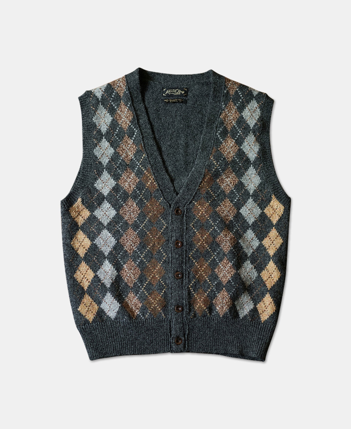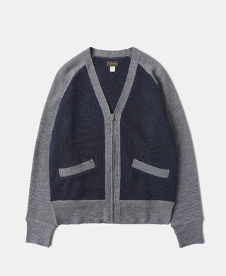 Lot 913 1940s Contrast Wool Cardigan - Navy/Gray
