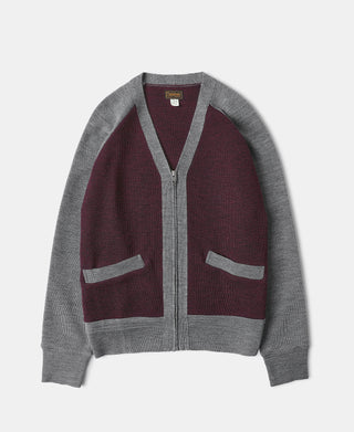 Lot 913 1940s Contrast Wool Cardigan - Wine Red/Gray