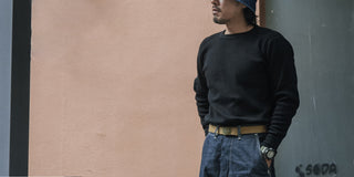 1930s 10.5 oz Cotton Loopwheel Tubular Henley Shirt - Black