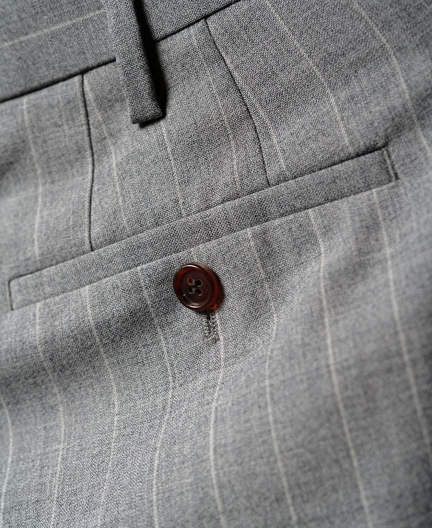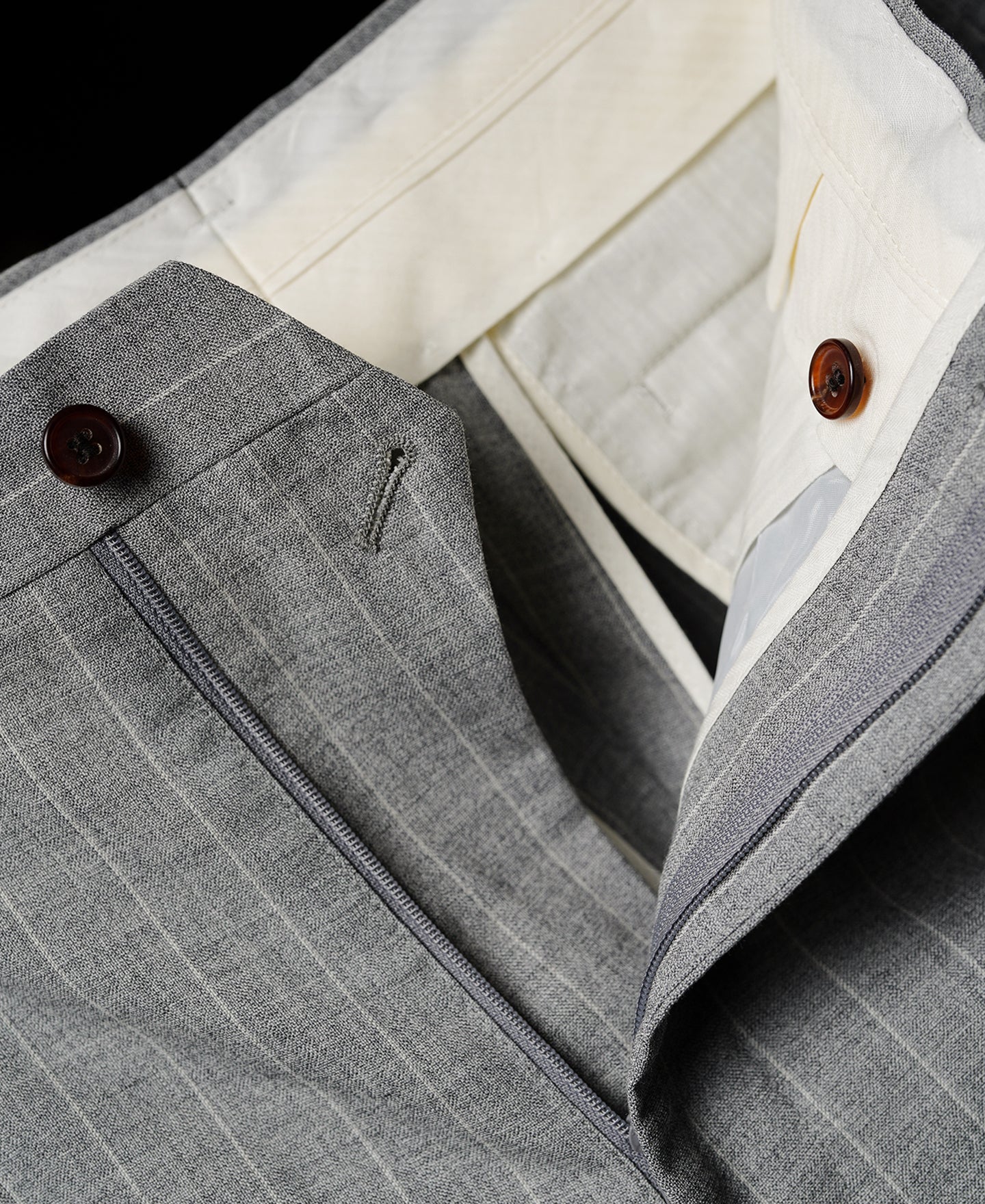 Offering both skin-friendly comfort and a sharp silhouette, these trousers are finished with refined details including hand-sewn buttons and custom YKK color-matched zippers.