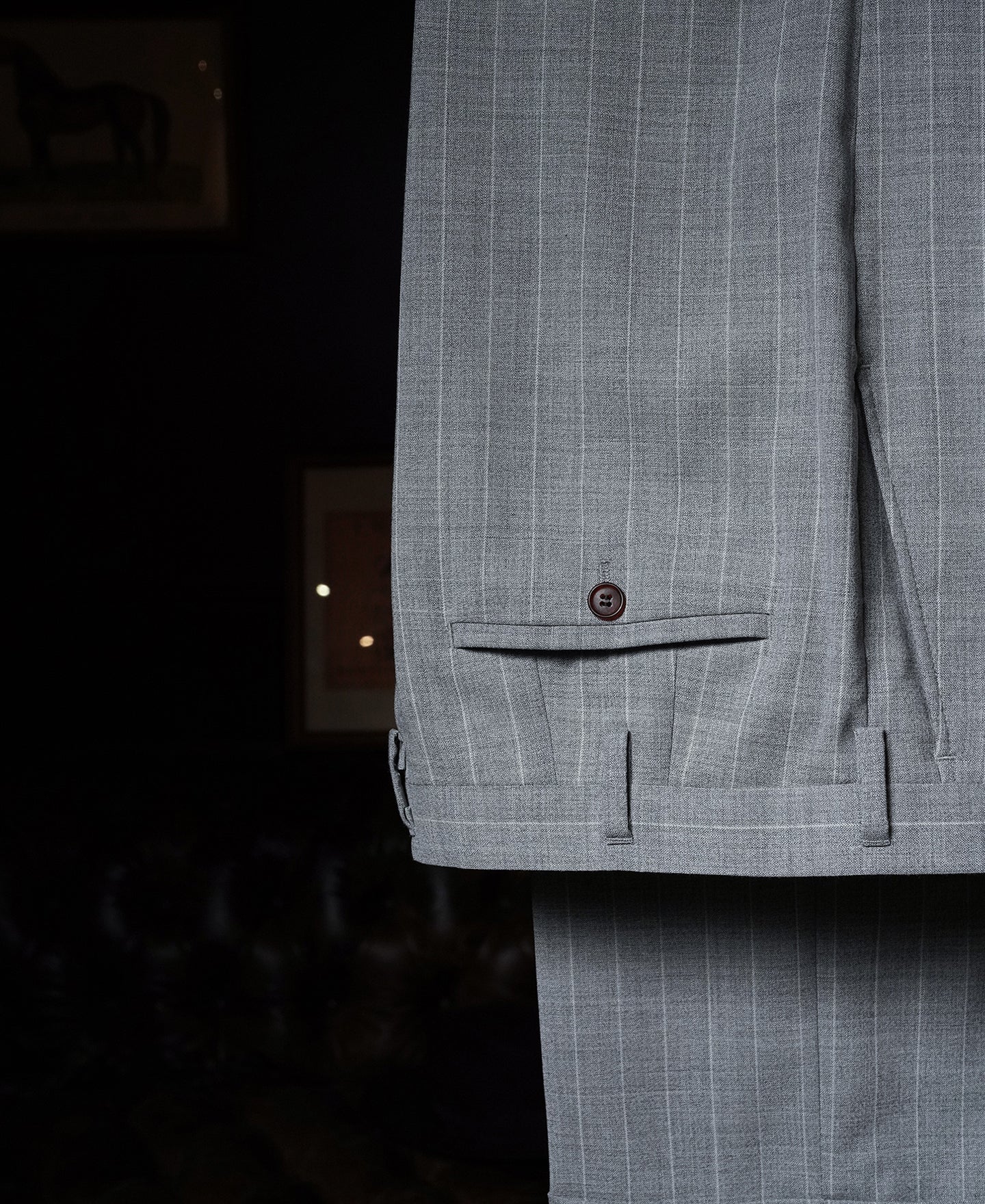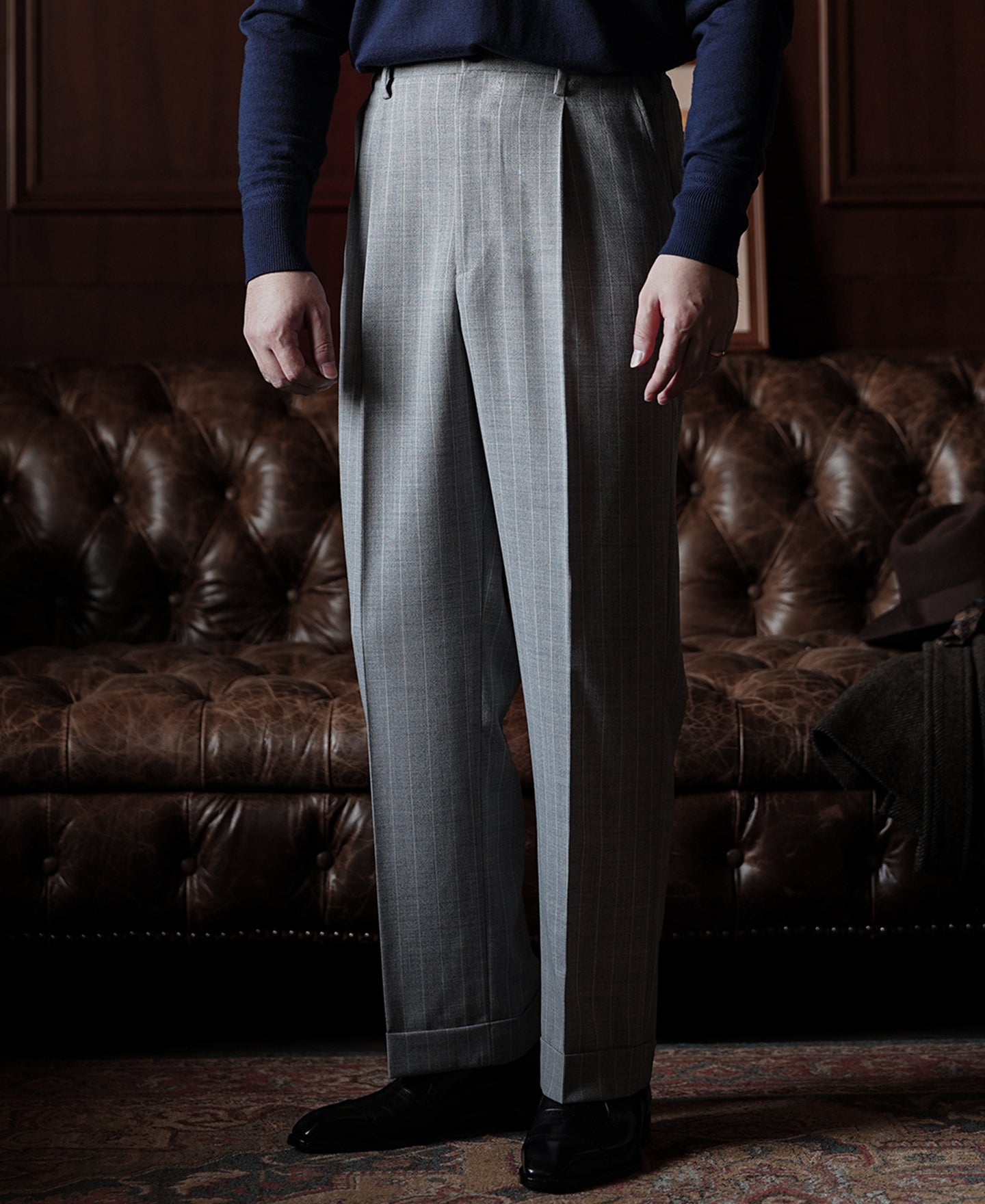 Inspired by 1940s American tailoring, these trousers are crafted from the same 100% Australian 300g worsted wool as their matching jacket. The fabric features a two-ply, high-twist weave that provides excellent wrinkle resistance and a graceful drape.