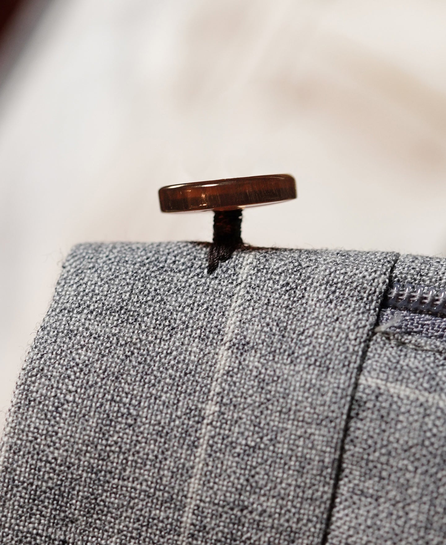 Offering both skin-friendly comfort and a sharp silhouette, these trousers are finished with refined details including hand-sewn buttons and custom YKK color-matched zippers. -