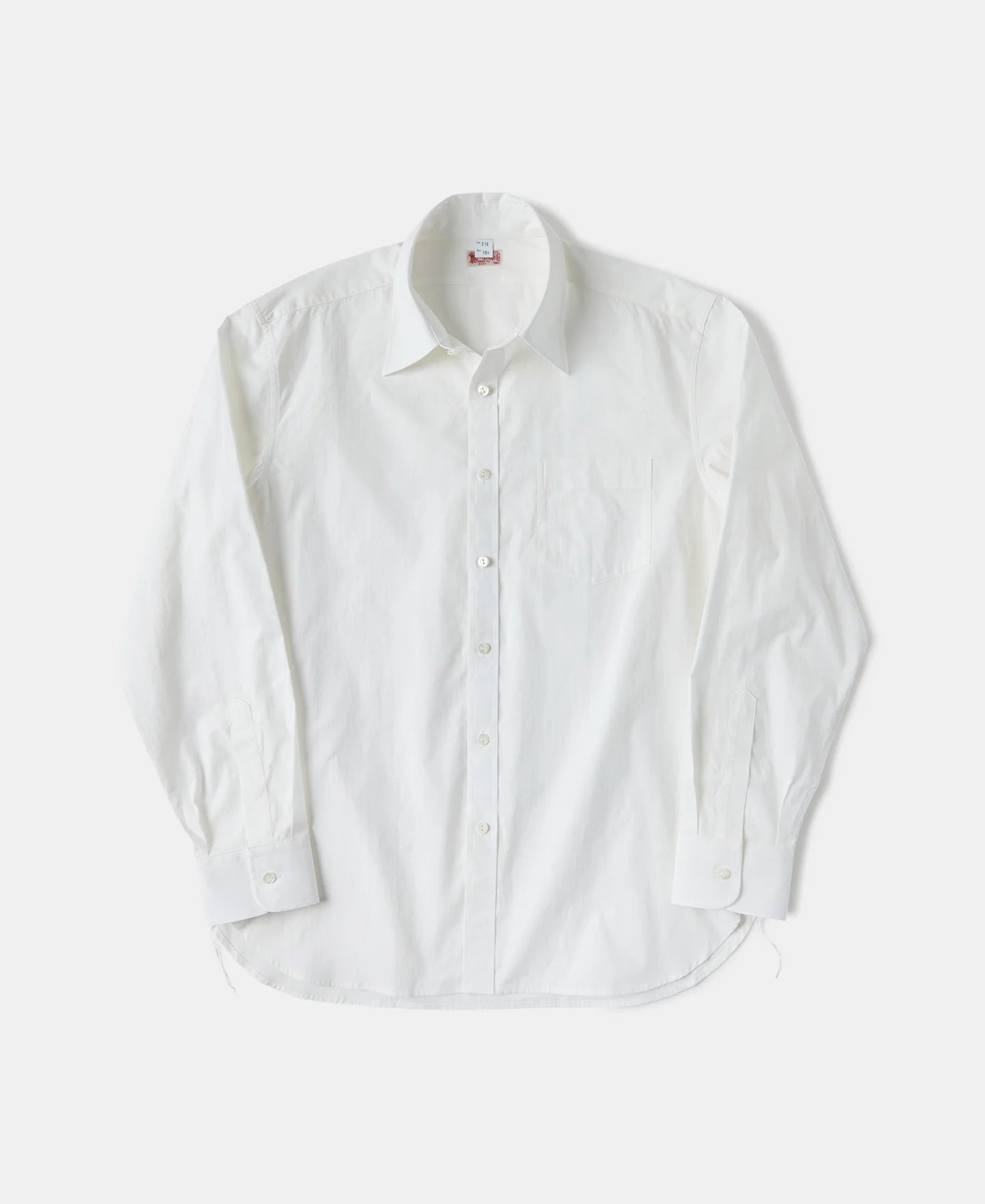 This shirt is based on a 1930s design. It features a classic point collar, a pointed single chest pocket, and a signature half-moon reinforcement patch across the back shoulders — iconic elements of early dress shirts.