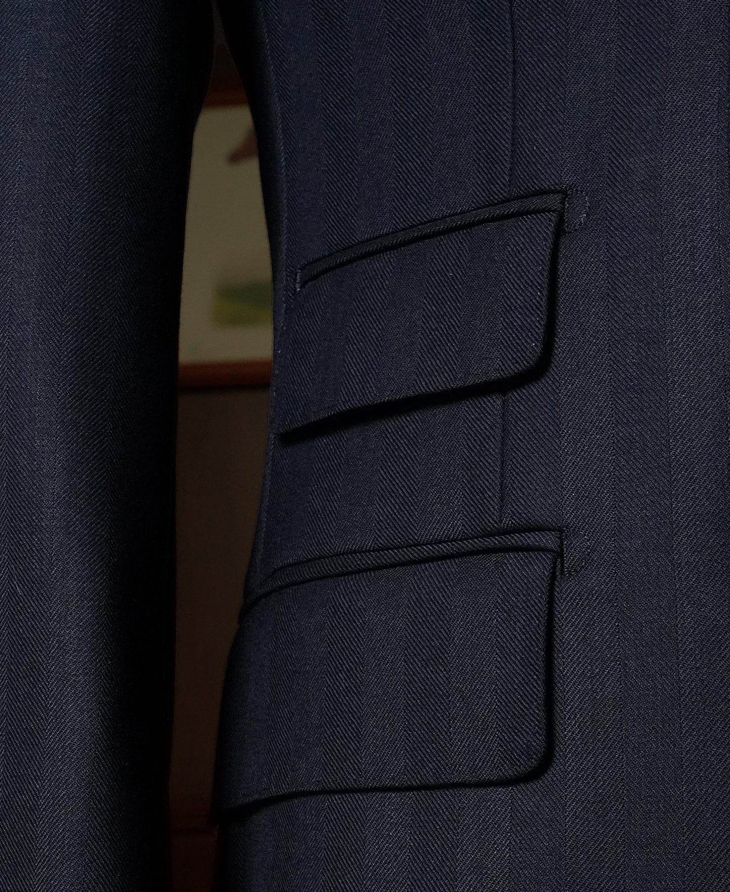 - Body: 70% wool, 30%Polyester, 360g fine worsted herringbone fabric.