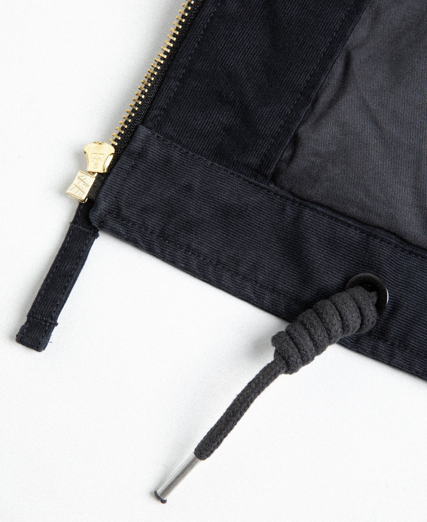 Cut in a regular fit, it features a cotton drawstring hem for adjustability and subtle reinforcement stitching throughout — balancing military toughness with everyday wearability. -