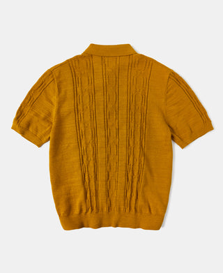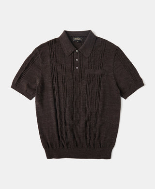 Retro Knitted Jacquard Polo Shirt - Vintage Olive