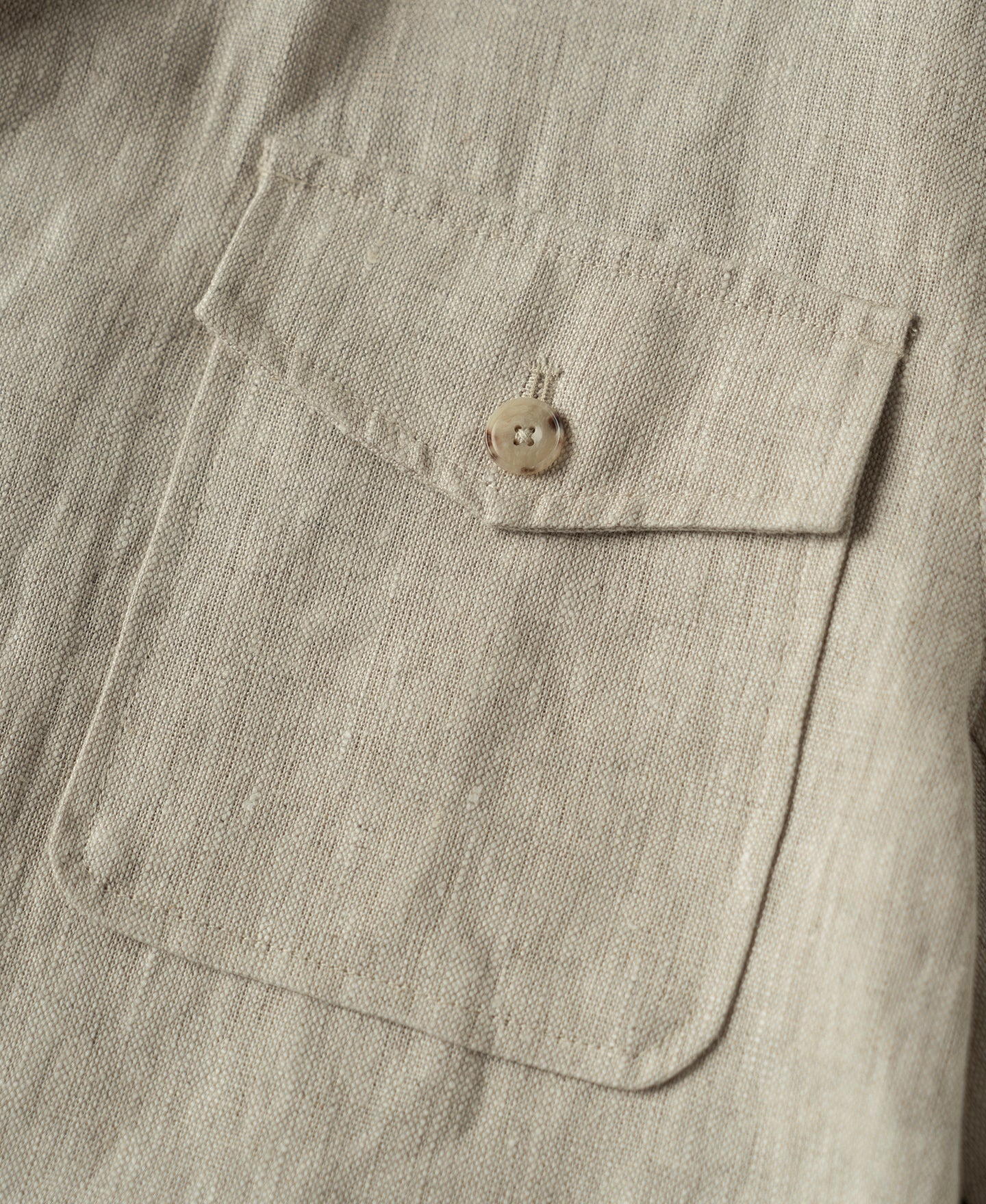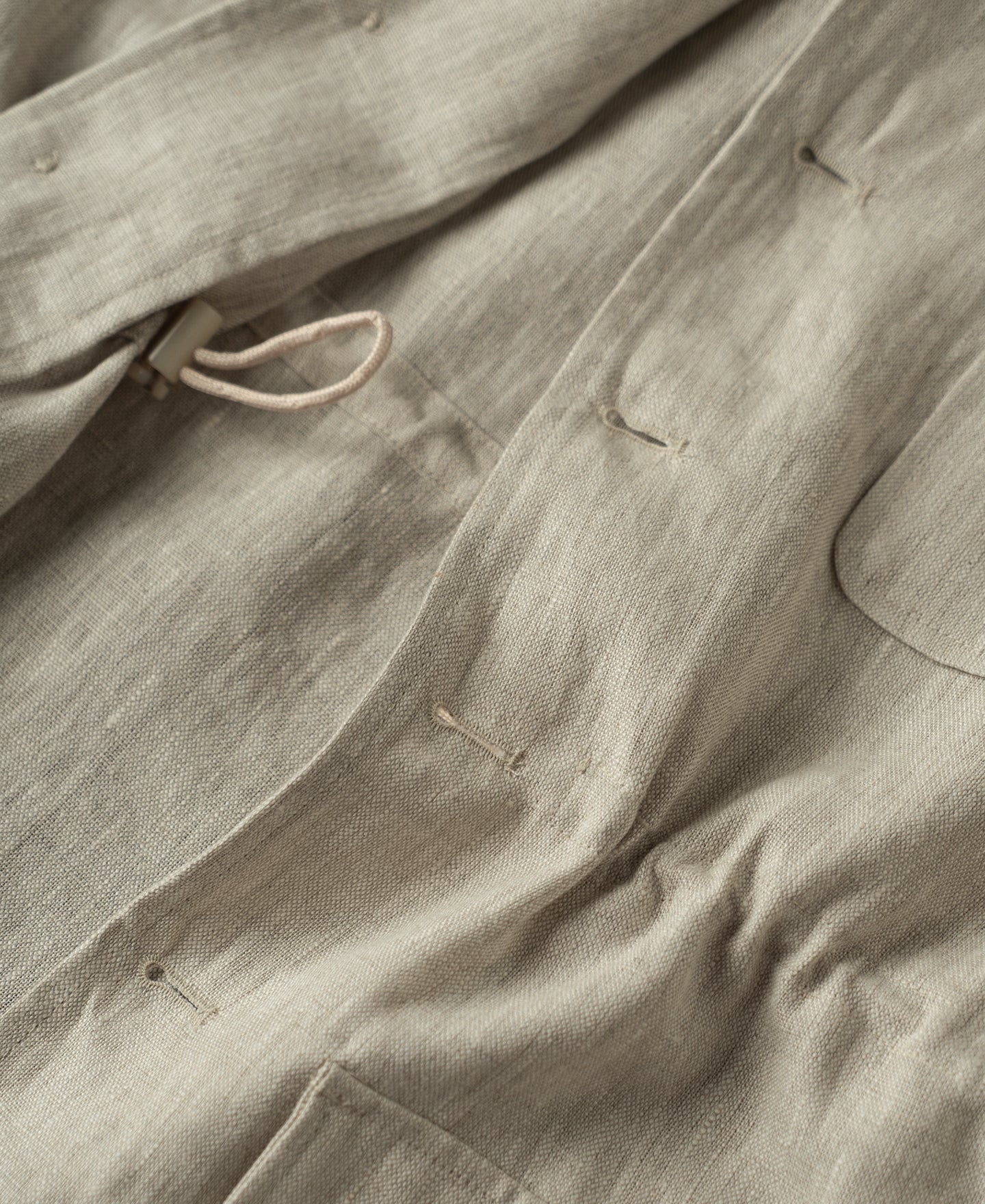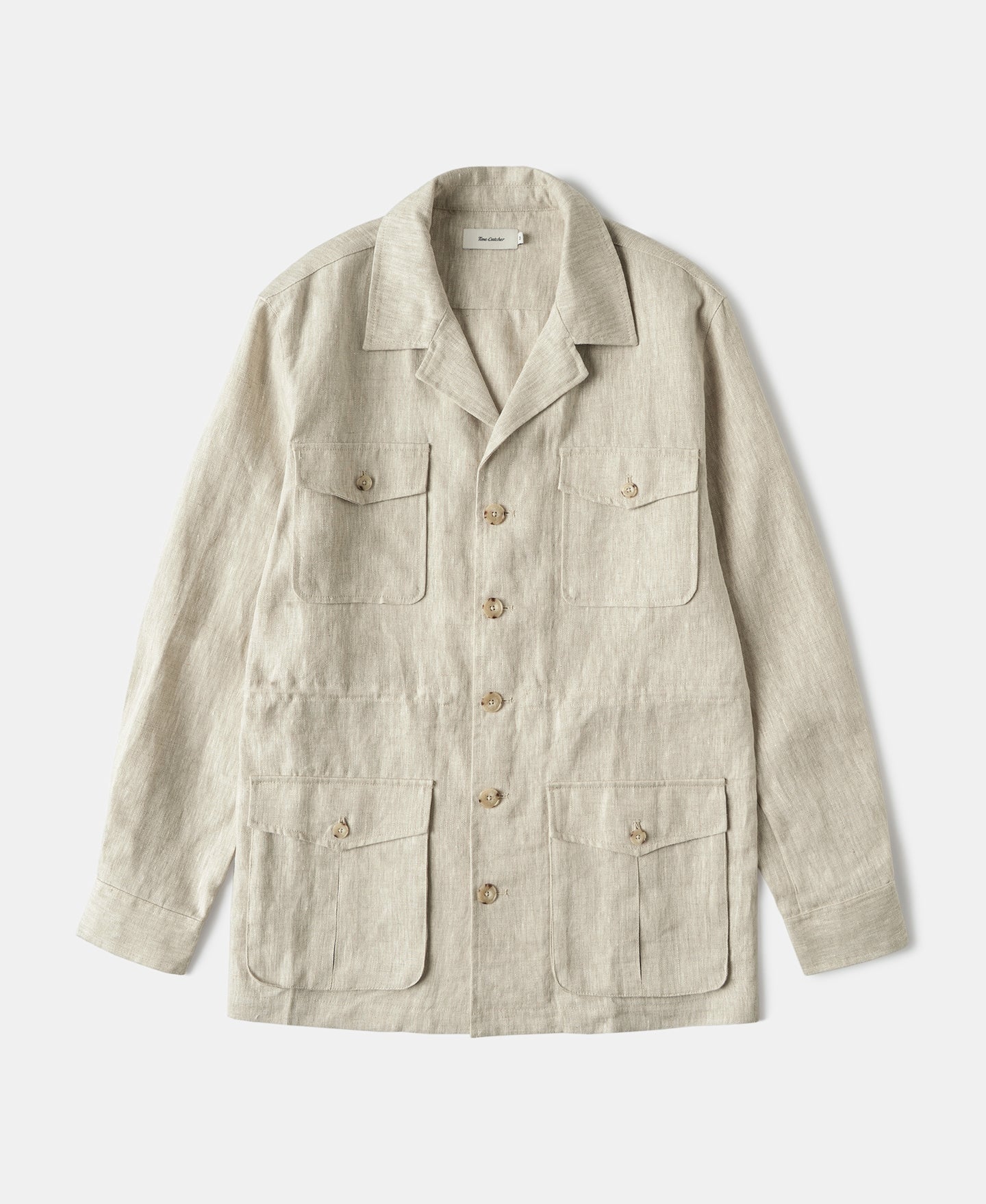 Crafted from 240 GSM pure linen in a natural tone, this jacket features a classic safari silhouette with a point collar and button-front closure. Lightweight yet structured, it offers a timeless, rugged character.