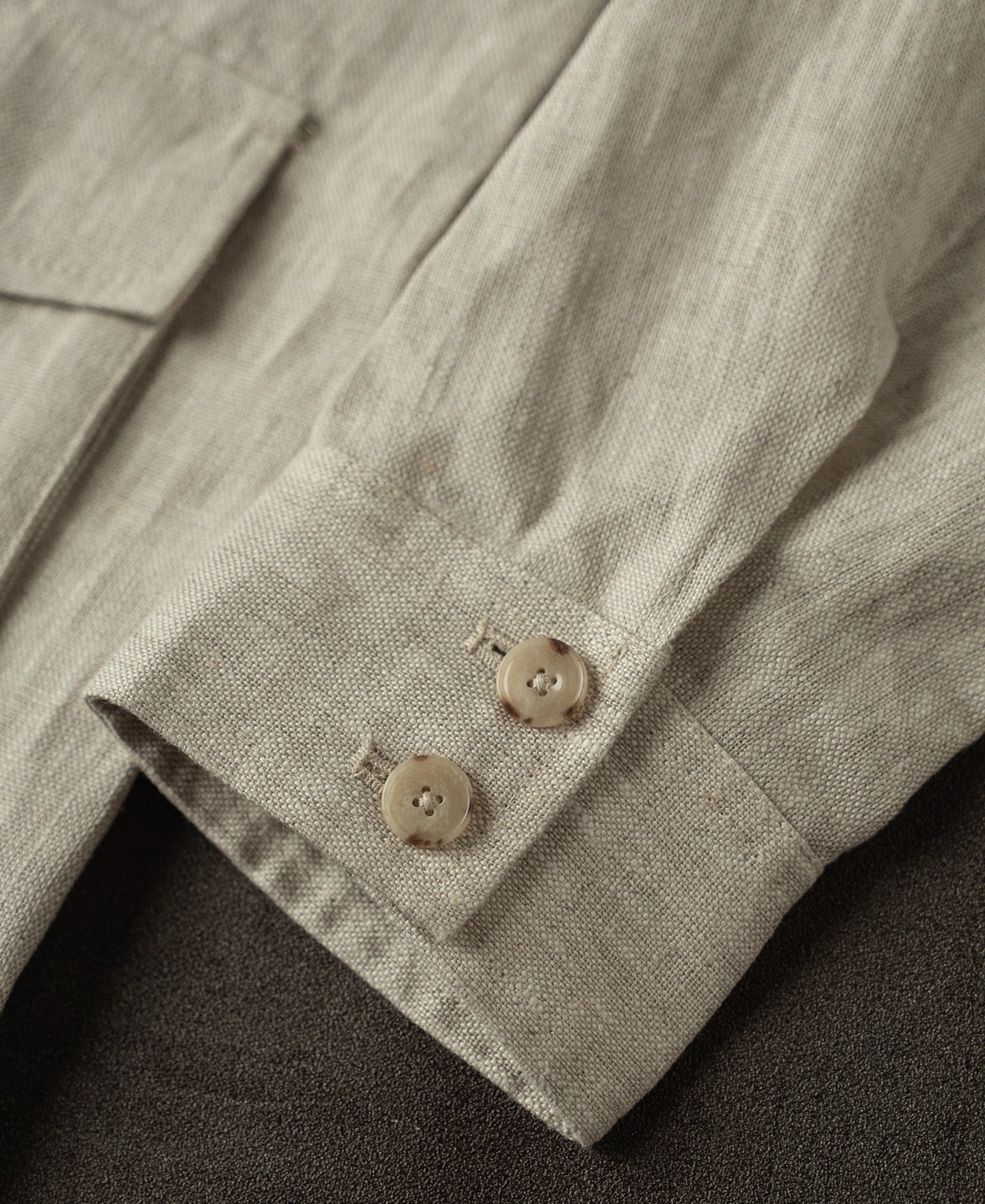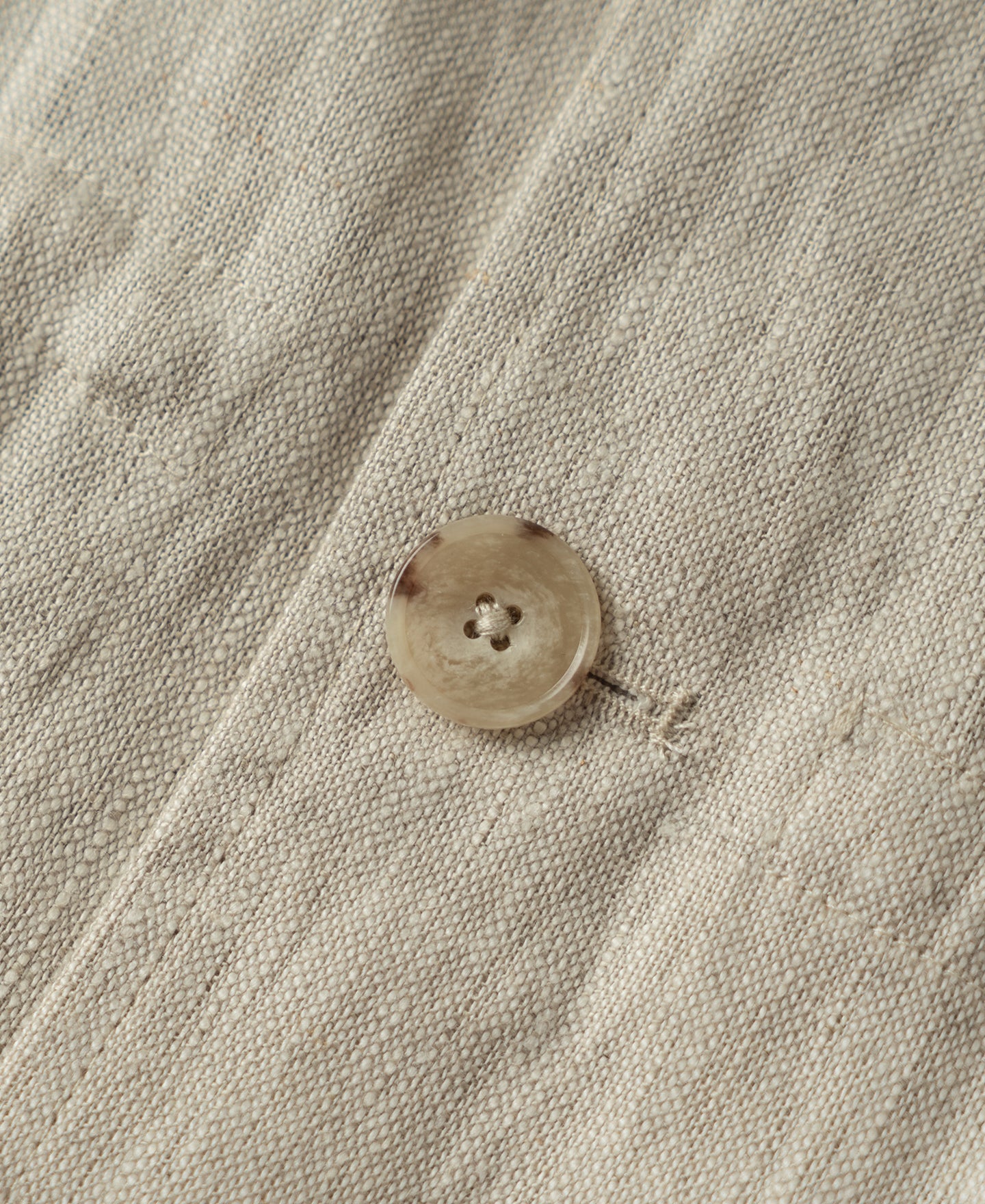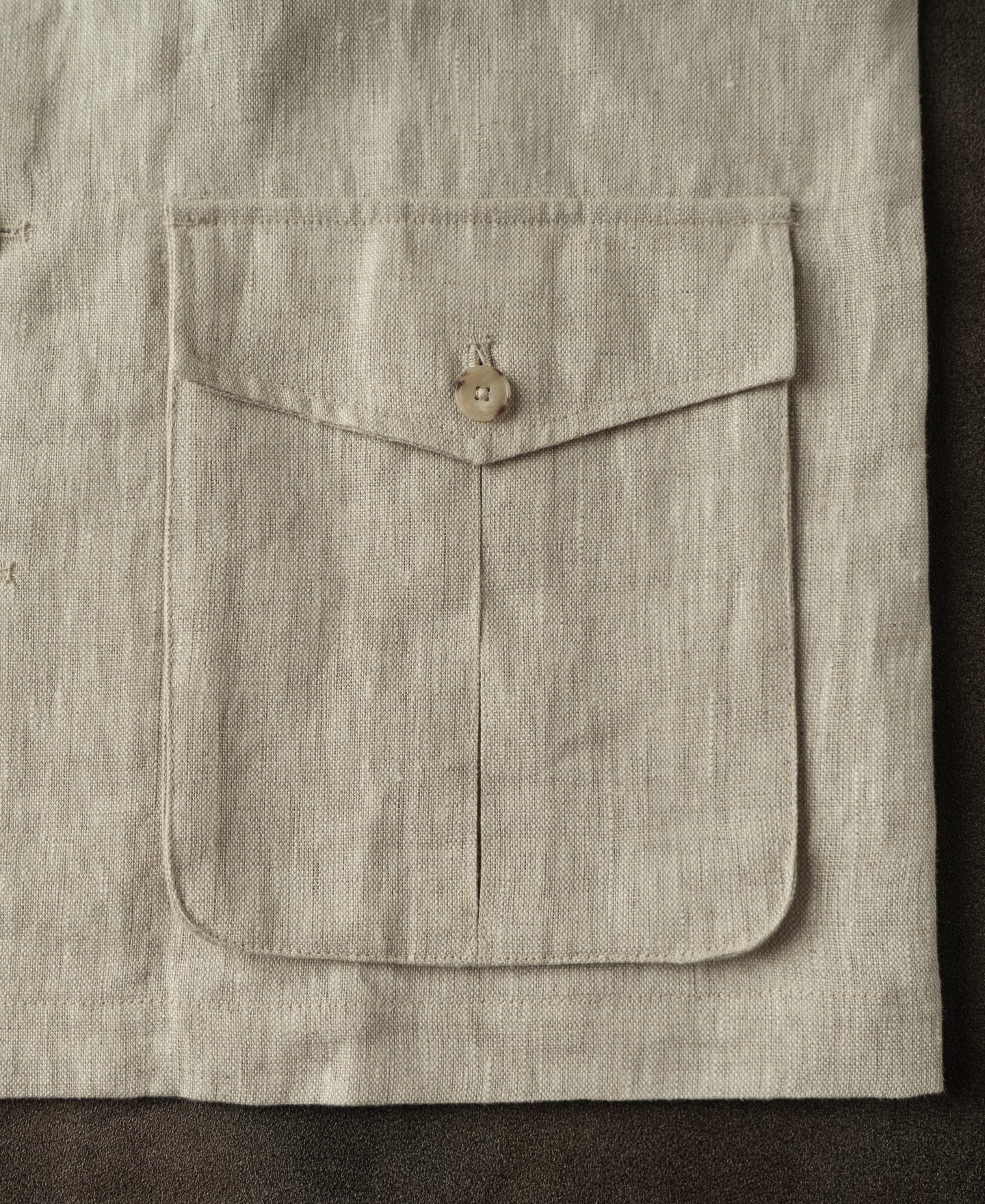 Crafted from 240 GSM pure linen in a natural tone, this jacket features a classic safari silhouette with a point collar and button-front closure. Lightweight yet structured, it offers a timeless, rugged character.