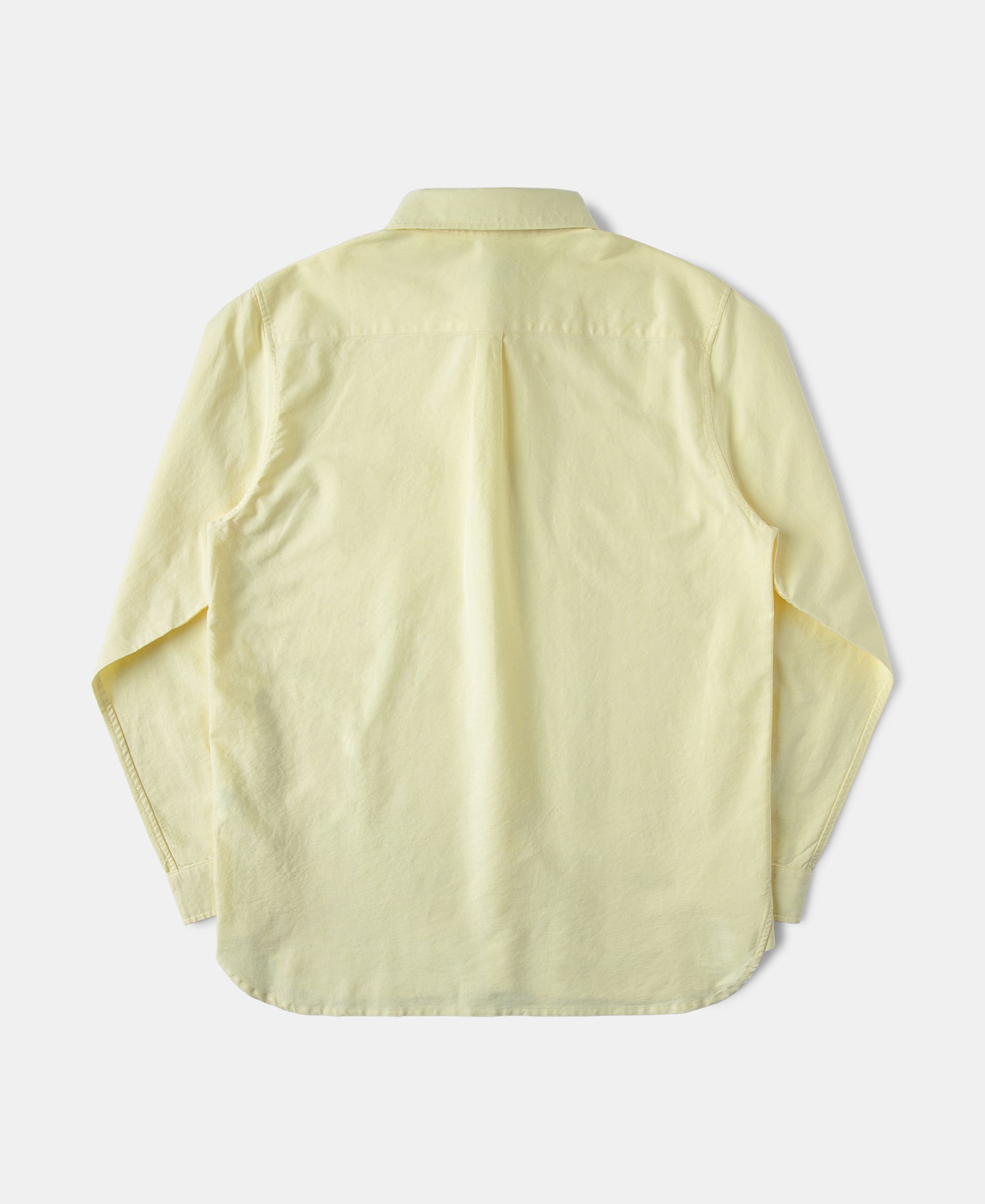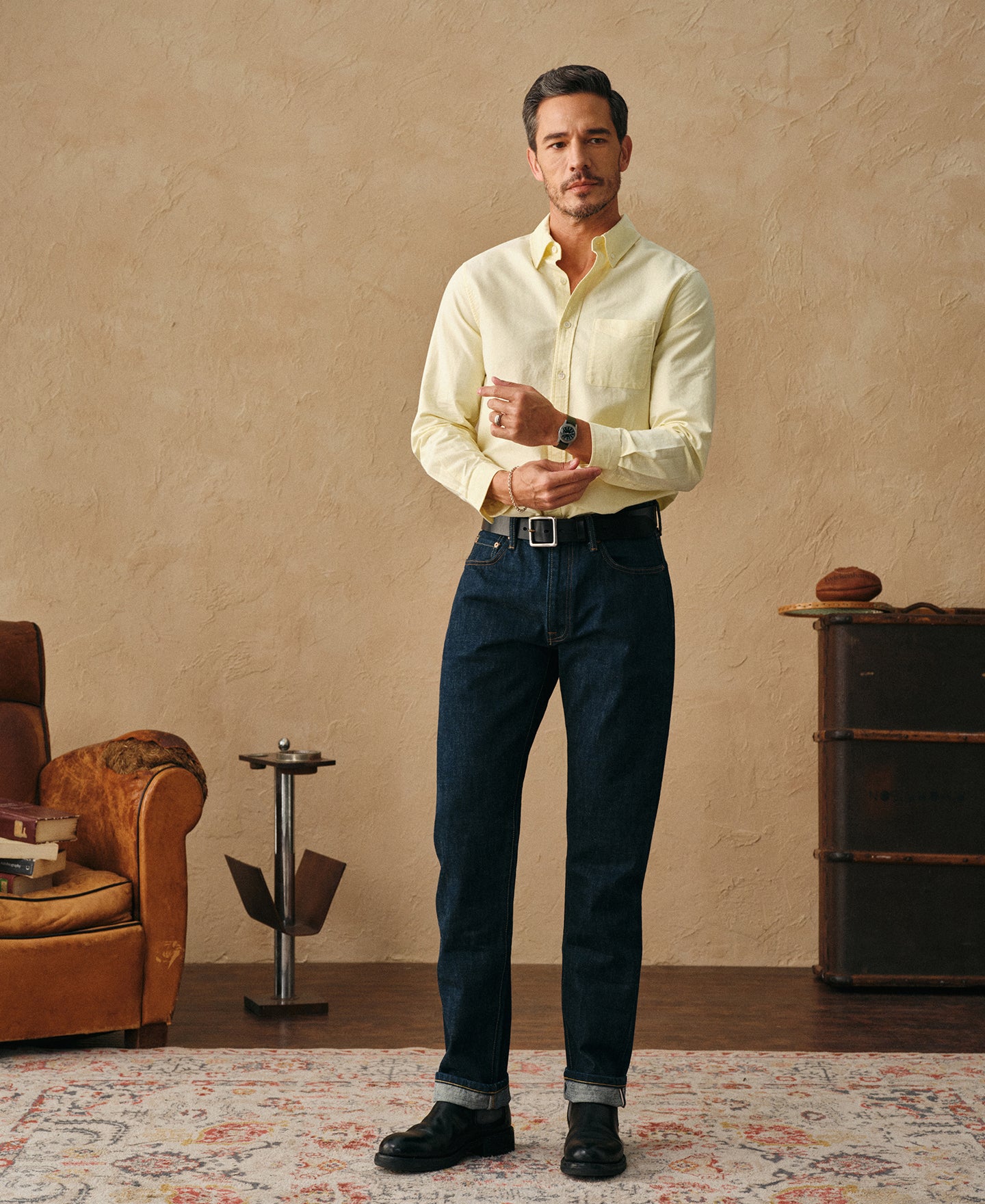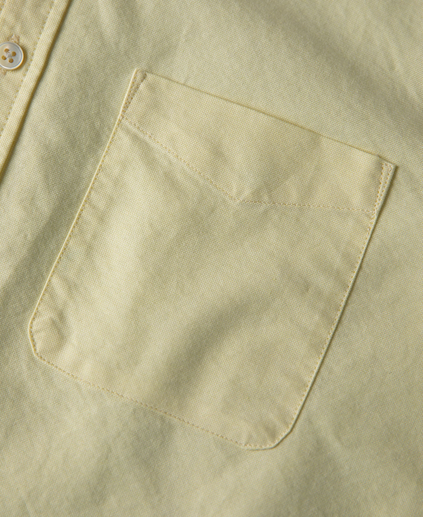 The Ivy League-inspired shirt offers a classic fit, featuring a button-down collar and a single chest pocket, both detailed with elegant mother-of-pearl buttons. A gentle garment wash enhances its softness, giving it a relaxed, broken-in feel from day one.