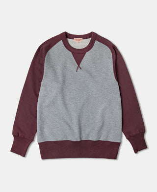 14 oz Contrast-Tipped Loopwheel Crewneck Sweatshirt - Red/Gray