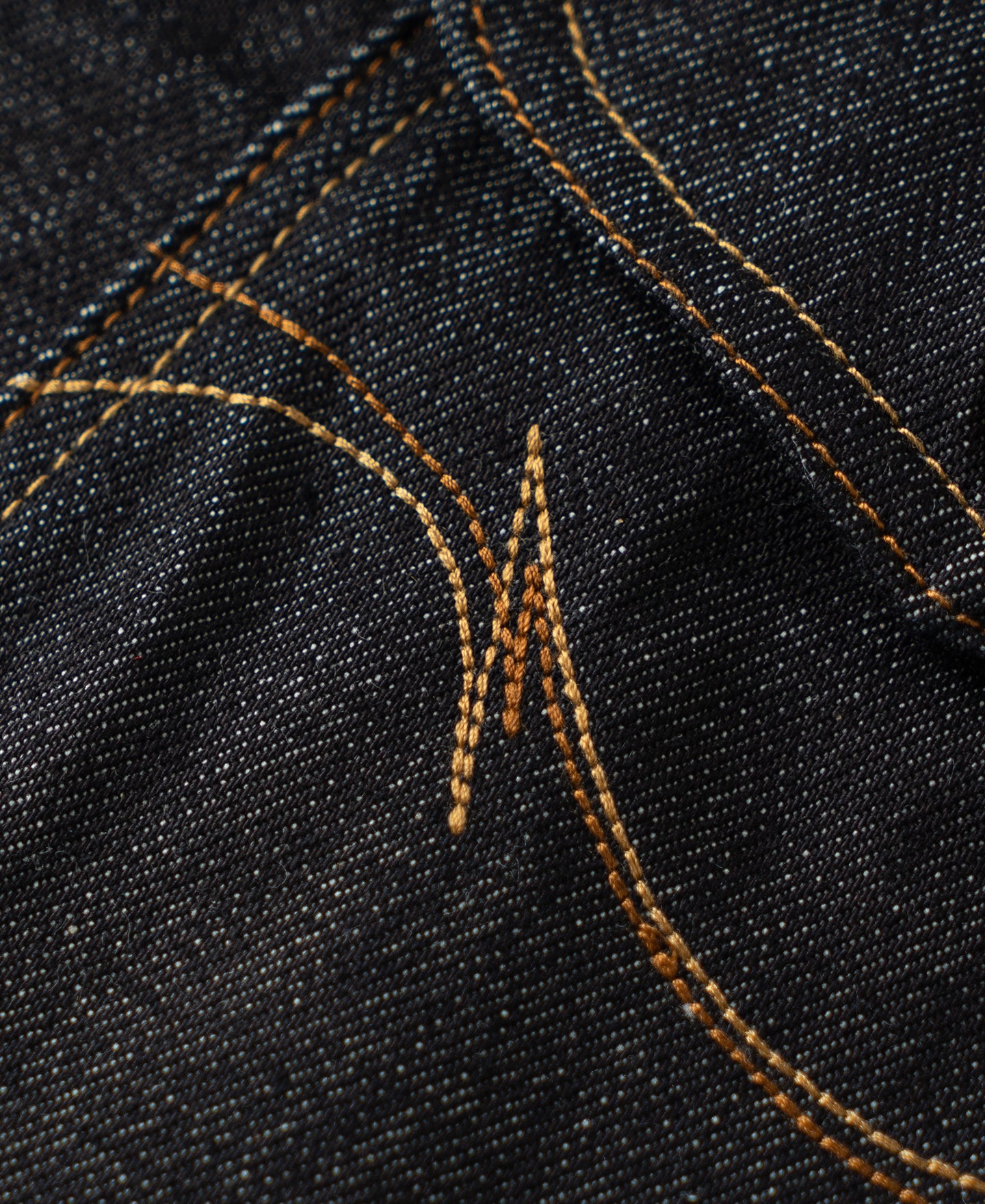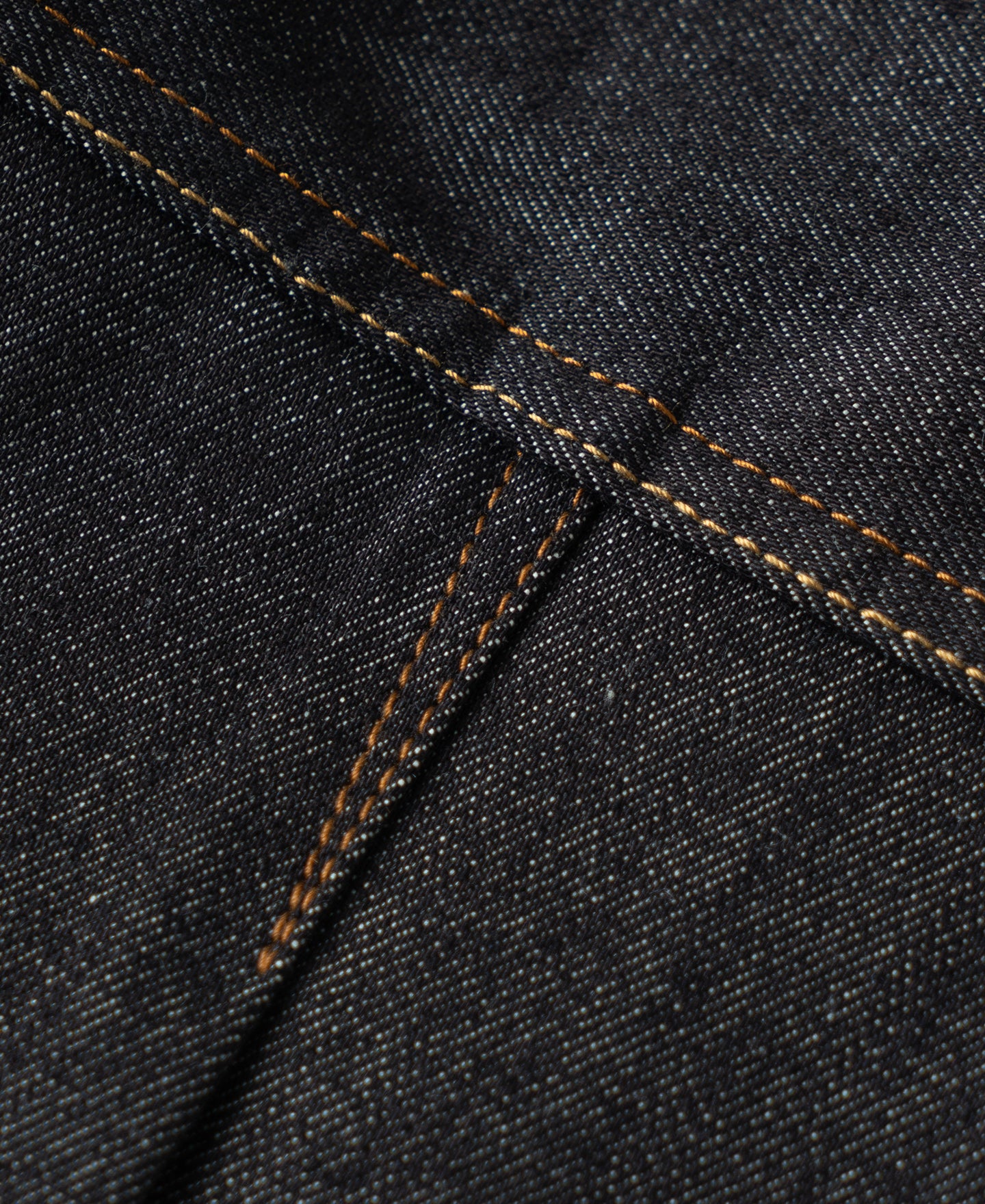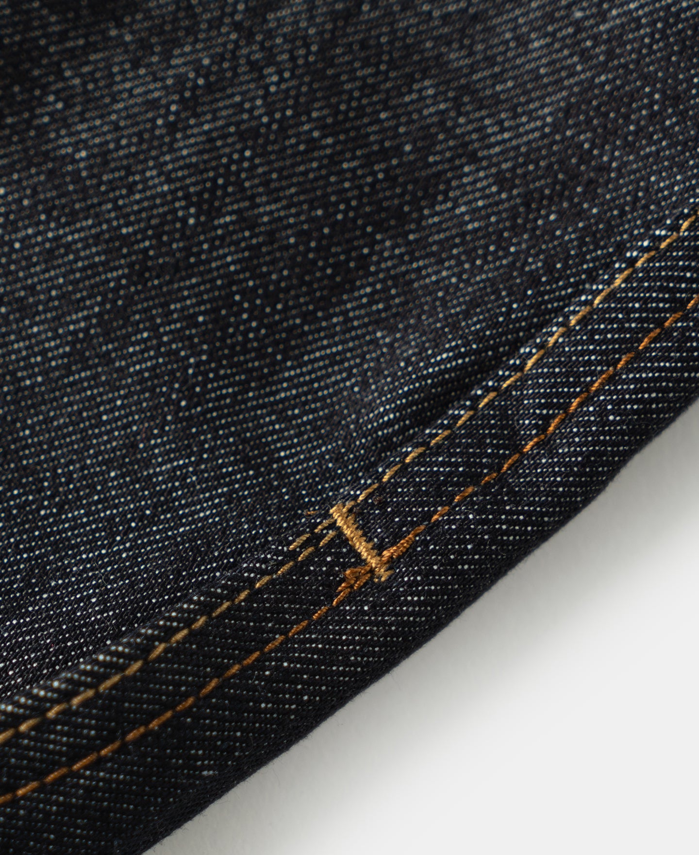 - 15.5oz selvedge denim fabric woven on vintage looms, desizing process.