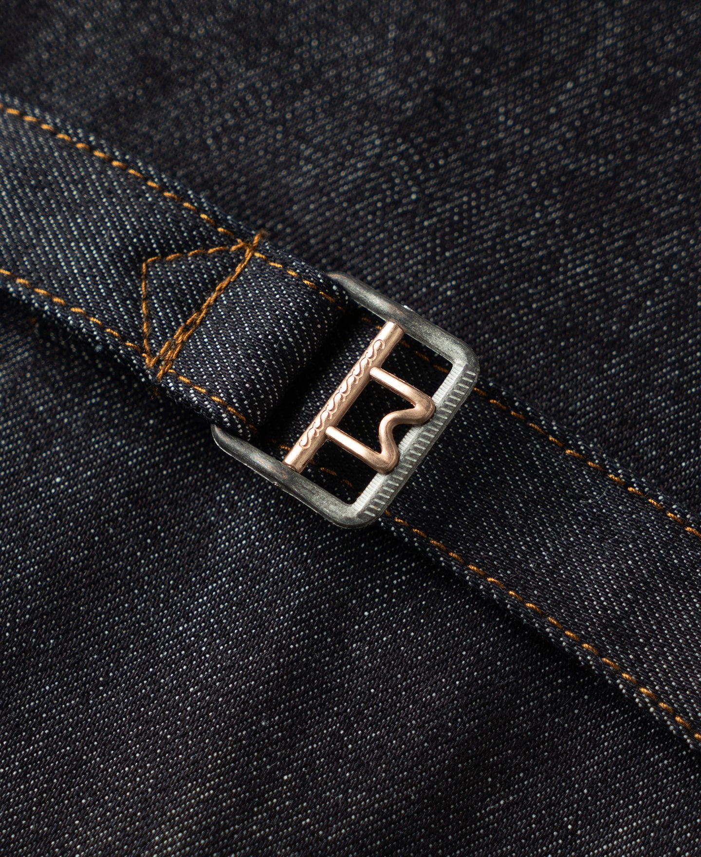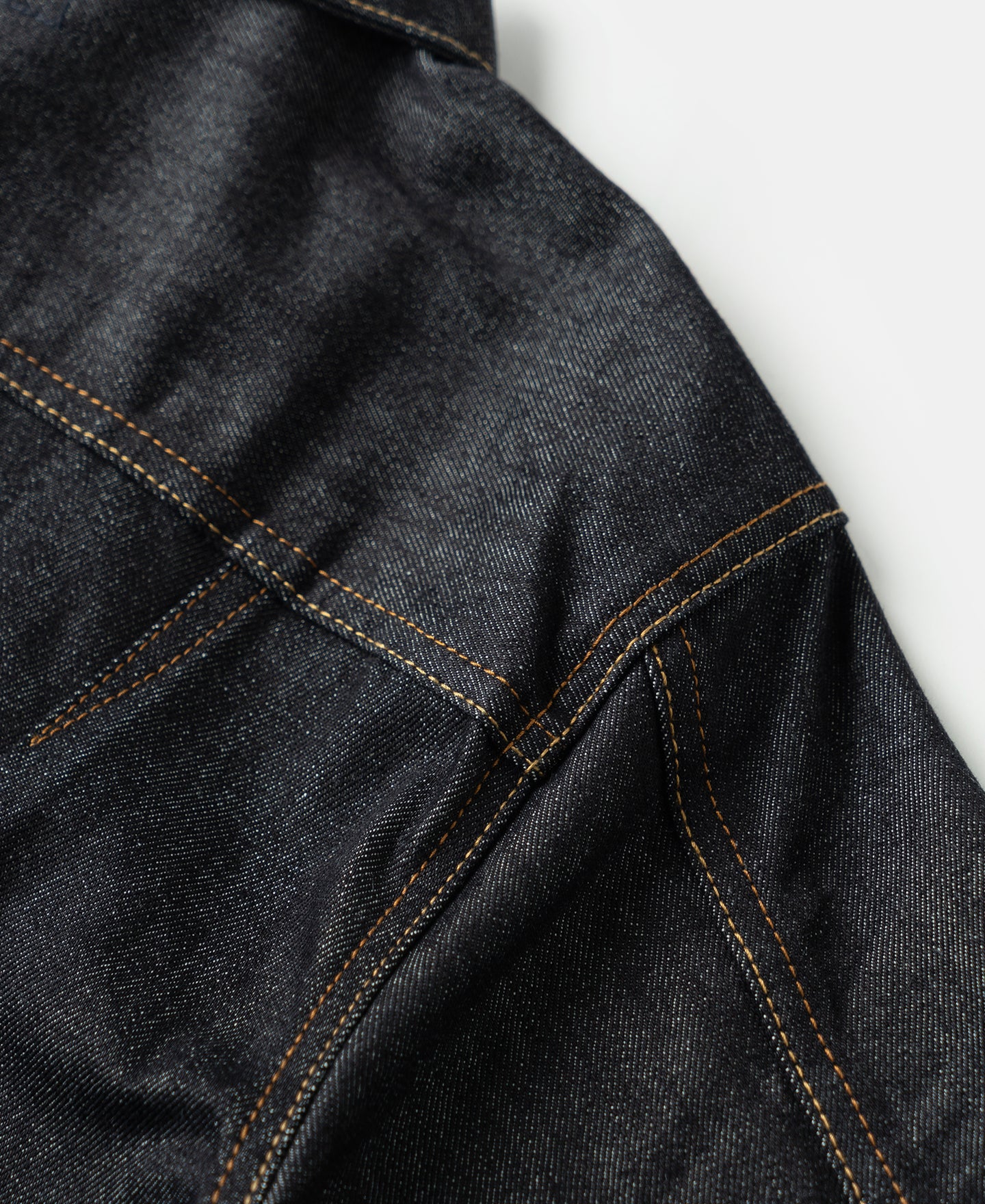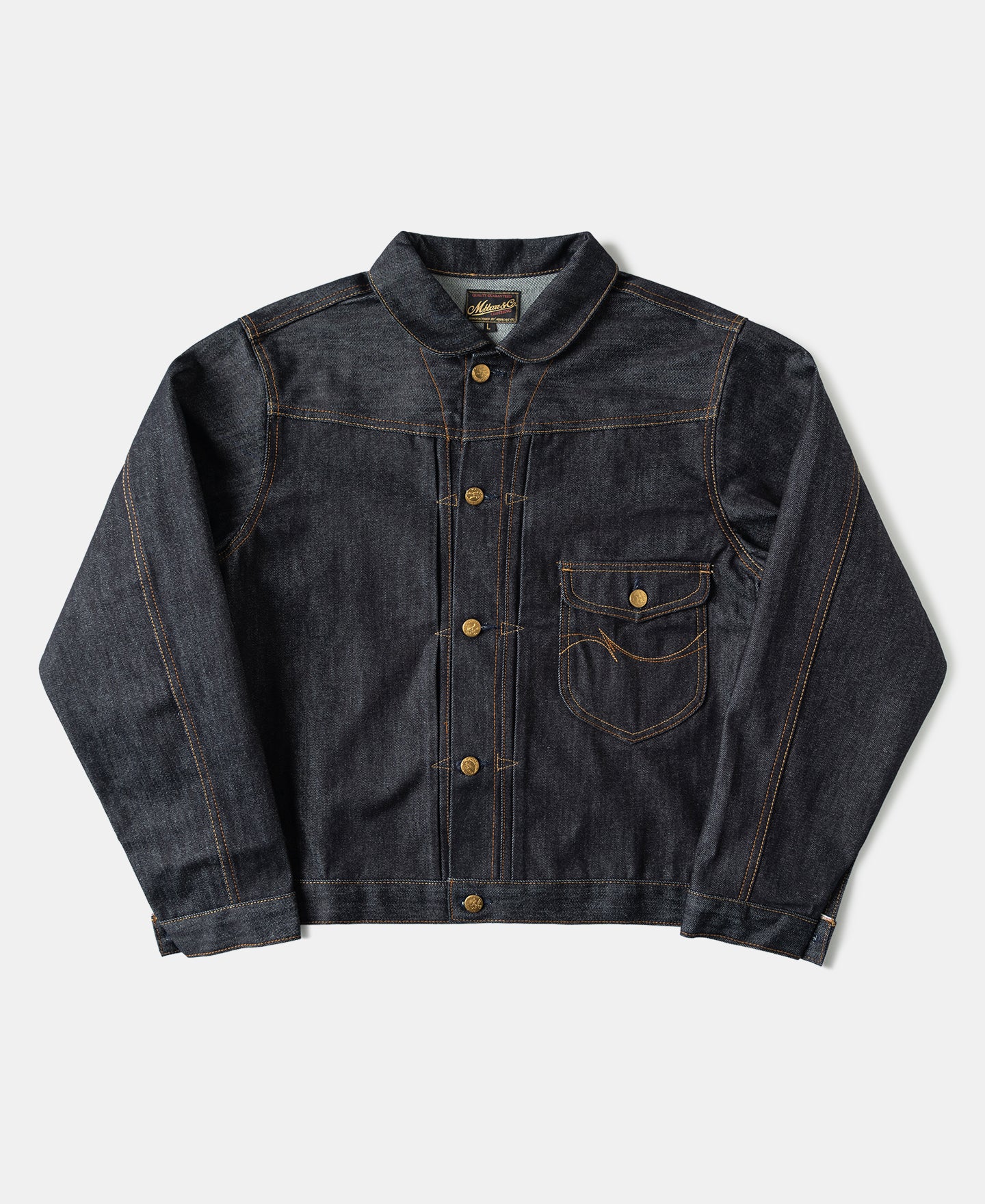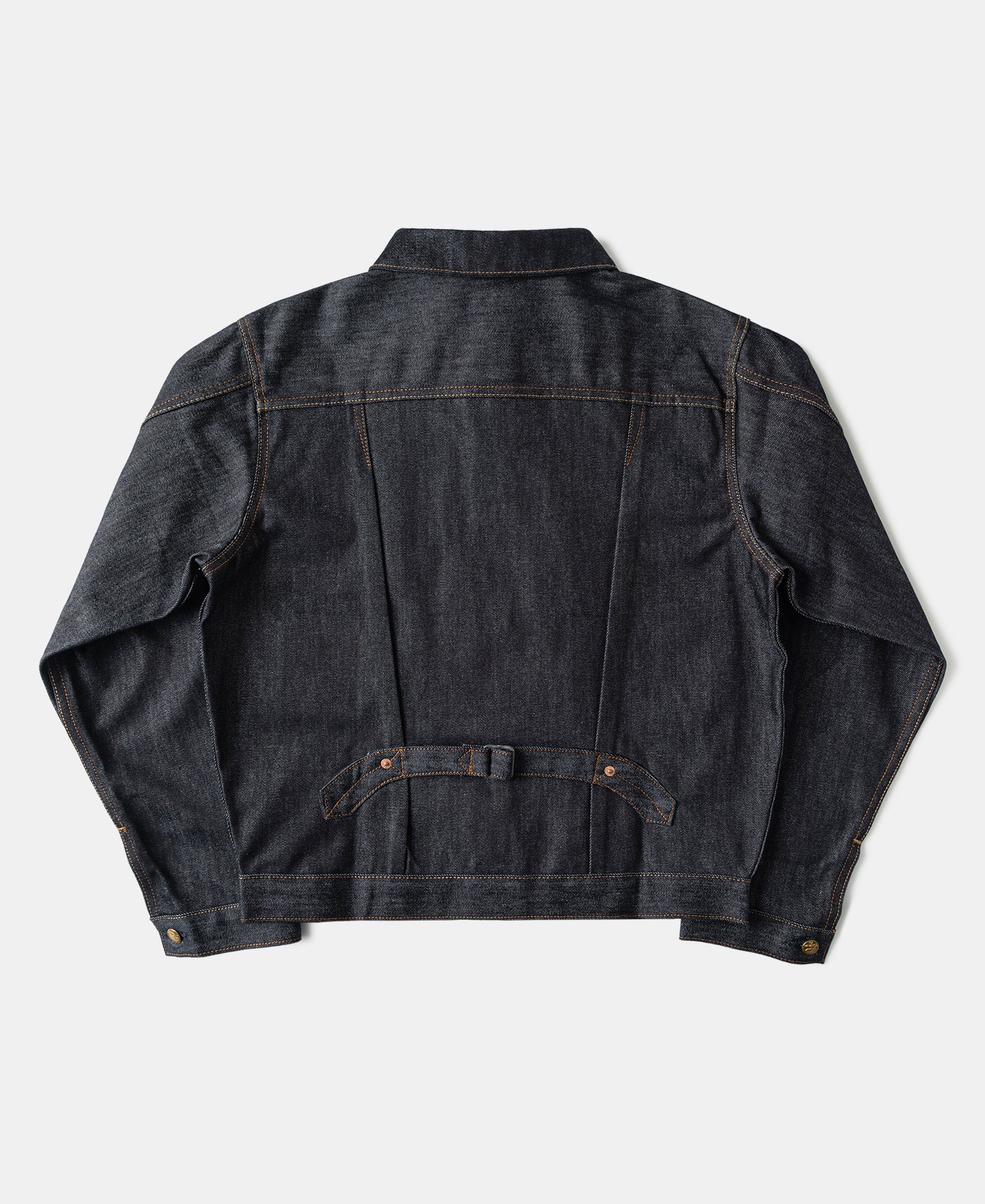 This jacket is inspired by the iconic Type 1 jacket silhouette as its base pattern, featuring a shorter, boxier cut with a clean, upright profile. It’s crafted from 15.5oz antique loom selvedge denim that has been desized for a softer hand and broken-in comfort right from the start. The fabric is finished with Siro-spun rope-dyeing, giving it a crisp texture and deep, vintage-inspired grain that grows character with every wear.