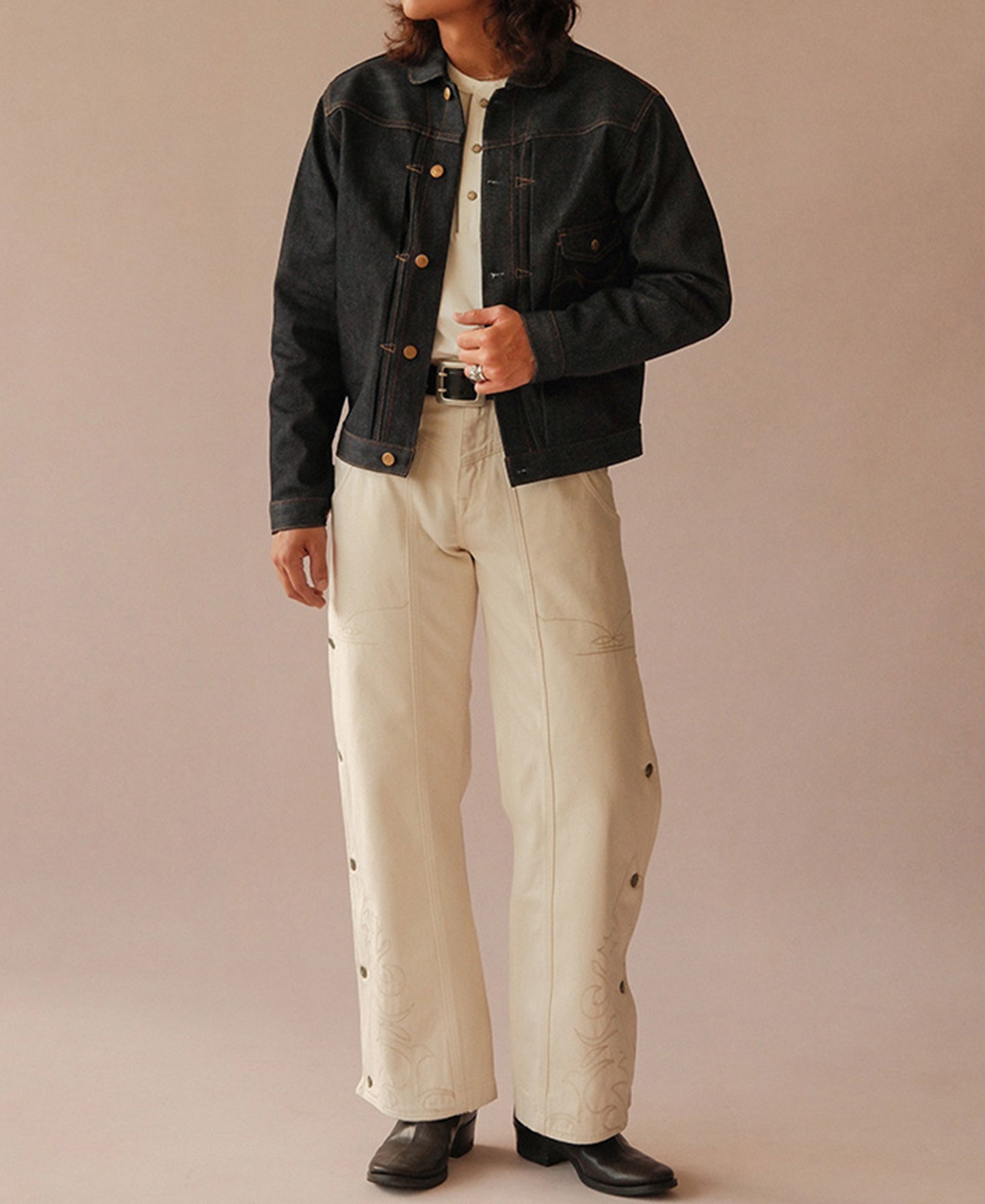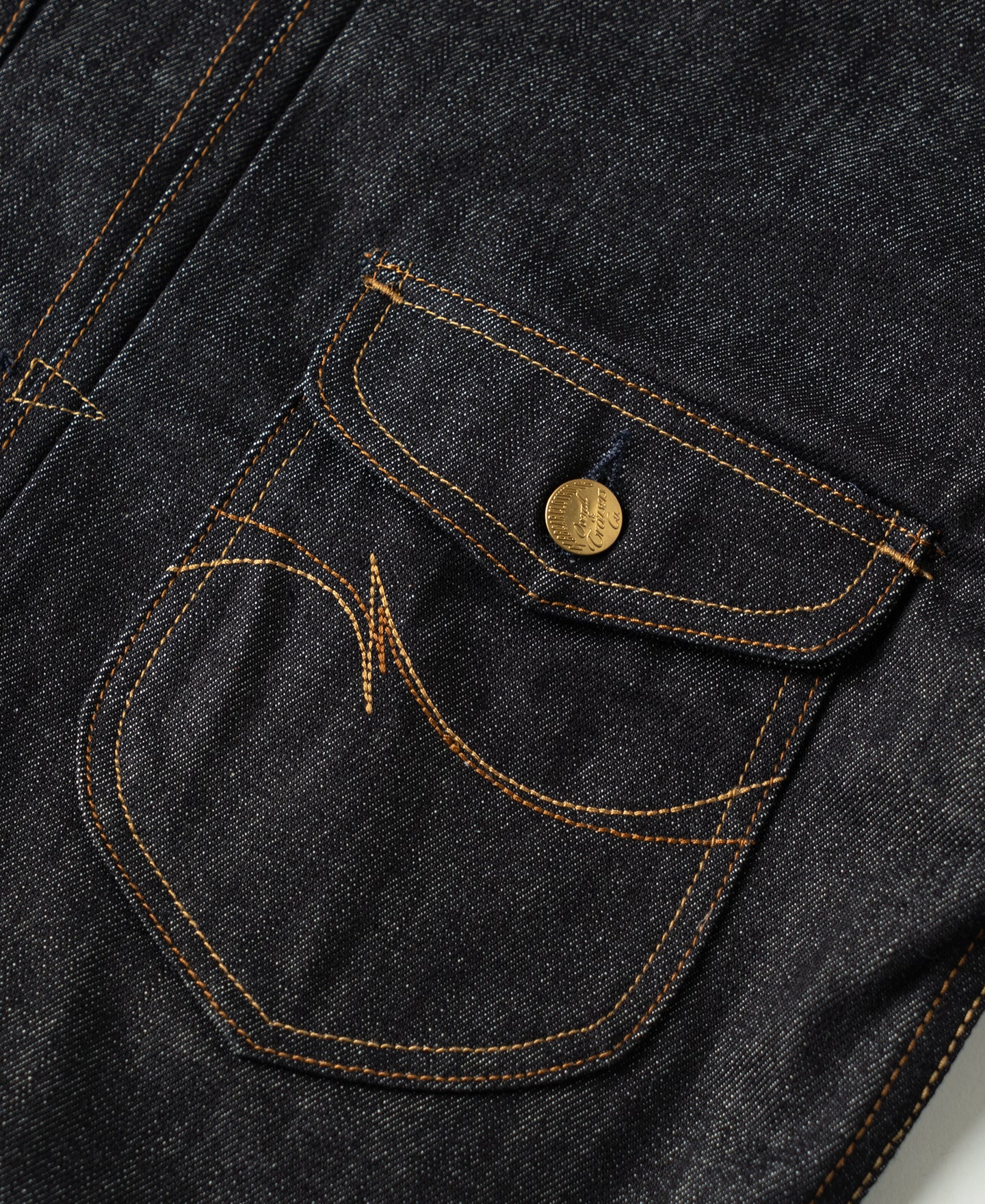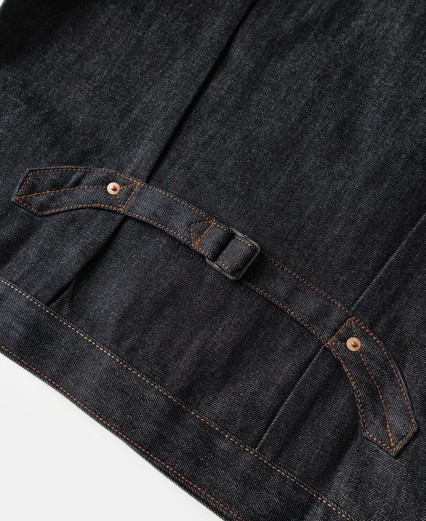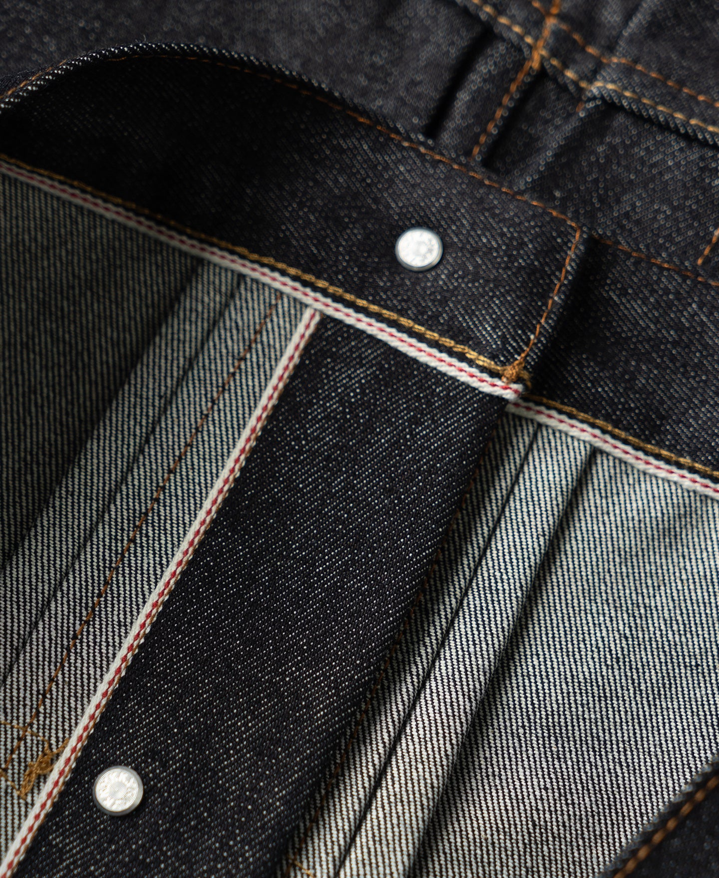 This jacket is inspired by the iconic Type 1 jacket silhouette as its base pattern, featuring a shorter, boxier cut with a clean, upright profile. It’s crafted from 15.5oz antique loom selvedge denim that has been desized for a softer hand and broken-in comfort right from the start. The fabric is finished with Siro-spun rope-dyeing, giving it a crisp texture and deep, vintage-inspired grain that grows character with every wear.