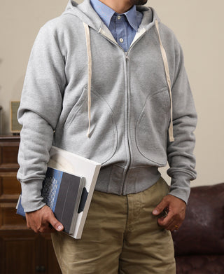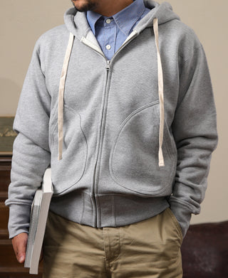 This zip-up hoodie is made of heavyweight 17.5 oz. terry cloth, allowing the fabric to have a heavier and denser handle. It is soft, comfortable, and durable.